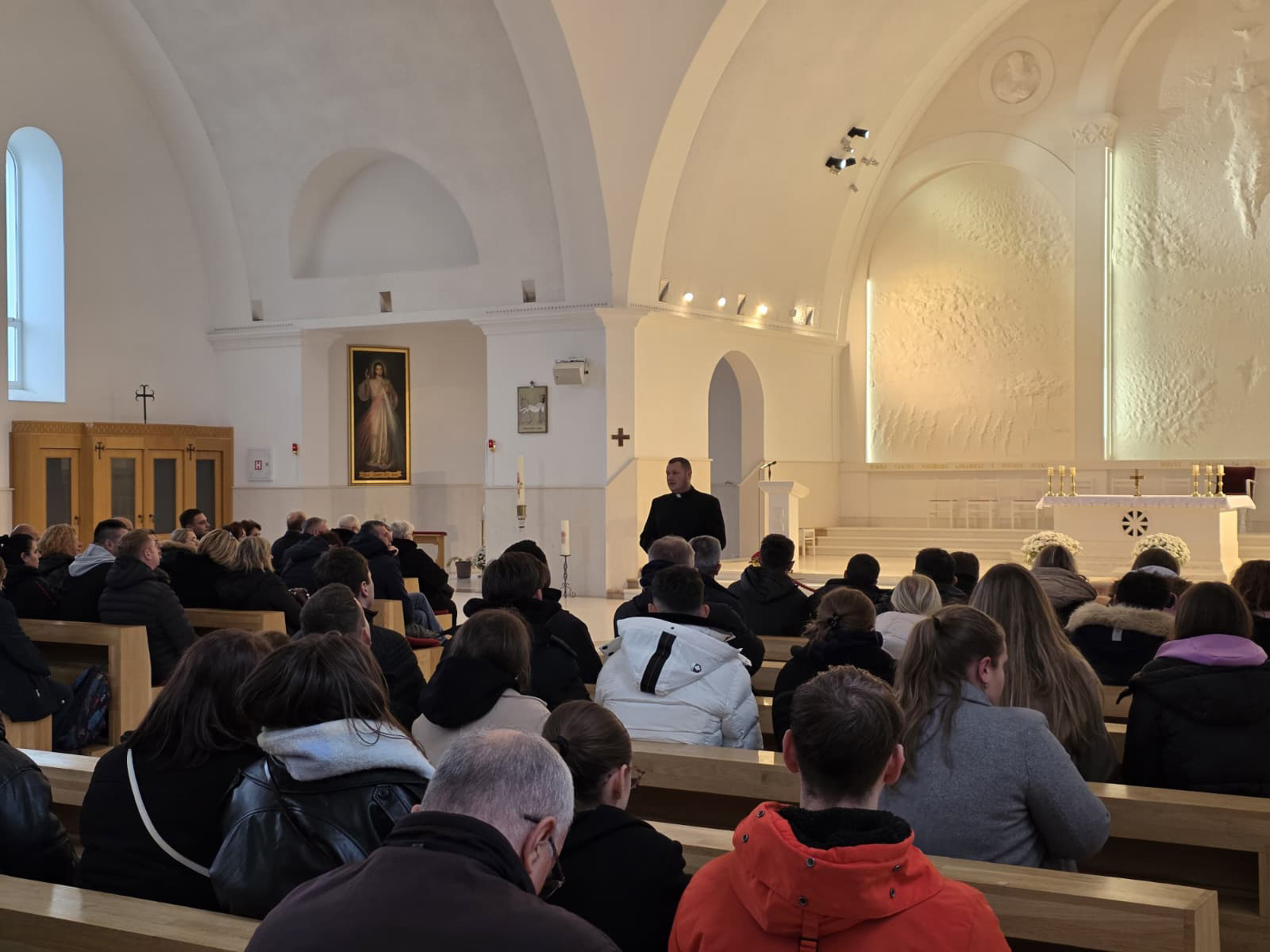 Slijedilo je svečano euharistijsko slavlje u župnoj crkvi Uznesenja Blažene Djevice Marije koje je predvodio zadarski nadbiskup mons. Milan Zgrablić u koncelebraciji s okupljenim svećenicima među kojima su bili prorektor za kvalitetu, identitet i poslanje HKS-a prof. dr. sc. Ante Crnčević, doc. dr. sc. Odilon Singbo i sveučilišni kapelan vlč. Branimir Jagodić.