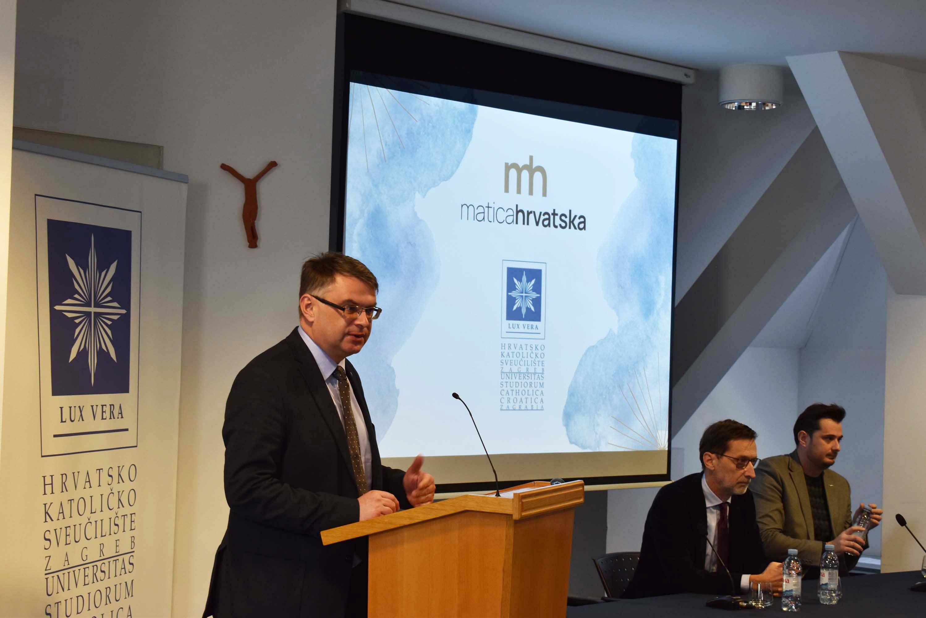 Potpredsjednik Matice hrvatske izv. prof. dr. sc. Mario Jareb, ujedno i vanjski suradnik na Sveučilišnom odjelu za povijest Hrvatskog katoličkog sveučilišta, prisutne je proveo kroz kratku povijest osnutka i djelovanja Matice hrvatske, nakon čega je uključena publika i otvorena mogućnost rasprave i postavljanja pitanja predstavnicima Matice hrvatske. Događaje je moderirala dr. sc. Suzana Obrovac Lipar, voditeljica Ureda za odnose s javnošću Hrvatskog katoličkog sveučilišta.
