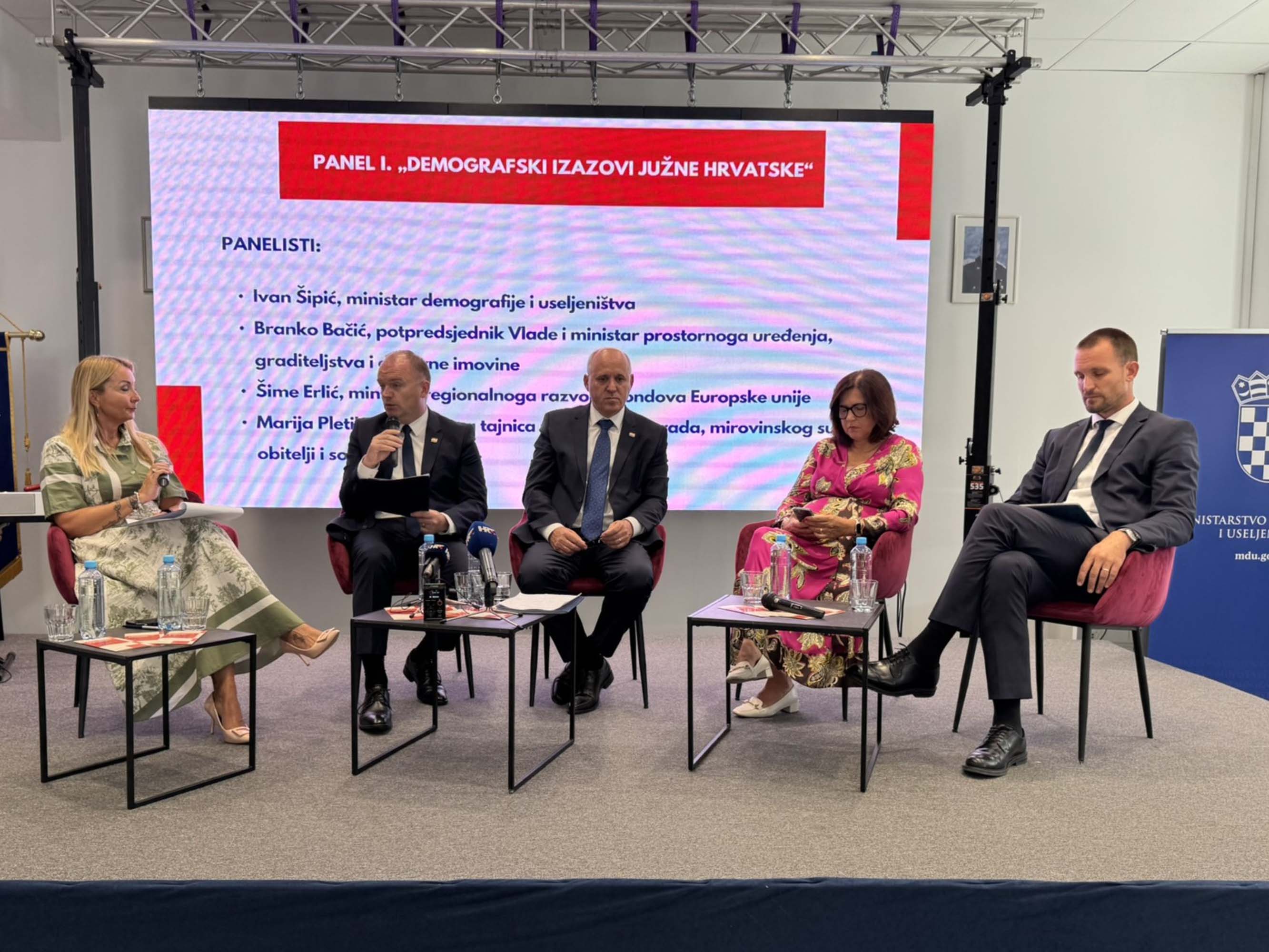 U panel raspravi o demografskim izazovima južne Hrvatske sudjelovali su potpredsjednik Vlade i ministar prostornog uređenja, graditeljstva i državne imovine Branko Bačić, ministar demografije i useljeništva Ivan Šipić, ministar regionalnog razvoja i fondova Europske Unije Šime Erlić te državna tajnica u Ministarstvu rada, mirovinskoga sustava, obitelji i socijalne politike Marija Pletikosa.