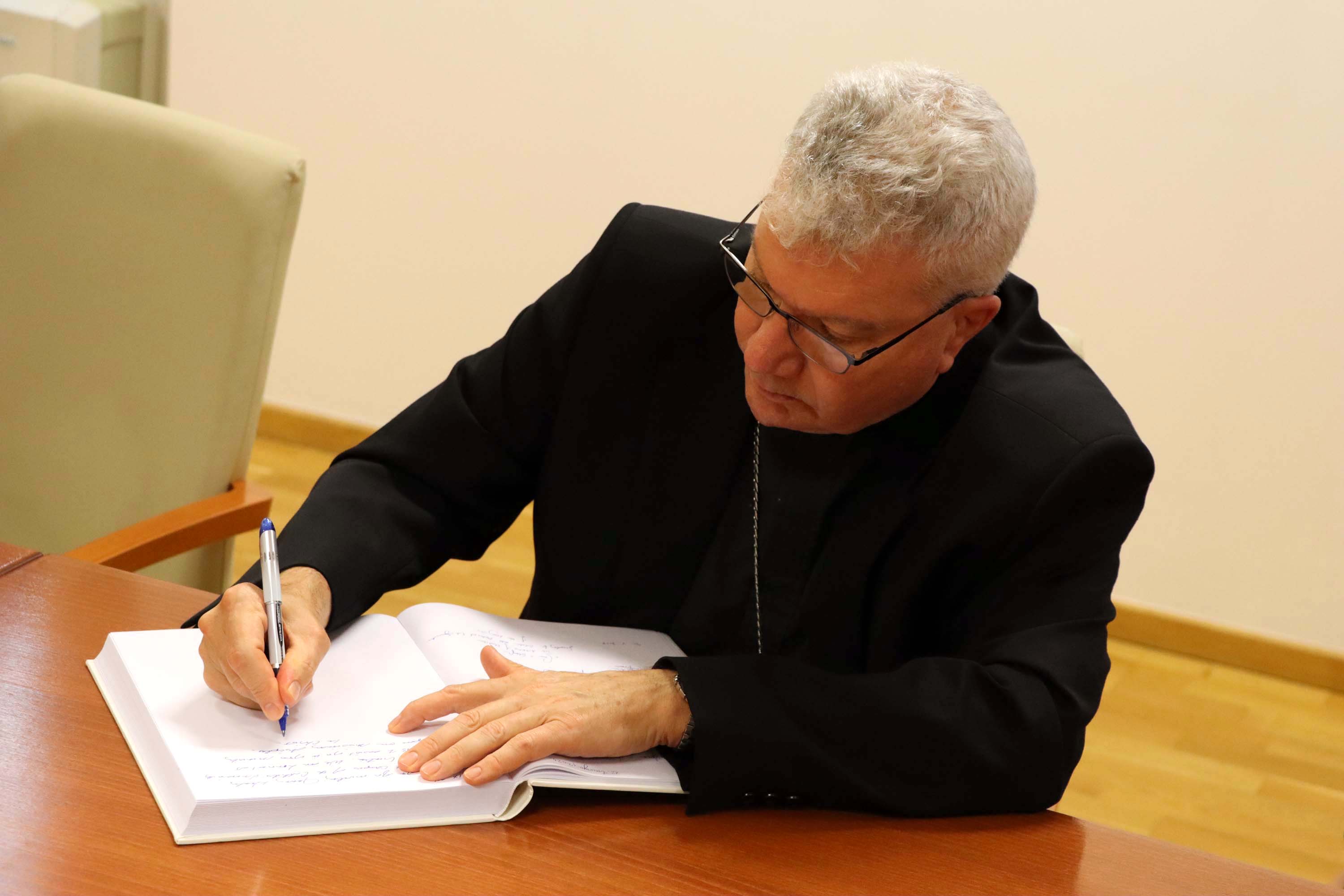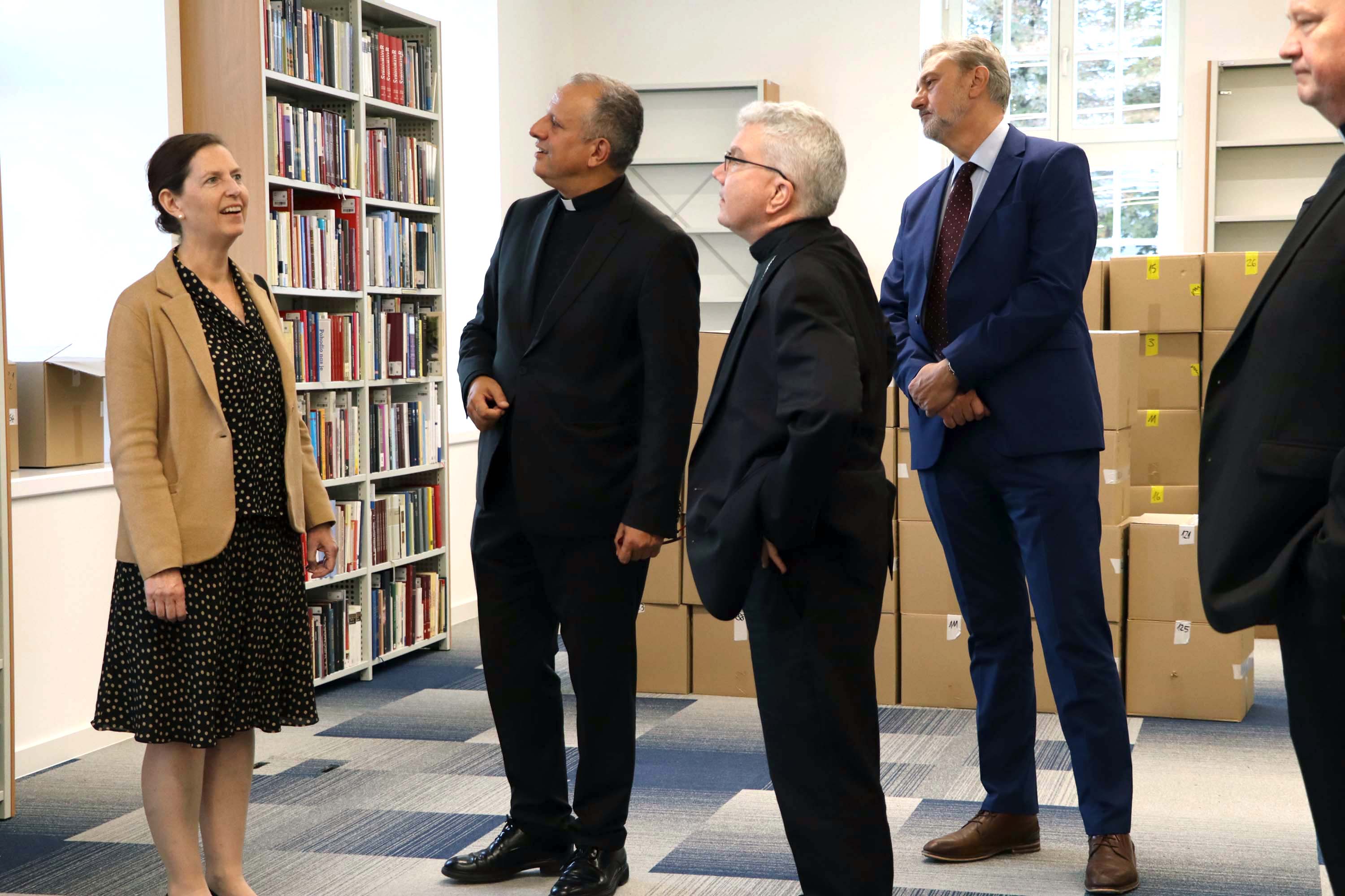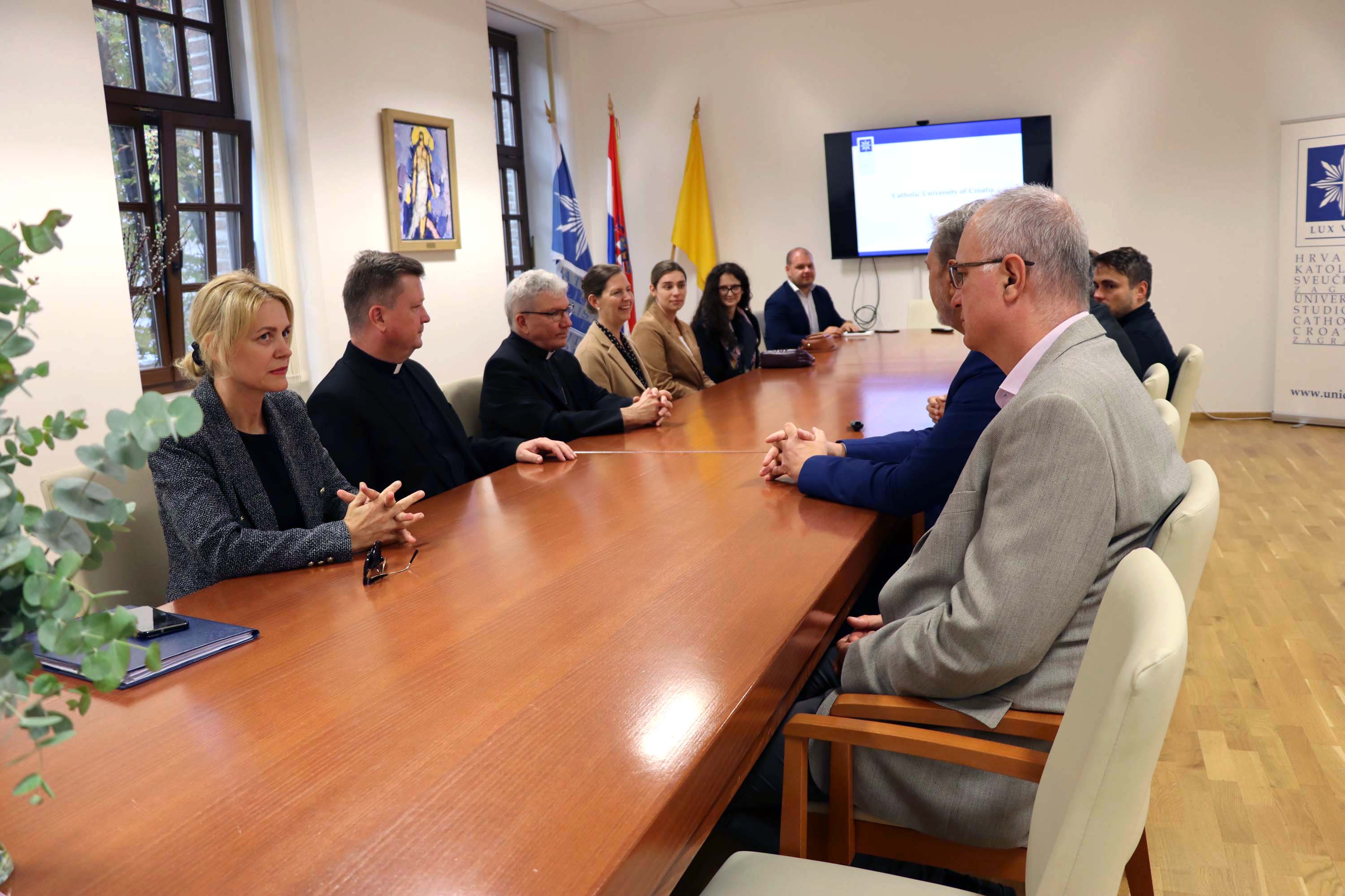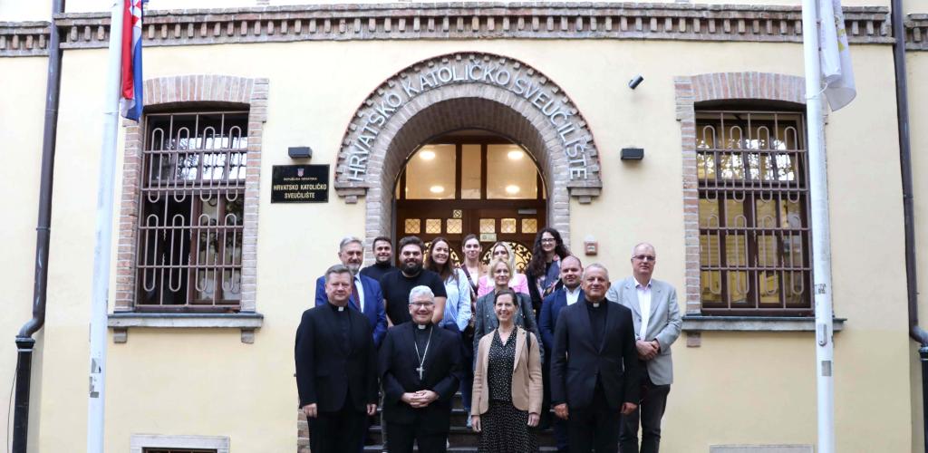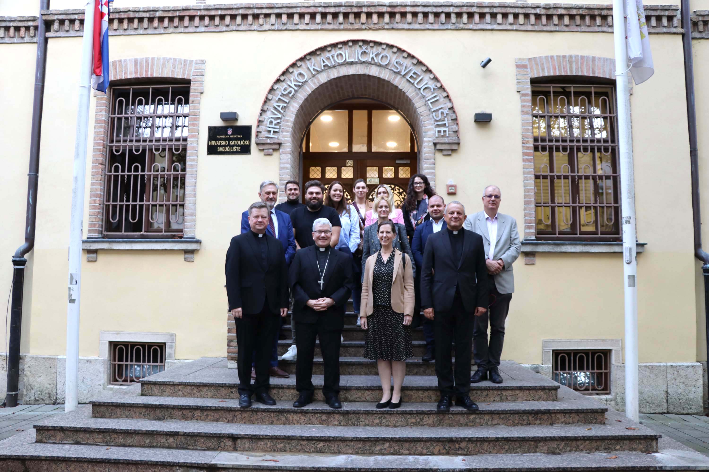 U srijedu 18. rujna 2024. Hrvatsko katoličko sveučilište posjetio je izaslanstvo Američke biskupske konferencije predvođeno pomoćnim biskupom Detroita mons. Jeffreyjem Marcom Monfortonom, predsjednikom Pododbora Konferencije katoličkih biskupa SAD-a za pomoć Crkvi u srednjoj i istočnoj Europi. Uz pomoćnog biskupa Monfortona prisustovala je i Jennifer Healy, direktorica Ureda Pododbora USCCB te preč. Krunoslav Novak, generalni tajnik Hrvatske biskupske konferencije i docent na Sveučilišnom odjelu za komunikologiju.