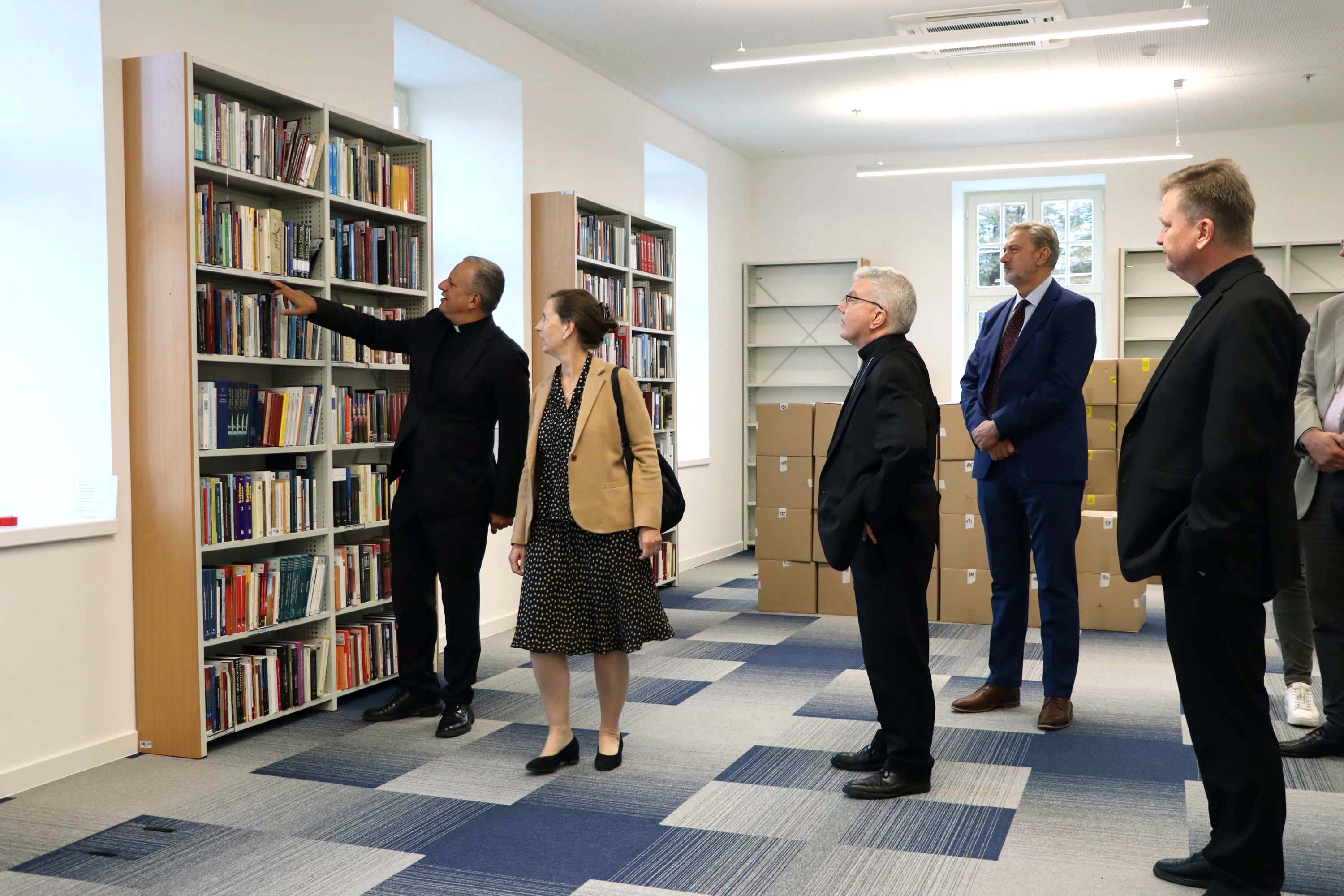Uz rektora Tanjića i prorektore Antolovića i Štefančića s biskupom Monfortonom susreli su se i stipendisti koji rade u nastavi i administraciji na Hrvatskom katoličkom sveučilištu, a Američka biskupska konferencija financira njihove doktorske studije. Rektor i prorektori izaslanike su upoznali s radom i razvojem Sveučilišta te o daljnjim planovima renovacije i izgradnje nastavnih kapaciteta HKS-ovog kampusa, nakon čega su posjetili novouređenu Sveučilišnu knjižnicu.