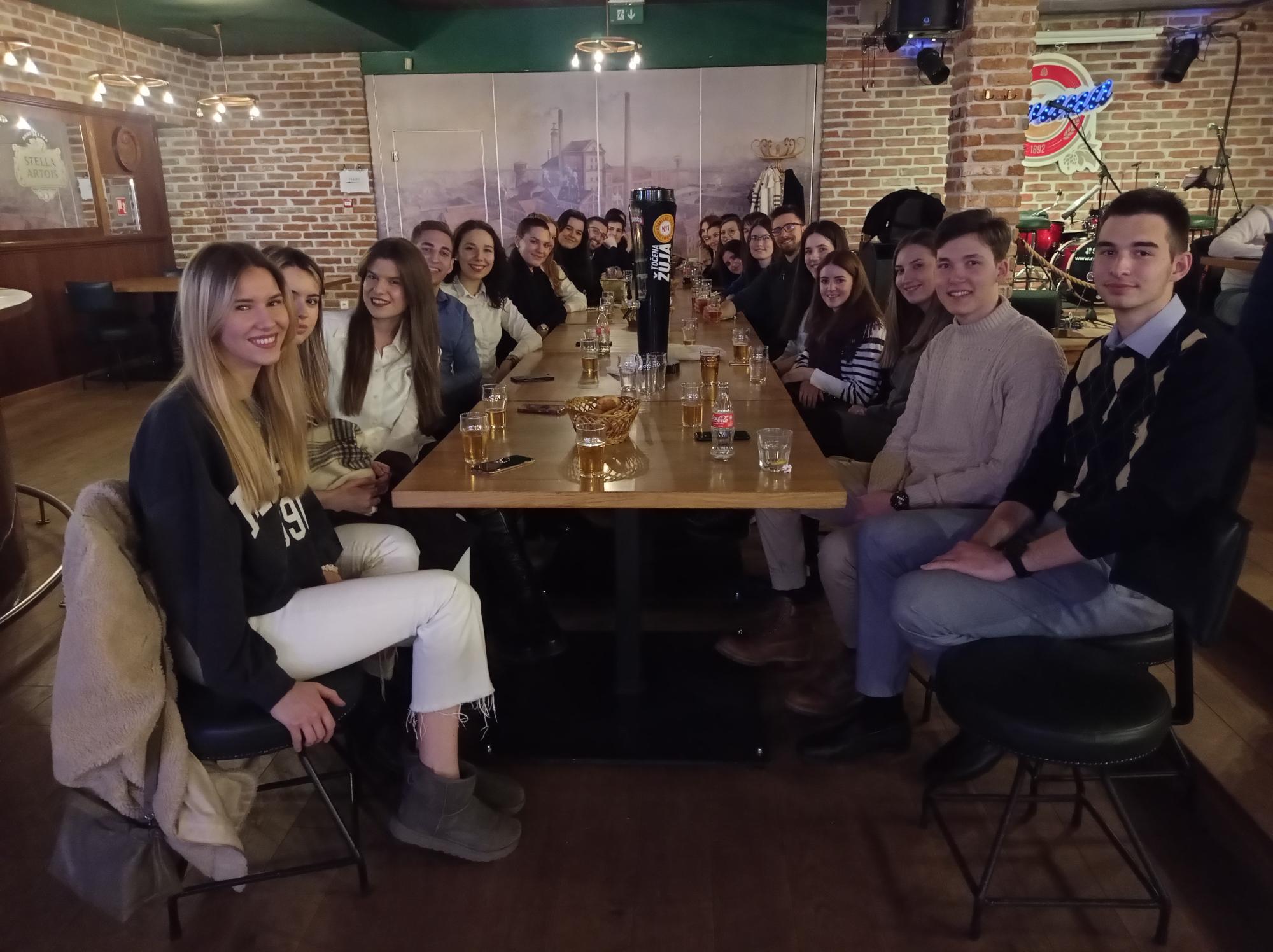 Nakon odgledane predstave uputili smo se u treću bitnu instituciju što se nalazi u istoj ulici kao i naše Sveučilište i TEATAR EXIT, a gdje smo imali prilike, u opuštenoj atmosferi, razmijeniti dojmove upravo pogledane predstave, podružiti se i poželjeti si skori ponovni susret na nekom sličnom kulturnom događaju.