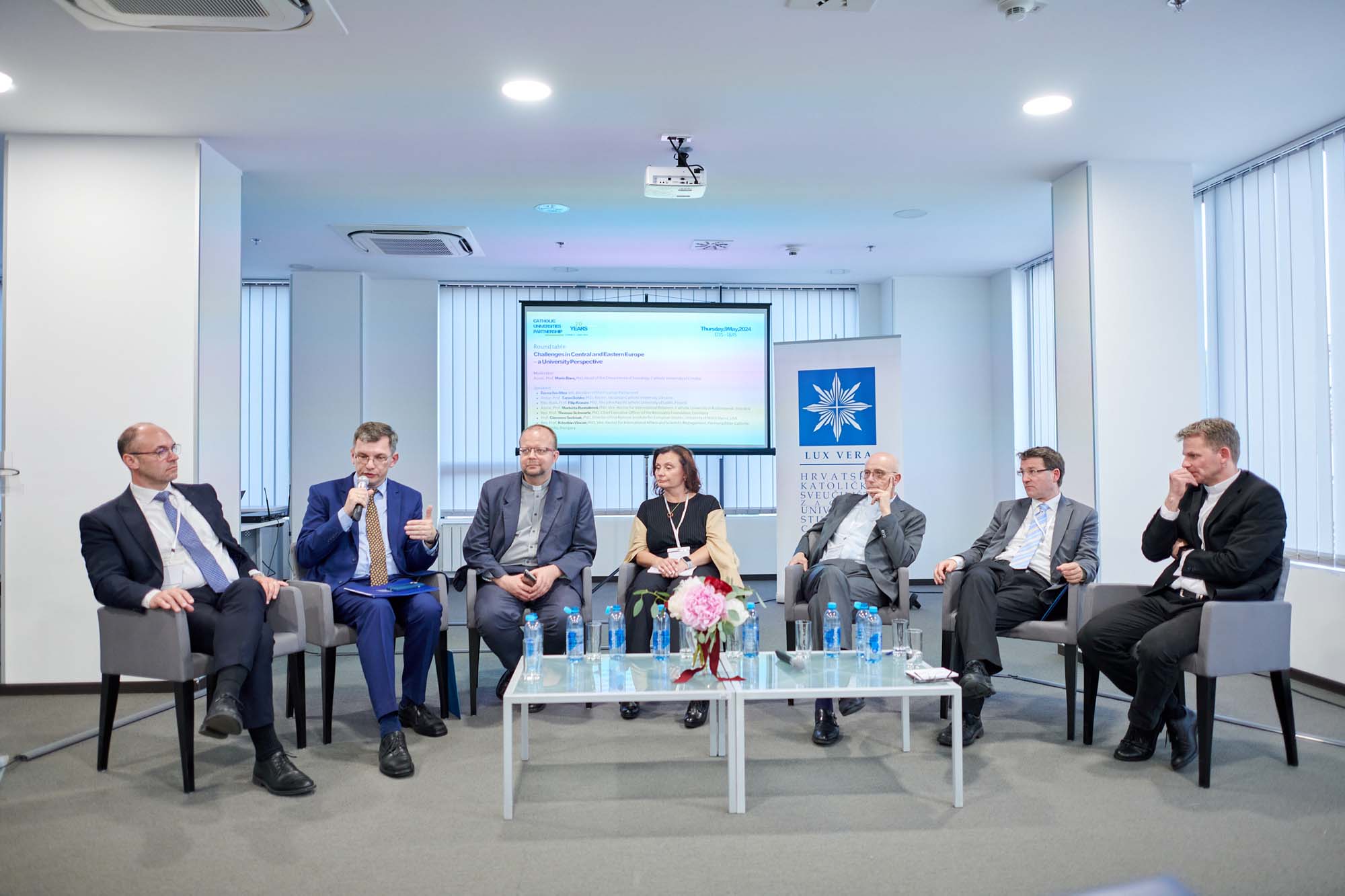 Nakon otvorenja uslijedio je okrugli stol na kojem su sudjelovali rektor Ukrajinskog katoličkog sveučilišta izv. prof. dr. sc. Taras Dobko, doc. dr. sc. Filip Krauze sa Sveučilišta Sv. Ivan Pavao II. u Lublinu u Poljskoj, prof. dr. sc. Clemens Sedmak, direktor Instituta Nanovic za europske studije američkog Sveučilišta Notre Dame, prof. dr. sc. Krisztián Vincze, prorektor za međunarodne odnose i znanost na Katoličkom sveučilištu Pázmany Péter u Budimpešti te direktor zaklade Njemačke biskupske konferencije Renovabis prof. dr. sc. Thomas Schwartz. Uvodno predavanje prije početka okruglog stola održao je Davor Ivo Stier, zastupnik u Hrvatskom saboru.