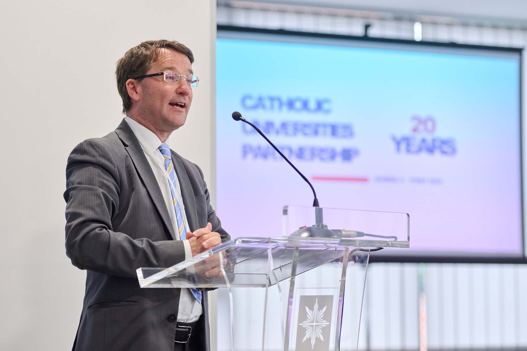 U ime domaćina okupljenima se obratio prof. dr. sc. Željko Tanjić, rektor Hrvatskog katoličkog sveučilišta. Rektor je izrazio zadovoljstvo što se konferencija povodom 20. obljetnice CUP-a održava na Hrvatskom katoličkom sveučilištu te je istaknuo kako je u proteklih 20 godina partnerstvo ostvarilo iznimne rezultate u jačanju akademskih programa, razmjeni studenata, znanstvenim istraživanjima, no ono što nadilazi sve te uspjehe je prijateljstvo i solidarnost među članovima. Članovi partnerstva usmjereni su na služenje u svojim zajednicama, promicanje socijalne pravde i etičnosti na dobrobit društva. Rektor je također istaknuo kako konferencija nije samo osvrt na proteklih 20 godina, već i temelj za buduću suradnju. Zahvalio je svim sudionicima i organizatorima konferencije, a posebnu dobrodošlicu iskazao je kolegama i prijateljima iz Ukrajine s nadom i molitvama za prestanak rata.