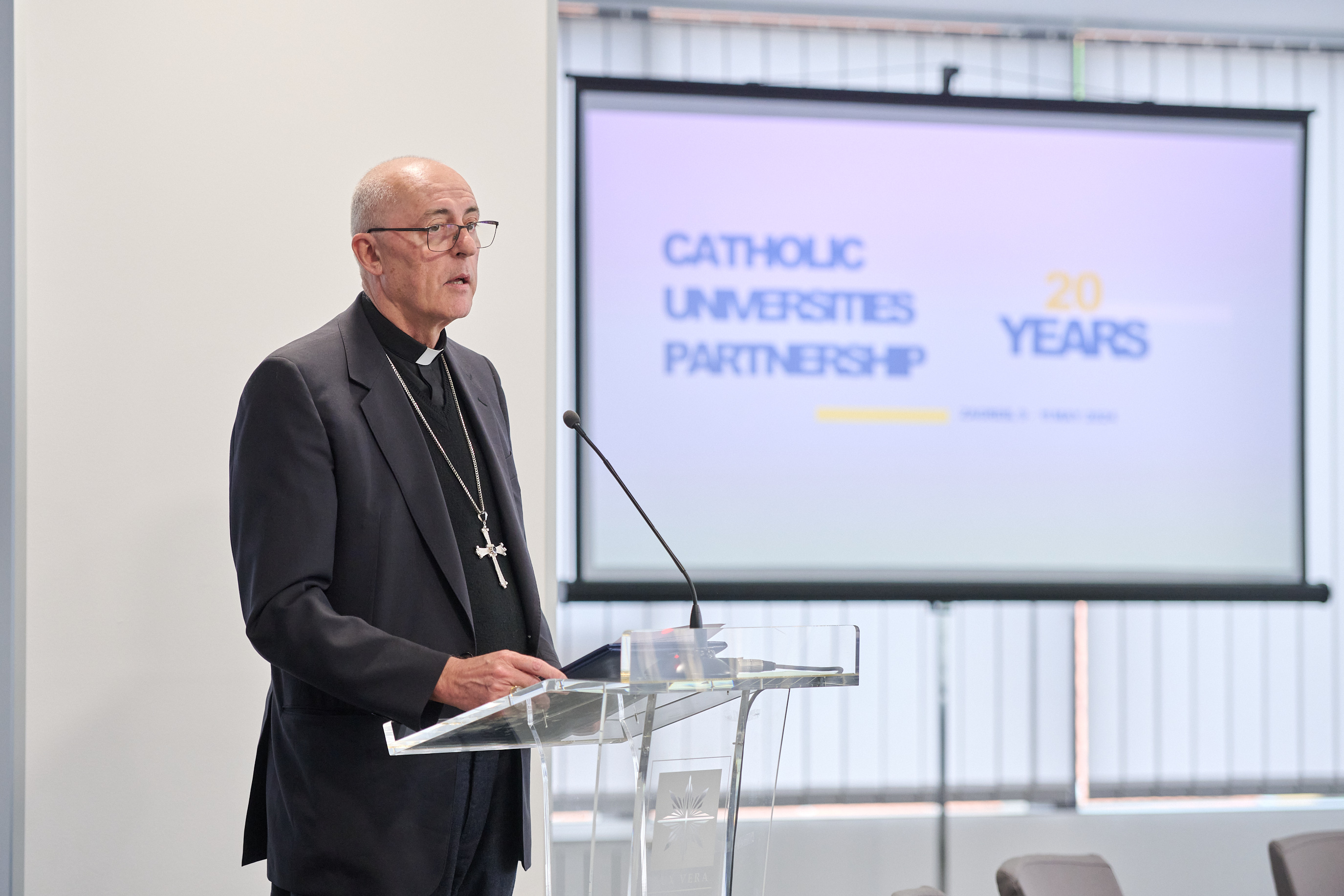 Okupljenima se obratio i mons. Giorgio Lingua, apostolski nuncij, rekavši: „U eri dezorijentiranosti i nesigurnosti , koja je istaknula krhkost naše sigurnosti, katolička sveučilišta imaju dužnost i hrabrosti pronaći rješenja za brojna politička, moralna i društvena pitanja. Od katoličkih sveučilišta se traži da daju svoj „katolički" doprinos, u najširem smislu riječi. Naime, sveučilišta surađuju ne samo na unapređenju „znanosti" u njezinoj klasičnoj dimenziji universitas studiorum koja je danas nužno sve više interdisciplinarna, nego i na zbližavanju ljudi, ne isključujući nikoga jer smo svi kandidati za izgradnju novog čovječanstva: vjernici i nevjernici. Stječe se dojam da više nema vremena za gubljenje: ili čovječanstvo treba promijeniti smjer ili riskiramo zajednički nestanak. Stoga nema sumnje kako moramo predložiti inovativne odgovore na naše vječite sukobe, promičući kulturu susreta – koja stvara ljudsko i duhovno bogatstvo, prije materijalnog – umjesto stvaranja sukoba – koji rađa gubitak i nejednakost. Vaša tema: „Od prijateljstva do institucionalnog razvoja“ postaje, dakle, ne samo zanimljiva tema za razmišljanje, već i program za budućnost“- rekao je Nuncij.