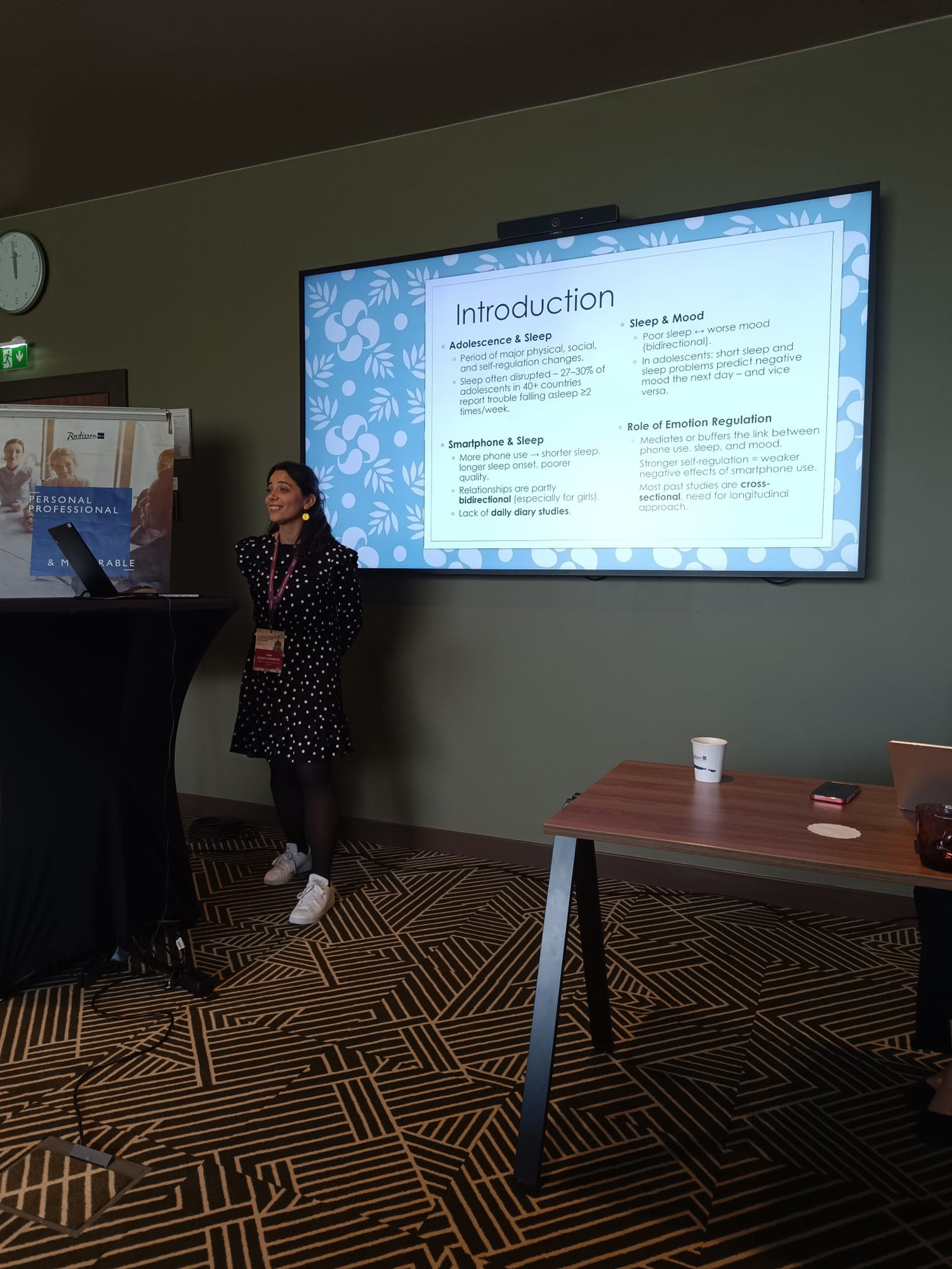 Dr. sc. Ana Žulec Ivanković putem usmenog izlaganja predstavila je napredak međunarodnog projekta „Smartphone Use, Sleep, and Mood: A cross-cultural study on the role of emotion regulation”, čiji je voditelj doc. dr. sc. Stefanos Mastrotheodoros sa Sveučilišta na Kreti, Grčka, a na kojem sudjeluje uz izv. prof. dr. sc. Marinu Merkaš.