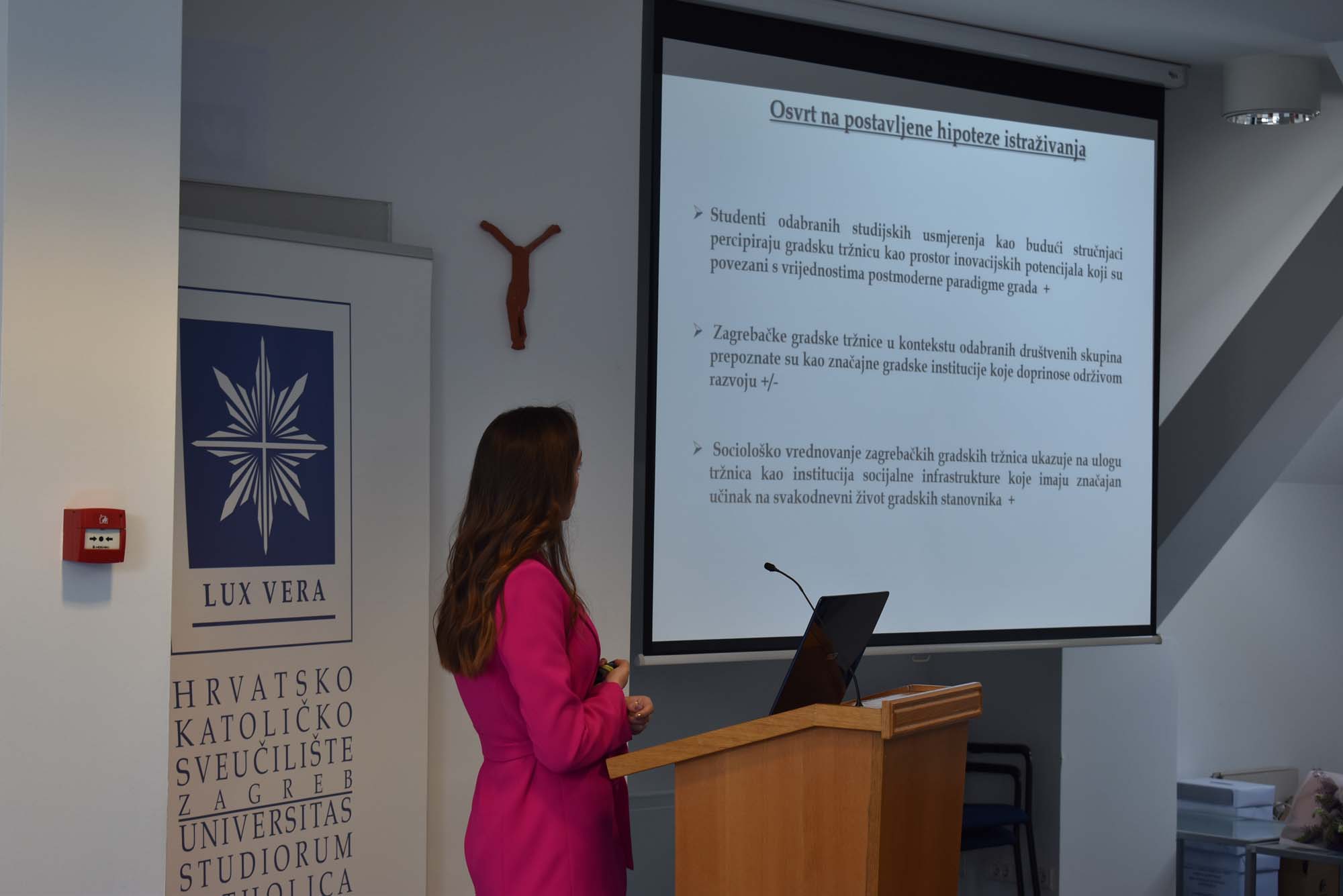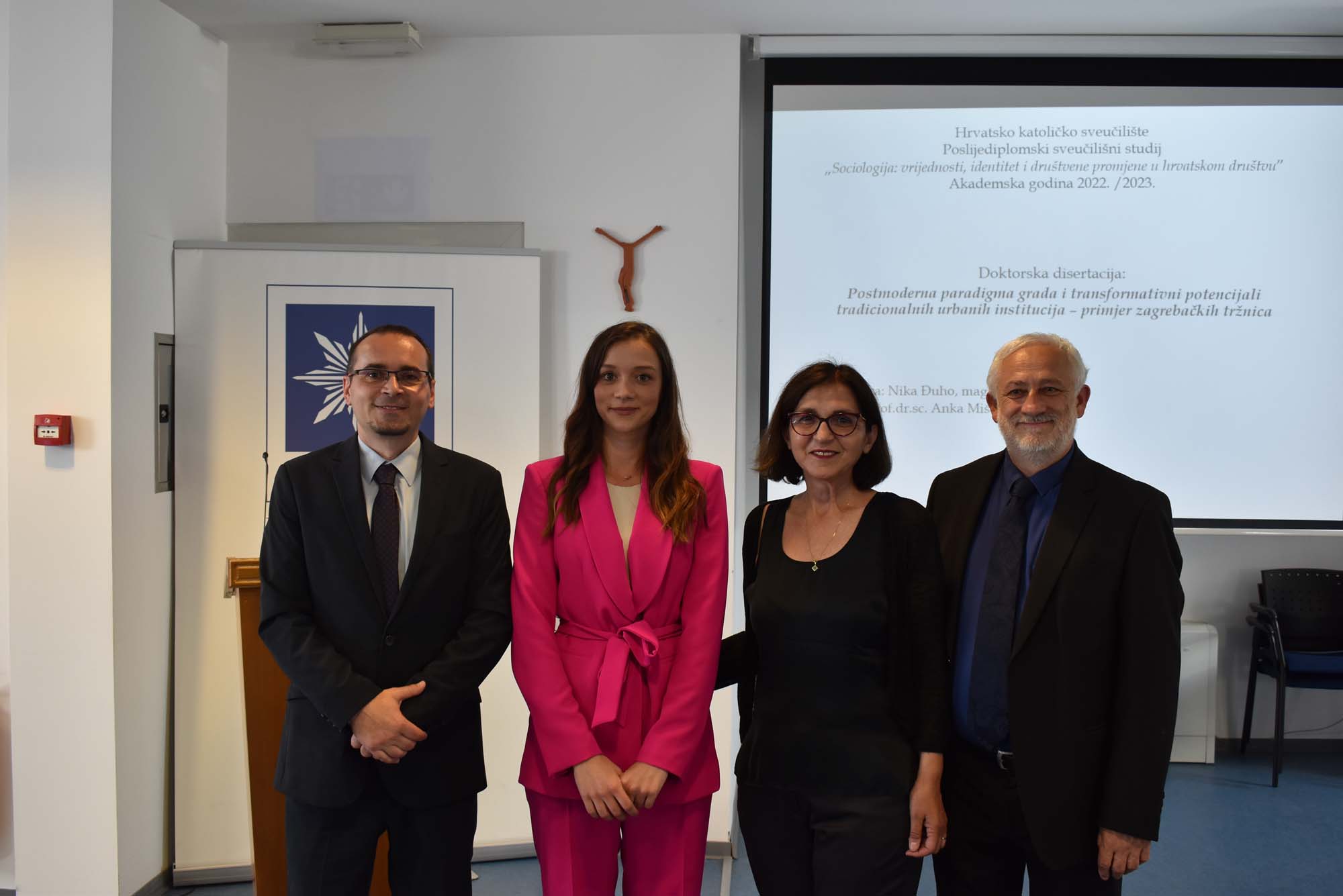 U petak, 26. svibnja 2023. na Hrvatskom katoličkom sveučilištu, asistentica na Odjelu za sociologiju Hrvatskog katoličkog sveučilišta Nika Đuho, mag. soc. obranila je svoj doktorski rad Postmoderna paradigma grada i transformativni potencijali tradicionalnih urbanih institucija - primjer zagrebačkih tržnica i stekla naziv doktorice znanosti. Rad je nastao pod mentorstvom prof. dr. sc. Anke Mišetić s Arhitektonskog fakulteta Sveučilišta u Zagrebu.