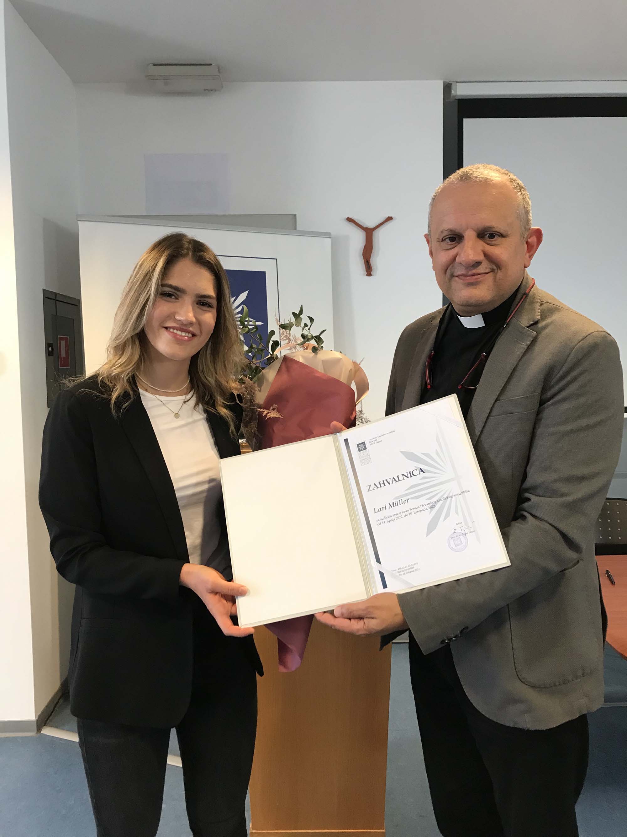 U utorak 11. listopada 2022. nova članica Senata Hrvatskog katoličkog sveučilišta postala je studentica Nikolina Brešić s Odjela za sestrinstvo. Zamijenila je studenticu Laru Müller čiji je mandat u Senatu završio. Objema je rektor prof. dr. sc. Željko Tanjić zaželio puno Božjeg blagoslova i uspjeha radu i studiju.