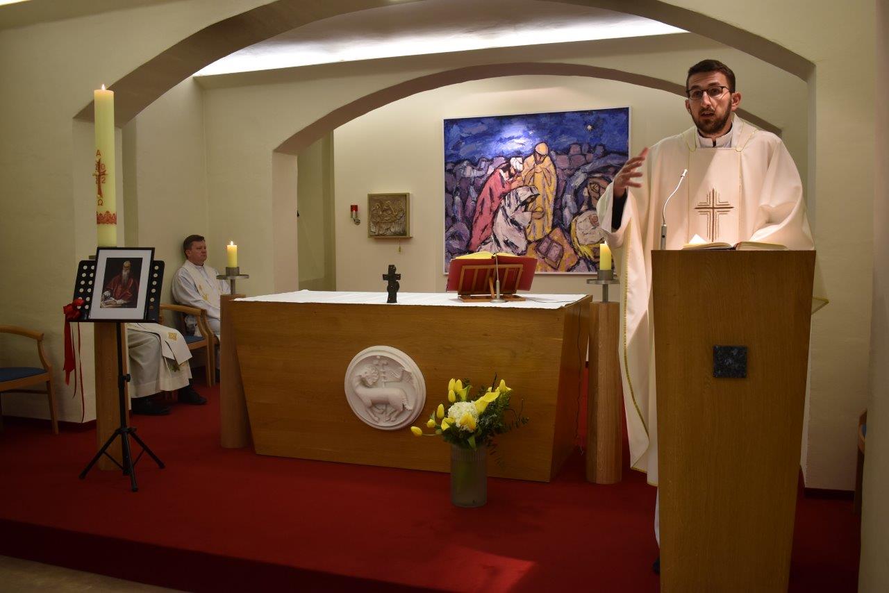 Na početku svoje homilije kapelan Marko istaknuo je kako se nalazimo u vazmenoj osmini, u kojoj se svaki dan naviješta jedno od tzv. evanđelja Isusovih ukazanja u kojima se Isus „daje vidjeti“ svojim učenicima. Današnji odlomak nastavlja na poznatu epizodu kada su dva učenika prepoznala Isusa u lomljenju kruha: u kruhu koji se lomi i dijeli daje se dakle prepoznati uskrsli Gospodin, u lomljenju i dijeljenju kruha gladnima prepoznajemo Boga punog ljubavi za svoj narod. Isus kada u današnjem odlomku dolazi među učenike, kaže: „Mir vama“. Mir je ono što Isus ne samo želi svojim učenicima – on im ga daje – mir je dar uskrslog Gospodina. Taj mir učenicima je prijeko potreban, jer su oni još uvijek zbunjeni, začuđeni, čak u strahu. Isus ih umiruje, pokazuje im svoje ruke i noge, svjedoči im da je to on – uskrsli Isus isti onaj Isus kojega su poznavali dok je bio s njima. On im sada otvara pamet da razumiju pisma i daje poslanje: da budu svjedoci njegove ljubavi i propovijedaju obraćenje na otpuštenje grijeha. Uskrsli Gospodin Isusa dakle dolazi među nas, daruje nam svoj mir, hrani nas i krijepi, ali onda nas i raspršuje, te od sebe šalje braći i sestrama kojima imamo svjedočiti Božju ljubav – imamo se obratiti, tj. živjeti poput Isusa – ljudima komunicirati Božju ljubav i otpuštanje grijeha.