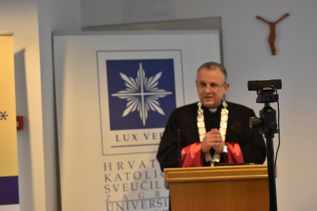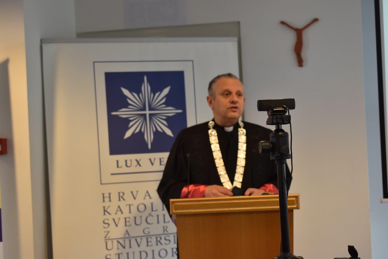Nakon himne Republike Hrvatske uslijedio je pozdravni govor rektora Hrvatskog katoličkog sveučilišta prof. dr. sc. Željka Tanjić koji je sve srdačno pozdravio i čestitao Dan Odjela za povijest: