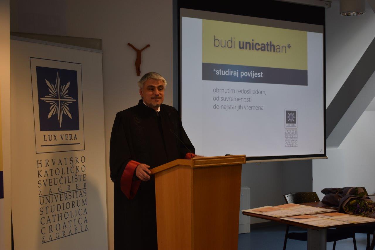 Svečanom akademskom činu prisustvovali su članovi Uprave Hrvatskog katoličkog sveučilišta, studenti i profesori Odjela za povijest.