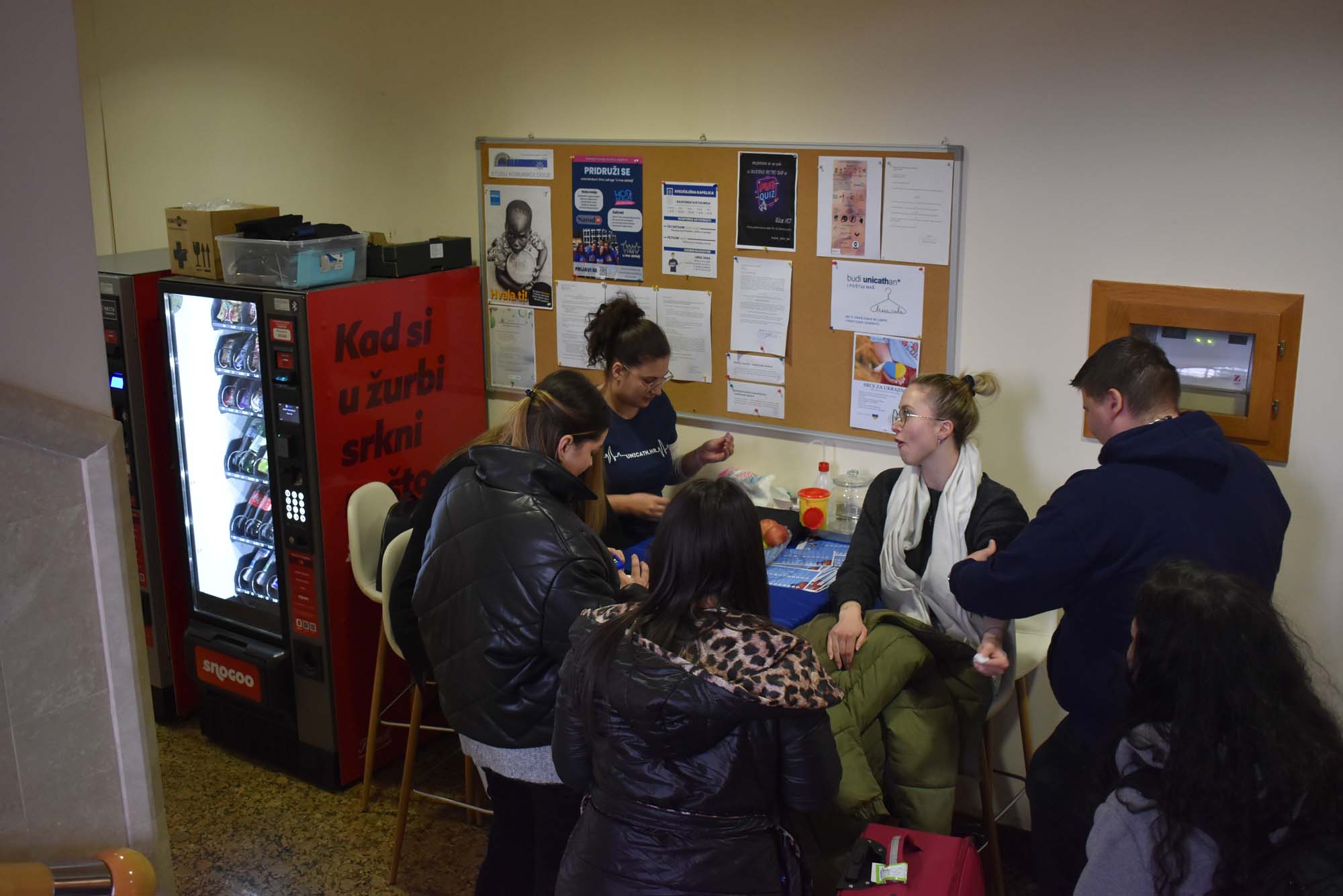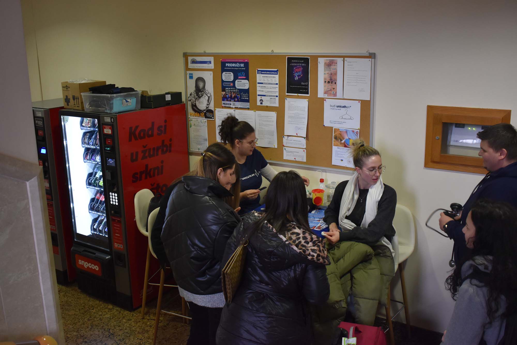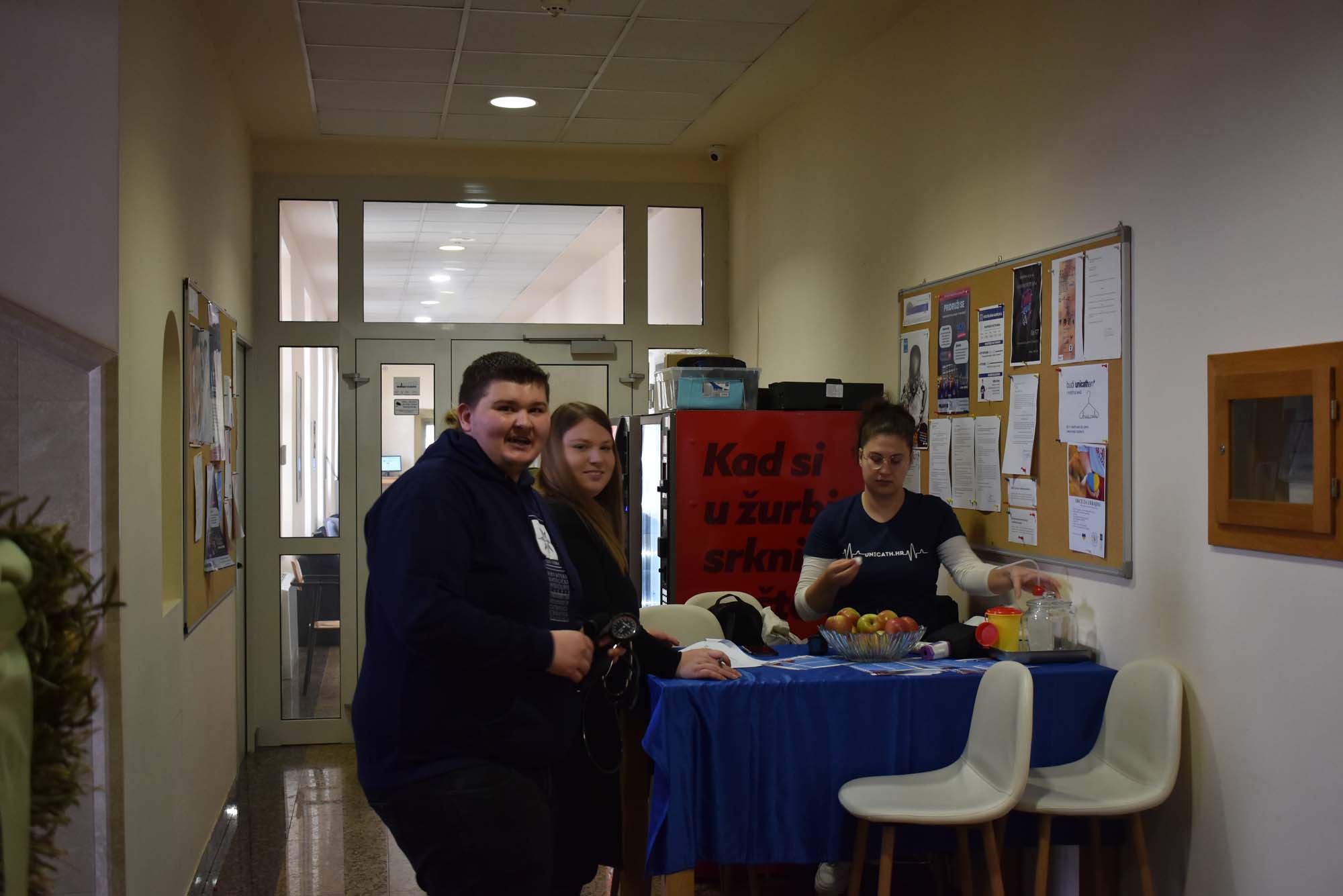 U utorak 4. travnja 2023. Klub studenata sestrinstva Nutrix na našem je Sveučilištu proveo javnozdravstvenu akciju u povodu Svjetskog dana zdravlja. Članovi Nutrixa nastavnicima, studentima, djelatnicima i prolaznicima mjerili su krvni tlak, razinu glukoze u krvi, zasićenost krvi kisikom, određivali indeks tjelesne mase te dijelili edukativne letke i jabuke.