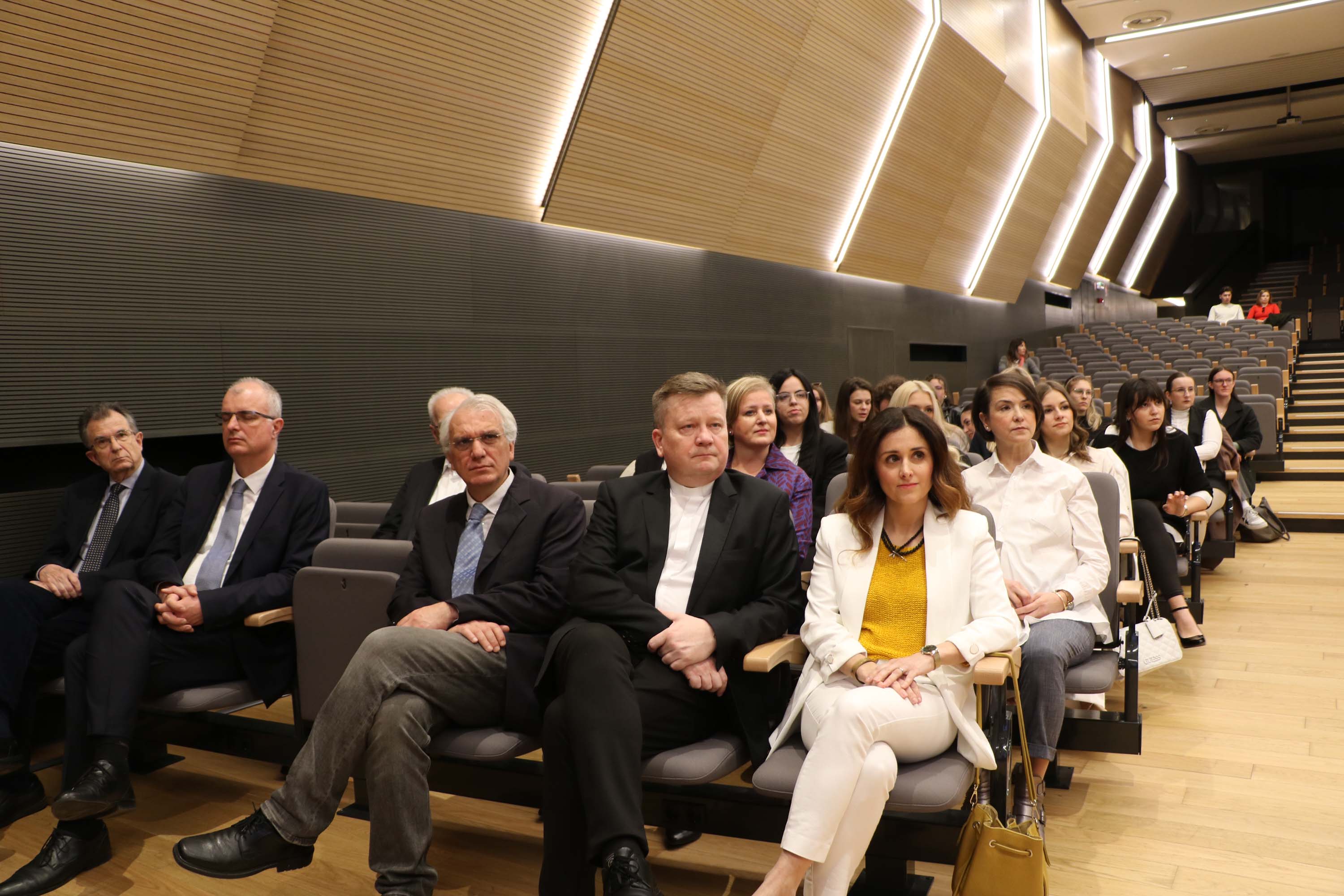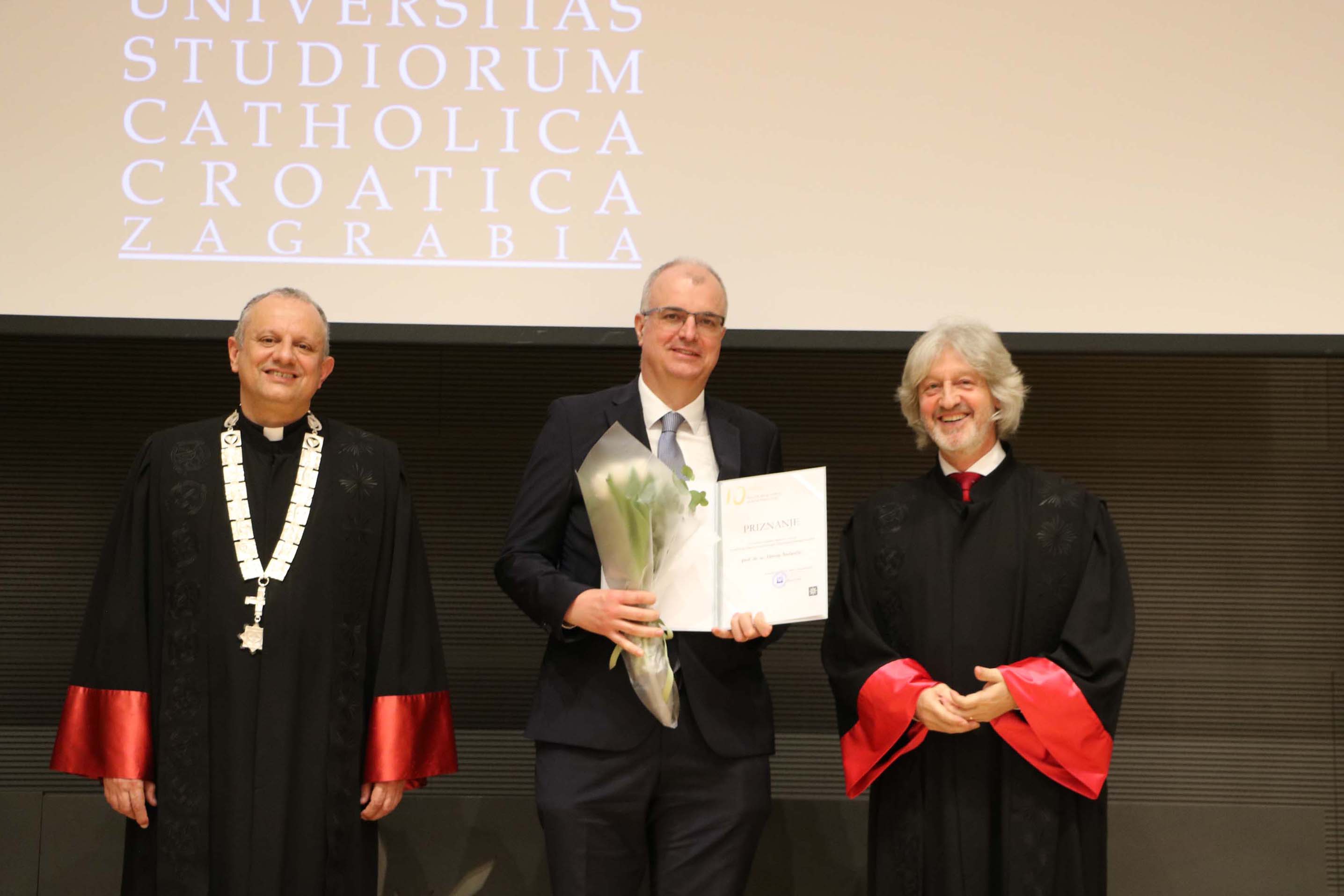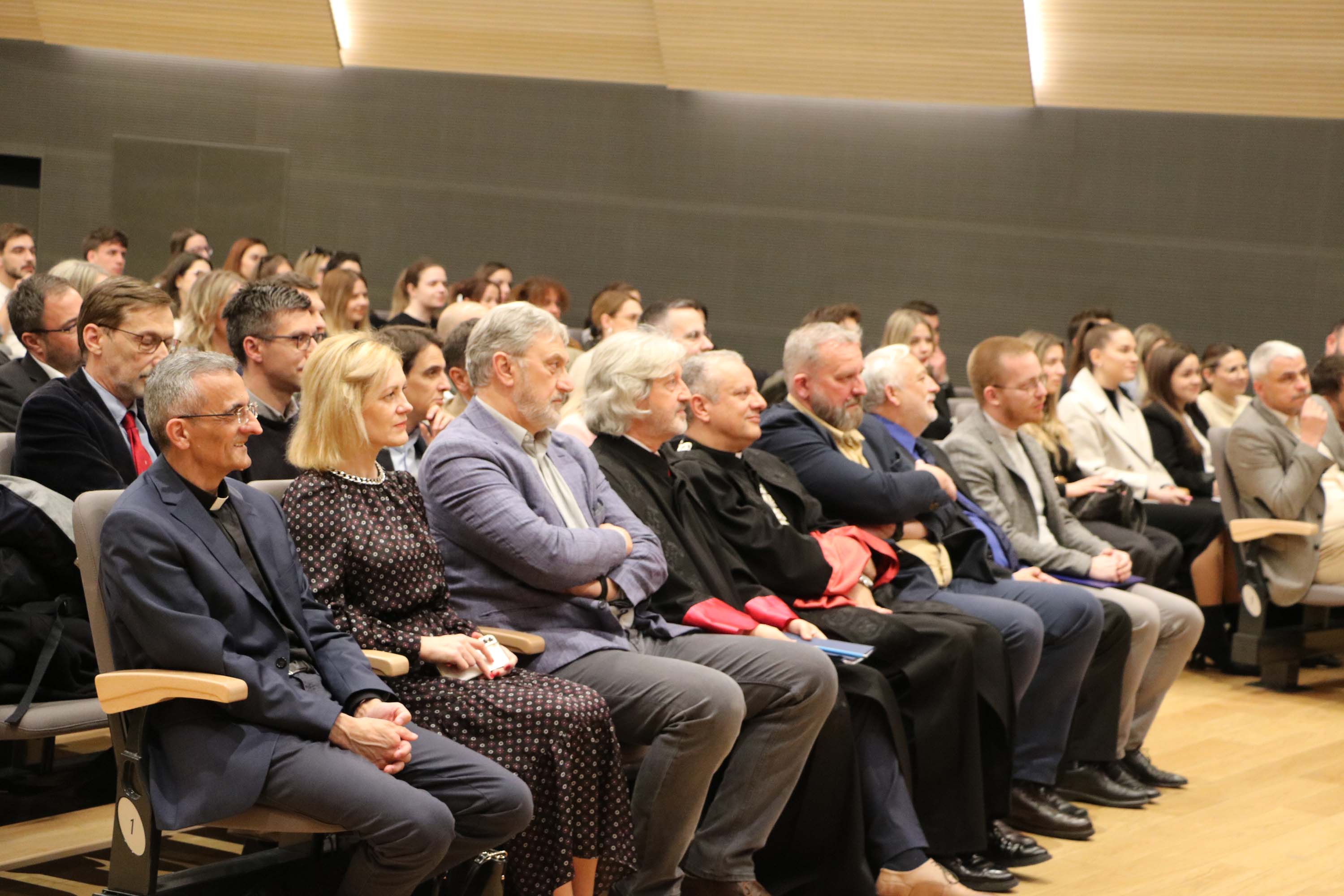 Nakon svete mise, uslijedio je svečani akademski čin u Velikoj dvorani HKS-a na kojem su uz prorektore, pročelnike, profesore i studente Hrvatskog katoličkog sveučilišta, prisustvovali Miro Gavran, predsjednik Matice hrvatske, Jasna Vaniček Fila, pročelnica Odjela za medije Matice hrvatske i članica Vijeća za elektroničke medije, doc. dr. sc. Krunoslav Novak, generalni tajnik Hrvatske biskupske konferencije, Srećko Prusina, ravnatelj Zaklade hrvatskog državnog zavjeta, Stana Odak Krasić, prorektorica za studije na Sveučilištu Vern, Damir Jugo, predsjednik Upravnog vijeća Sveučilišta “Algebra Bernays”, Hrvoje Jakopović, voditelj specijalističkog studija Odnosi s javnošću na Fakultetu političkih znanosti Sveučilišta u Zagrebu te profesorice i profesori sa Sveučilišta “Algebra Bernays”, Fakulteta političkih znanosti i Fakulteta hrvatskih studija Sveučilišta u Zagrebu.