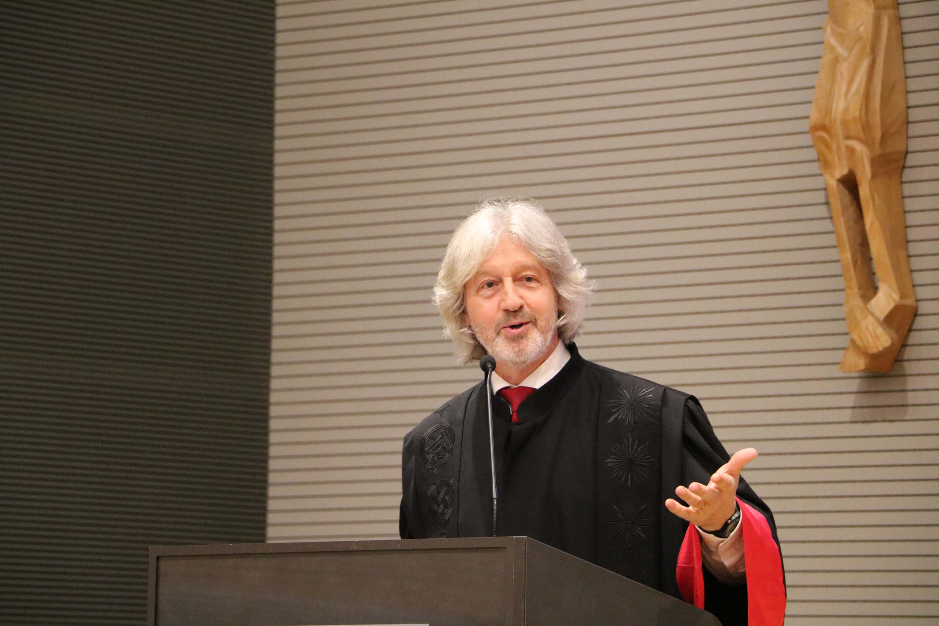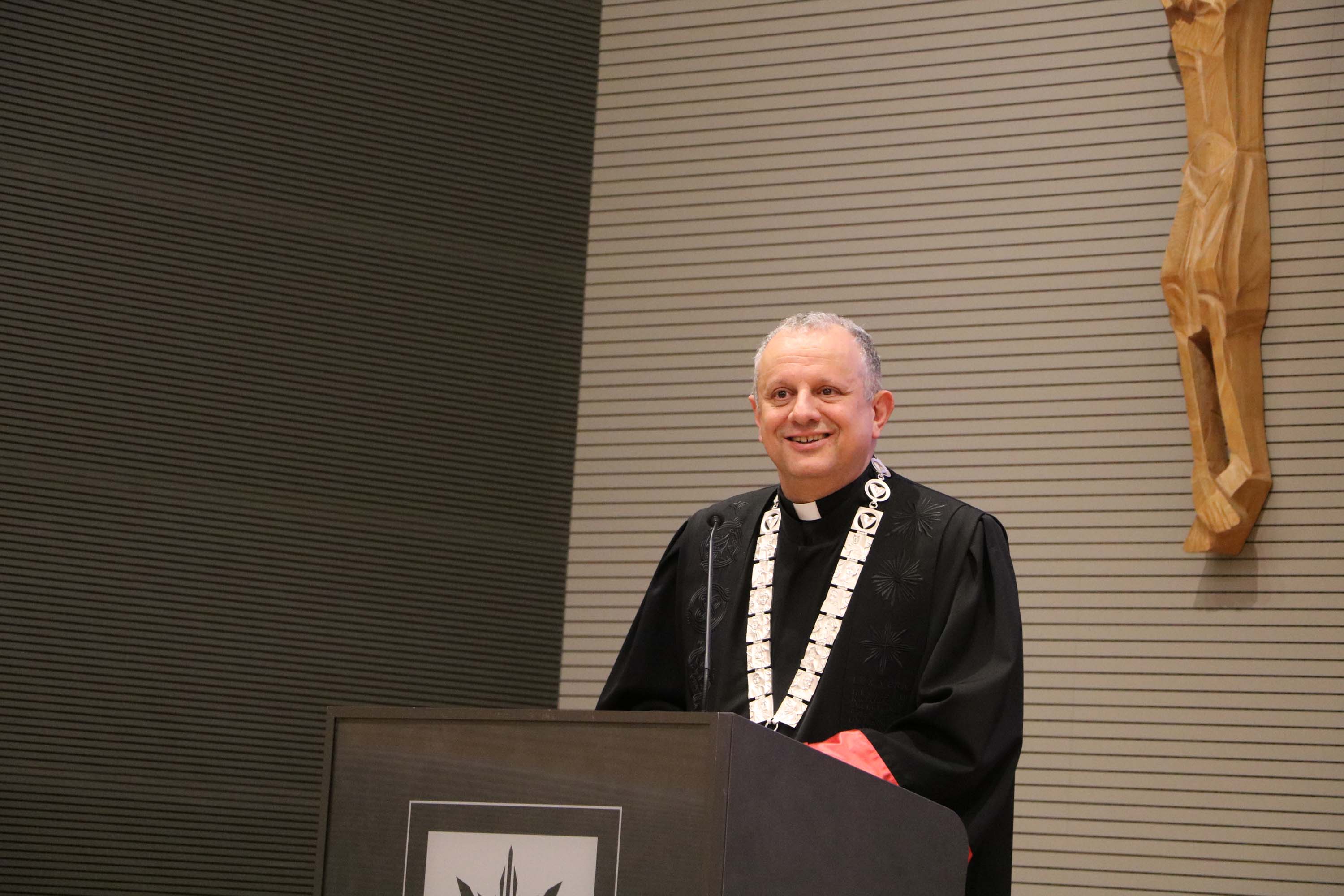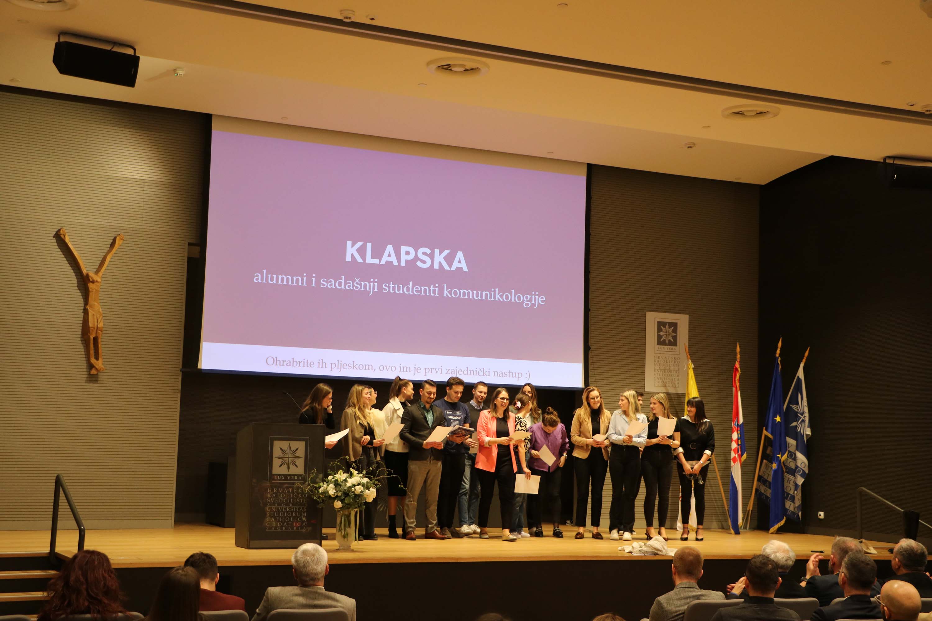 Nakon svete mise, uslijedio je svečani akademski čin u Velikoj dvorani HKS-a na kojem su uz prorektore, pročelnike, profesore i studente Hrvatskog katoličkog sveučilišta, prisustvovali Miro Gavran, predsjednik Matice hrvatske, Jasna Vaniček Fila, pročelnica Odjela za medije Matice hrvatske i članica Vijeća za elektroničke medije, doc. dr. sc. Krunoslav Novak, generalni tajnik Hrvatske biskupske konferencije, Srećko Prusina, ravnatelj Zaklade hrvatskog državnog zavjeta, Stana Odak Krasić, prorektorica za studije na Sveučilištu Vern, Damir Jugo, predsjednik Upravnog vijeća Sveučilišta “Algebra Bernays”, Hrvoje Jakopović, voditelj specijalističkog studija Odnosi s javnošću na Fakultetu političkih znanosti Sveučilišta u Zagrebu te profesorice i profesori sa Sveučilišta “Algebra Bernays”, Fakulteta političkih znanosti i Fakulteta hrvatskih studija Sveučilišta u Zagrebu.