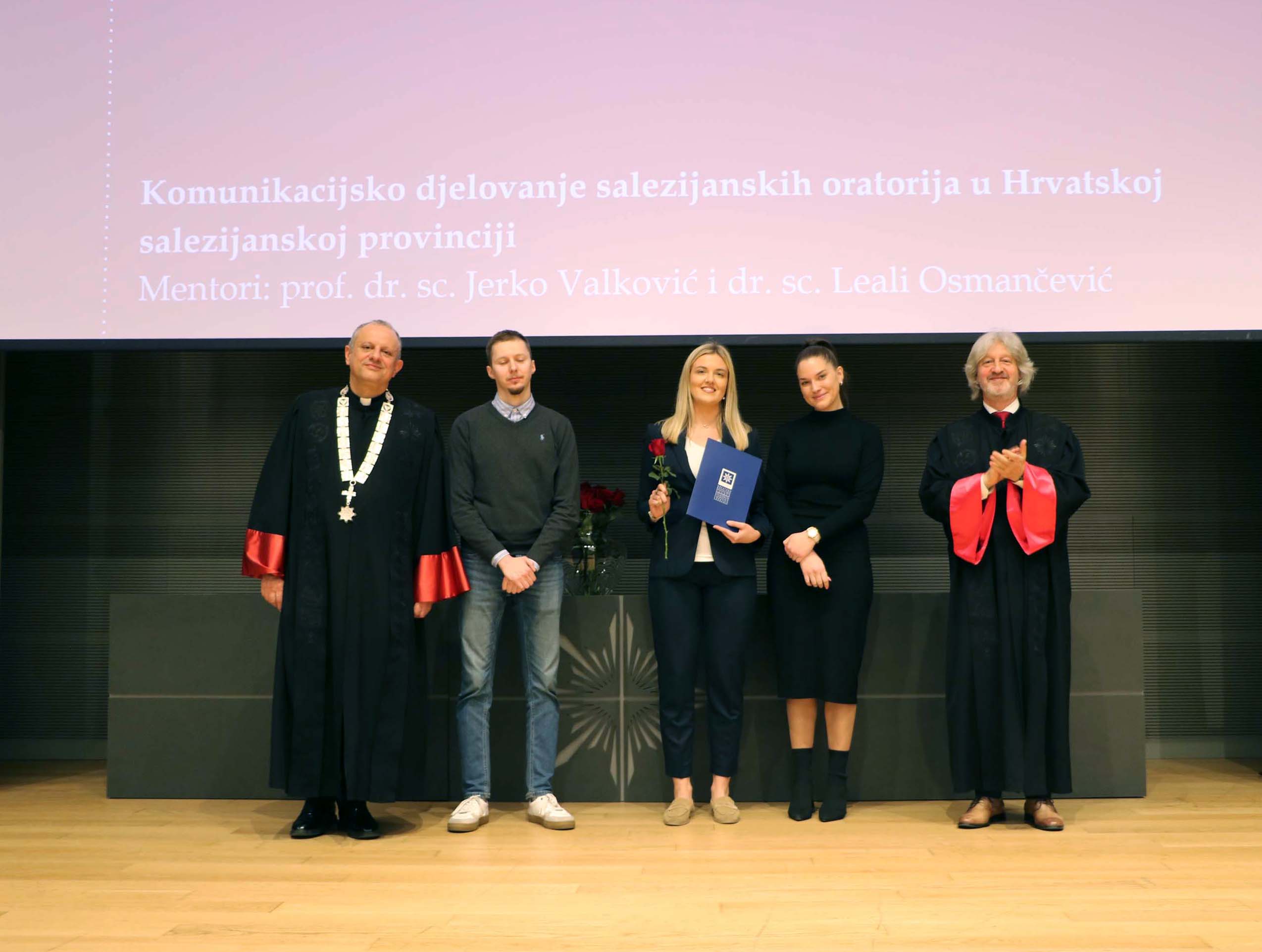 Priznanje za najbolji diplomski rad dobila je sveučilišna magistra komunikologije Jelena Franić za diplomski rad "Komunikacijsko djelovanje salezijanskih oratorija u Hrvatskoj salezijanskoj provinciji", koji je napisala pod mentorstvom prof. dr. sc. Jerka Valkovića i više asistentice dr. sc. Leali Osmančević. Priznanje za izniman izvannastavni angažman u cilju promicanja Sveučilišnog odjela za komunikologiju i struke dobio je student Filip Dešman.