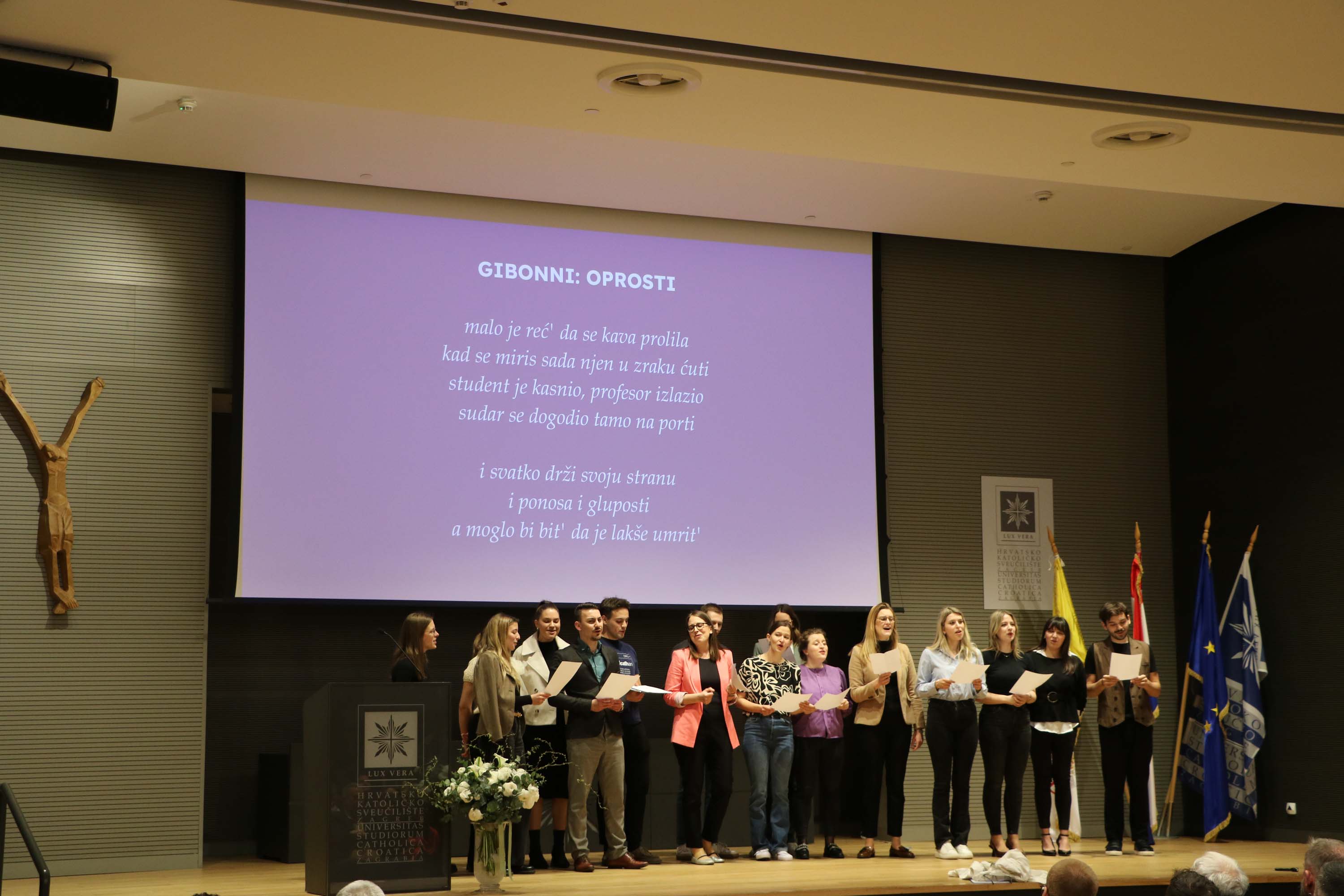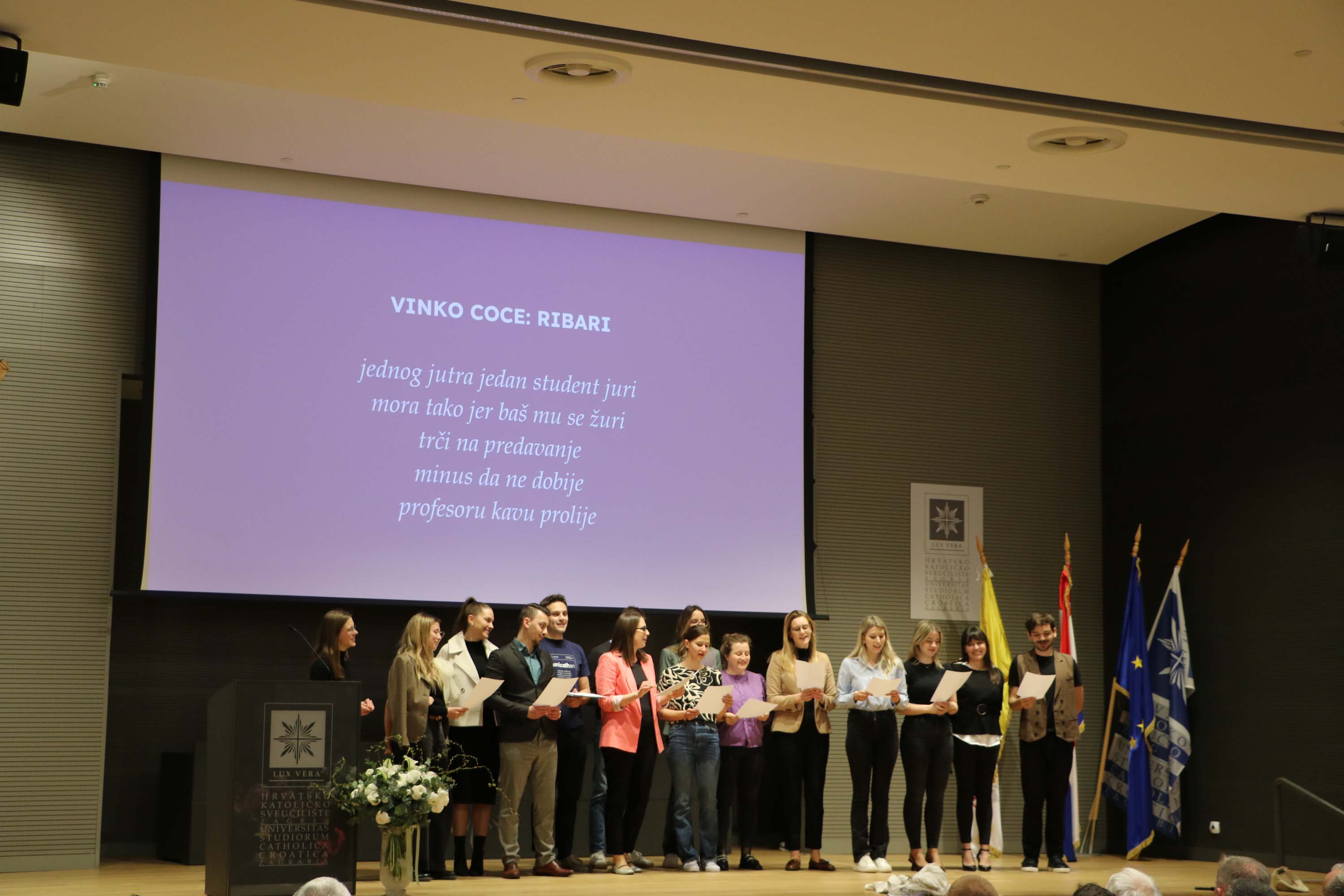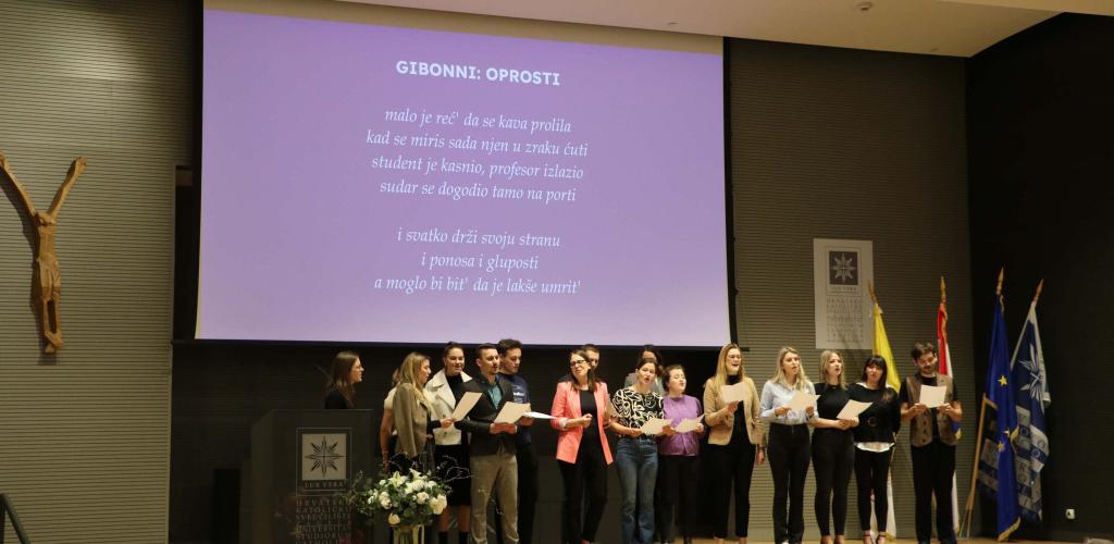 U prigodnom programu, studentice Nora Kljajić i Ana Šćević pročitale su svoje osvrte na Poruku pape Franje za 59. Svjetski dan sredstava društvenih komunikacija.