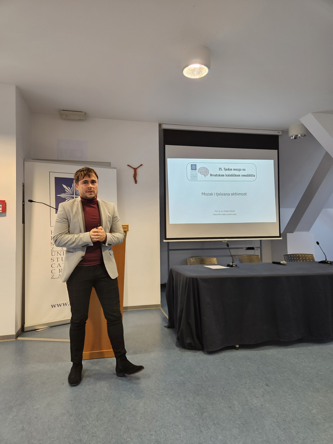 Svoj je doprinos programu dao i pročelnik Sveučilišnog odjela za psihologiju doc. dr. sc. Dragan Glavaš, koji je održao predavanje na temu Mozak i tjelesna aktivnost. Time je na osobit način zaokružen ovogodišnji tematski okvir Tjedna mozga, naglašavajući važnu povezanost tjelesne aktivnosti, funkcioniranja mozga i očuvanja psihološke dobrobiti.