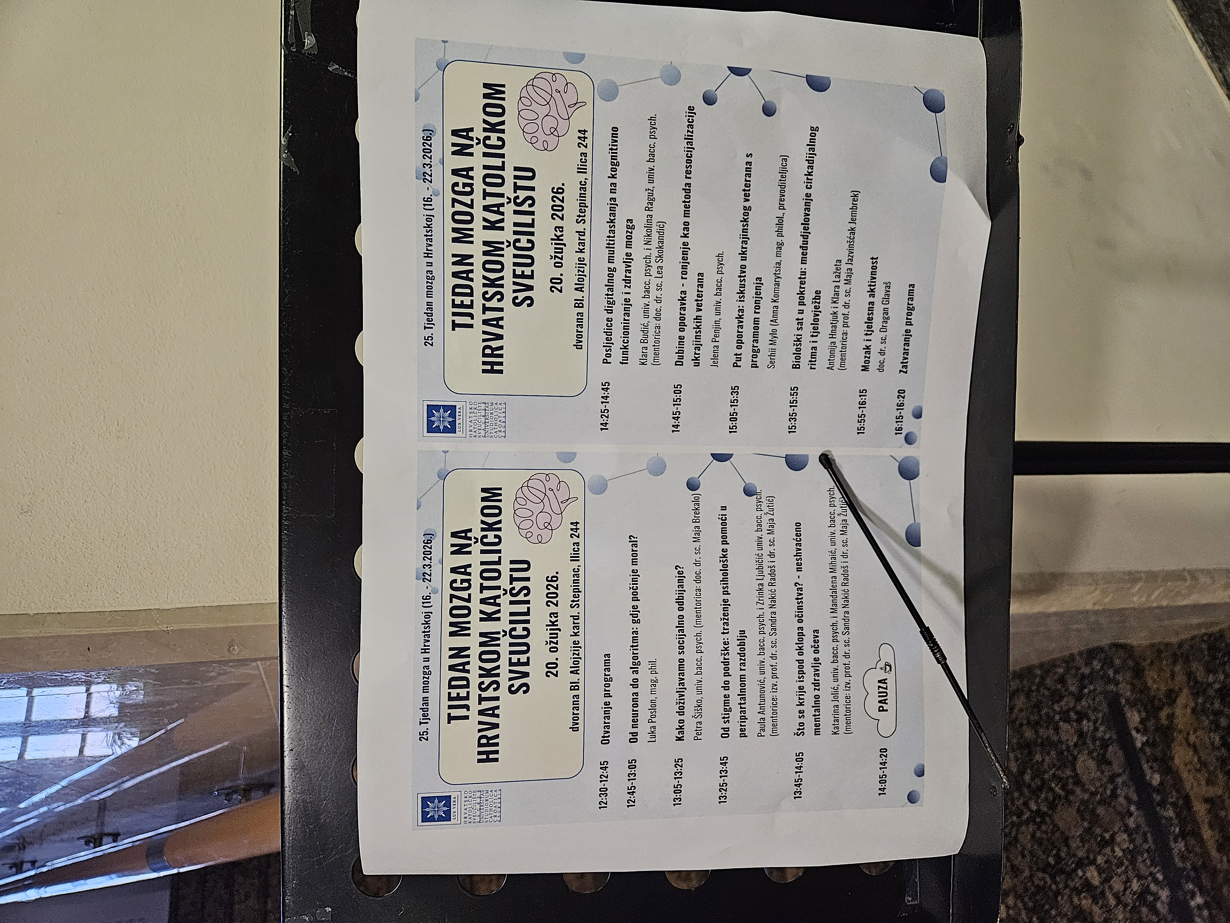 U organizaciji Sveučilišnog odjela za psihologiju, 20. ožujka 2026. na našem Sveučilištu održan je program u sklopu obilježavanja 25. Tjedna mozga u Hrvatskoj, tradicionalne manifestacije posvećene popularizaciji neuroznanosti te promicanju spoznaja o važnosti mozga, mentalnoga zdravlja i psihološke dobrobiti.