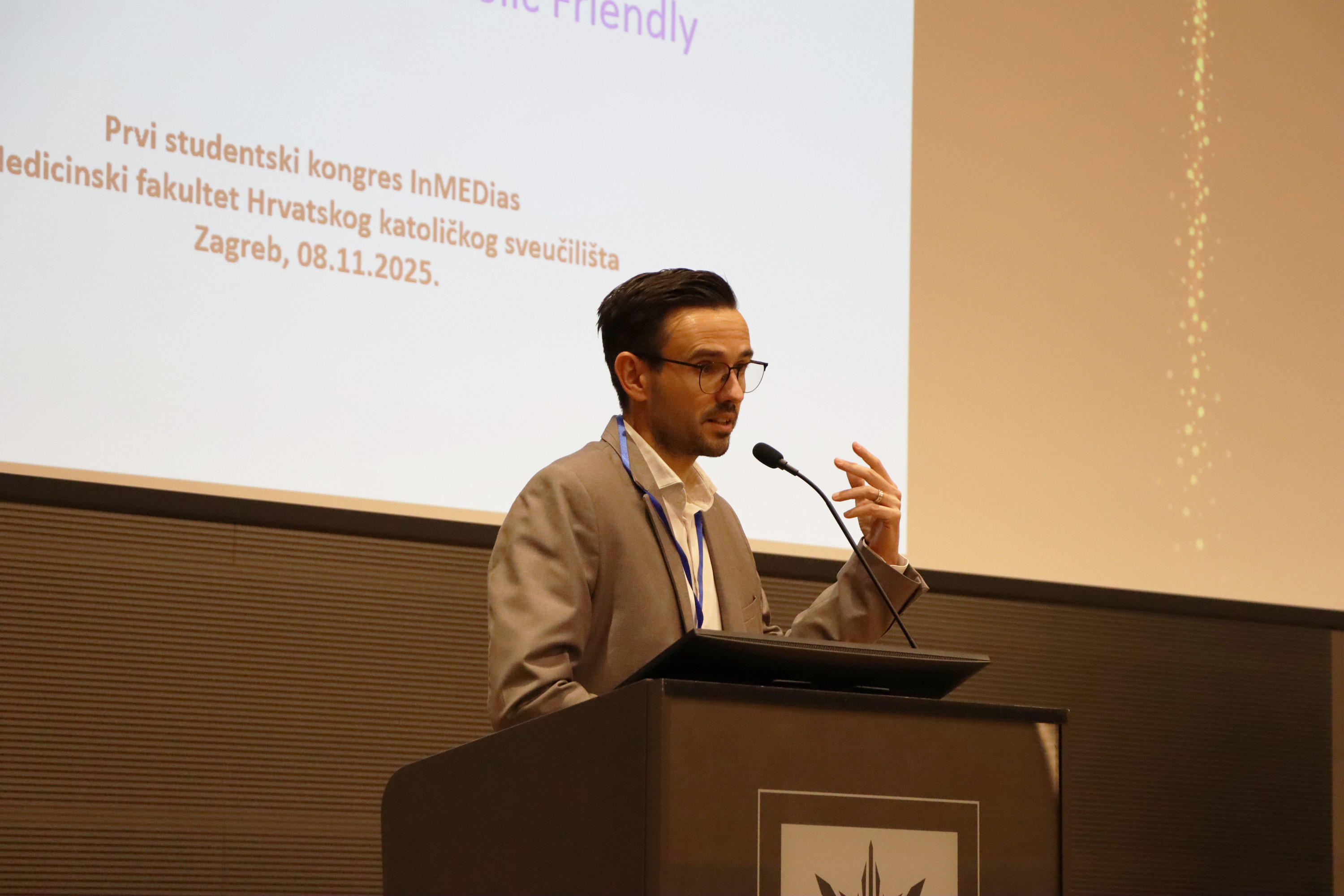 In MEDias, prvi znanstveni kongres studenata Medicinskog fakulteta HKS-a održan je u subotu 8. studenog 2025. u Auli magni pod krovnom temom Od čega boluje suvremeni čovjek? – Uloga metabolizma u nastanku najčešćih kroničnih bolesti. Cilj kongresa bio je okupiti ambiciozne mlade buduće liječnike i znanstvenike s medicinskih fakulteta iz cijele Hrvatske, omogućiti im predstavljanje vlastitih istraživanja te potaknuti razmjenu ideja kroz interaktivna predavanja i diskusije.