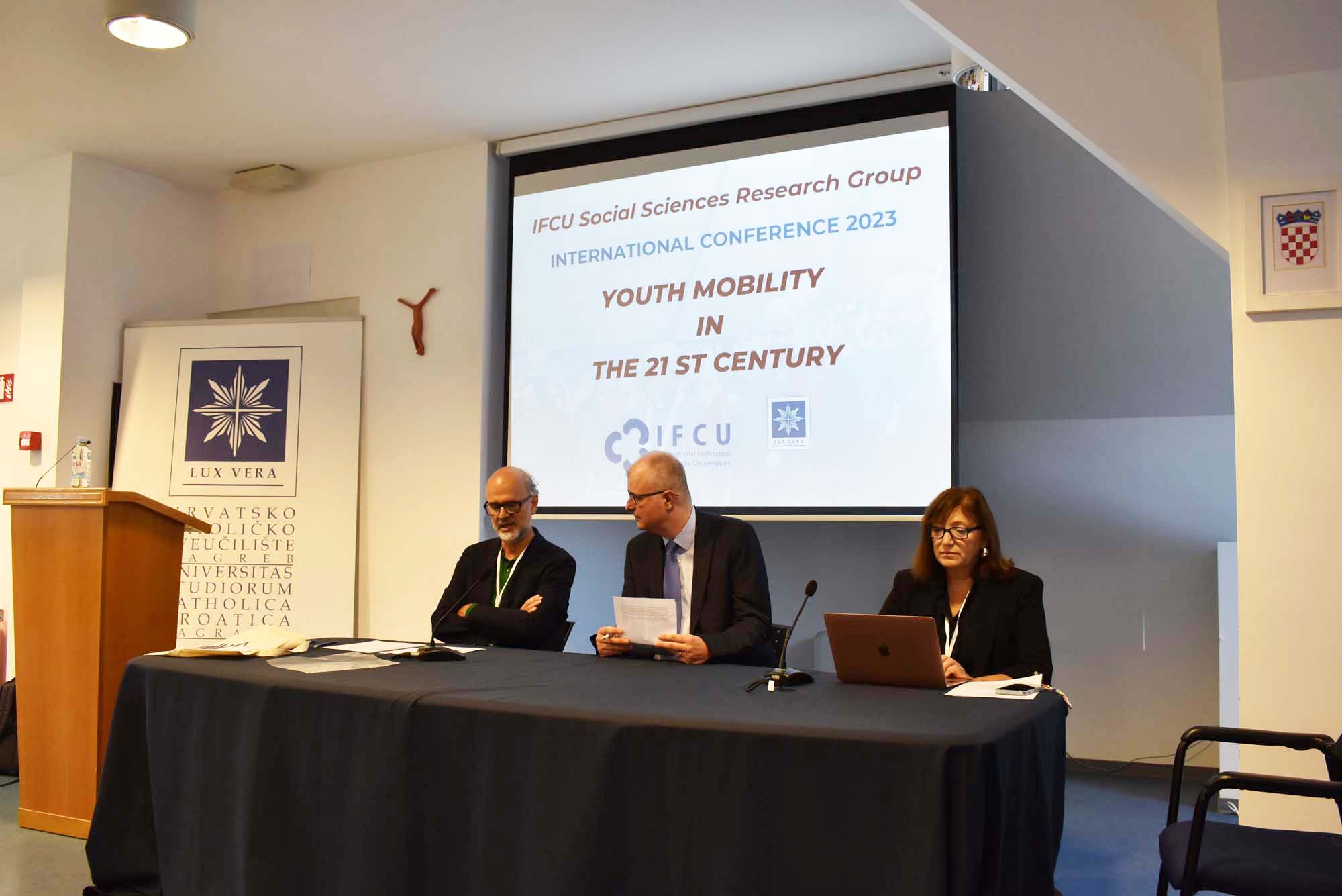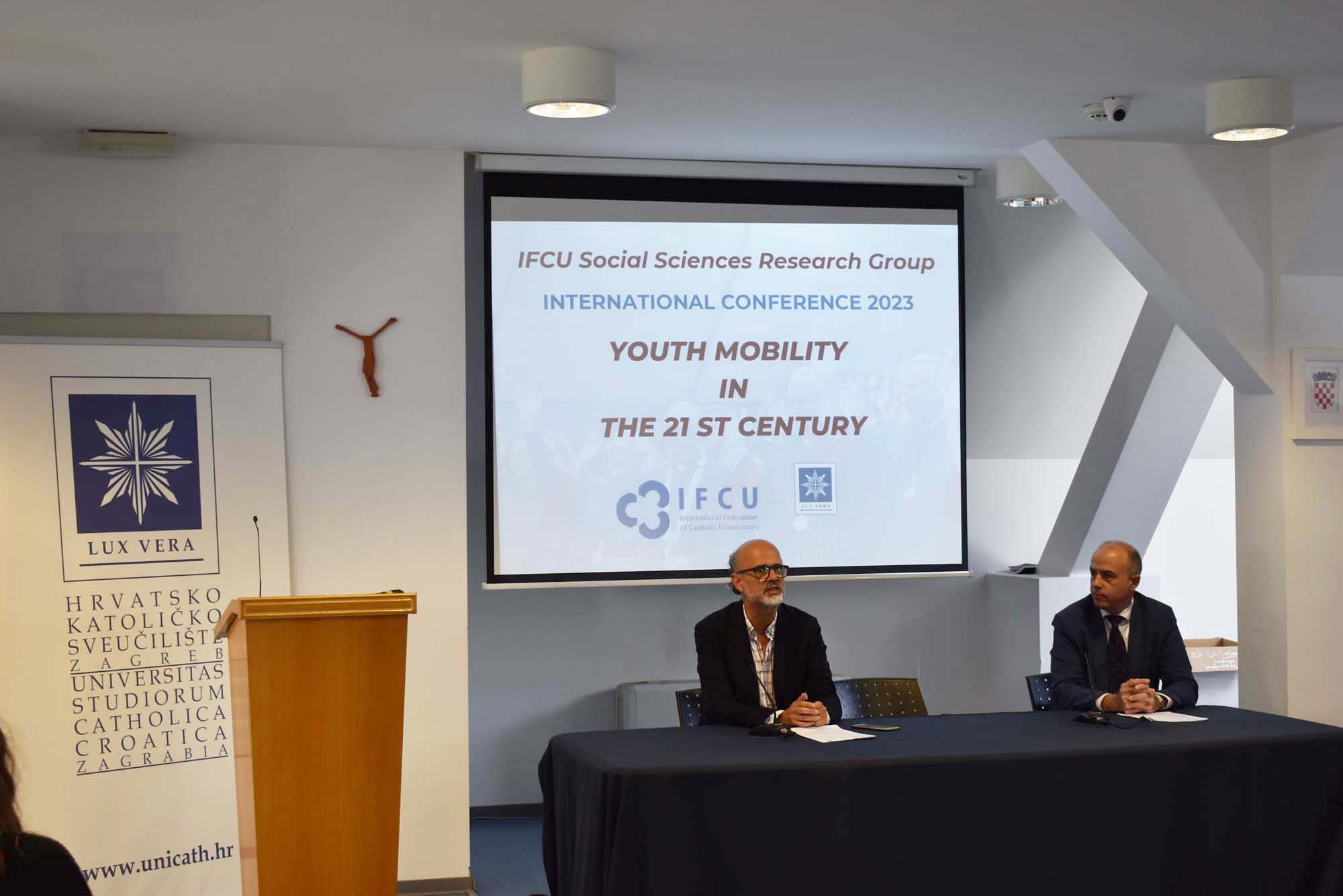 U srijedu 11. i u četvrtak 12. listopada 2023. dvorana "Bl. Alojzije kard. Stepinac" Hrvatskog katoličkog sveučilišta bila je središte sastanka istraživačke skupine Međunarodne federacije katoličkih sveučilišta za Društvene znanosti . Hrvatsko katoličko sveučilište kao domaćin i suorganizator ove radne skupine okupilo je tridesetak znanstvenika iz različitih dijelova svijeta kako bi predstavili svoj znanstveni rad i raspravljali unutra teme „Mobilnost mladih u 21. stoljeću“.