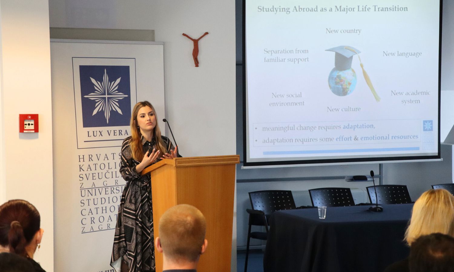 Studentima su predstavljeni pročelnici sveučilišnih odjela i ECTS koordinatori koji će im tijekom boravka biti glavna akademska podrška u vezi s kolegijima, ispitima i studijskim obavezama. U sklopu programa, izlaganje o hrvatskoj povijesti, kulturi i jeziku održala je asistentica na Odjelu za povijest Matea Jurić Matulić, čime su studenti dobili vrijedan uvod u društveni i kulturni kontekst zemlje u kojoj će provesti naredne mjesece. Poseban naglasak stavljen je i na važnost mentalnog zdravlja te procesa prilagodbe na novu sredinu. Predavanje na tu temu održala je dr. sc. Maja Žutić, viša asistentica na Odjelu za psihologiju, koja je studentima predstavila institucionalnu podršku dostupnu tijekom njihovog boravka na našem Sveučilištu.