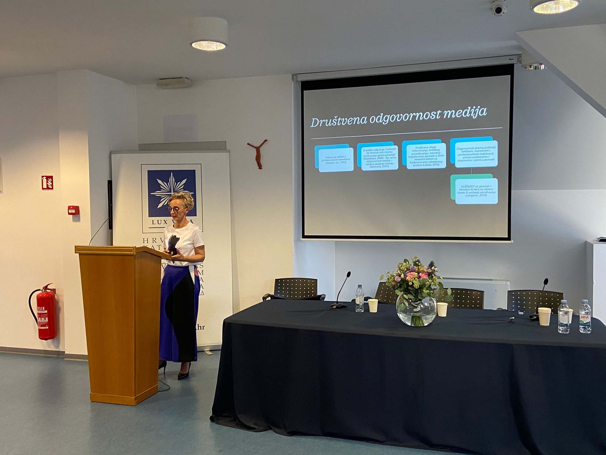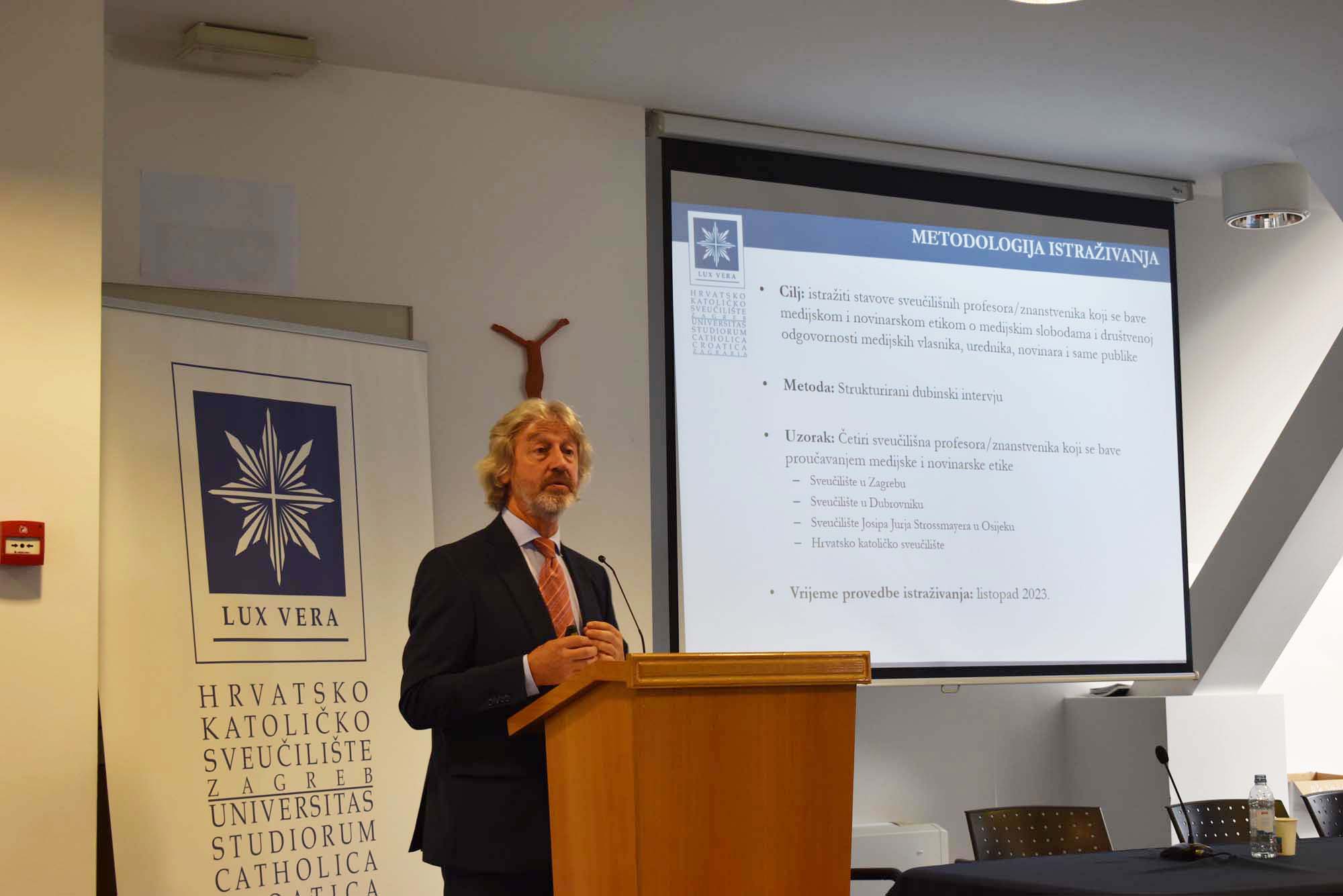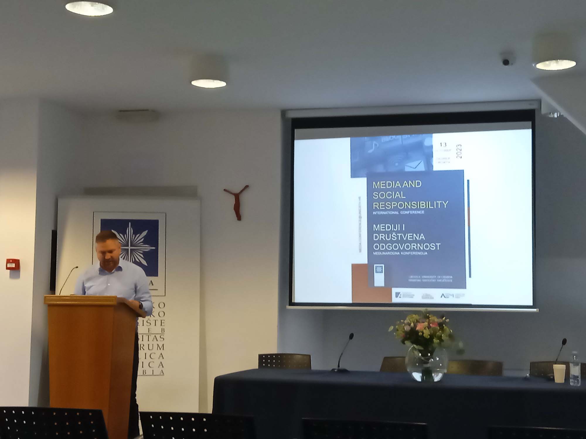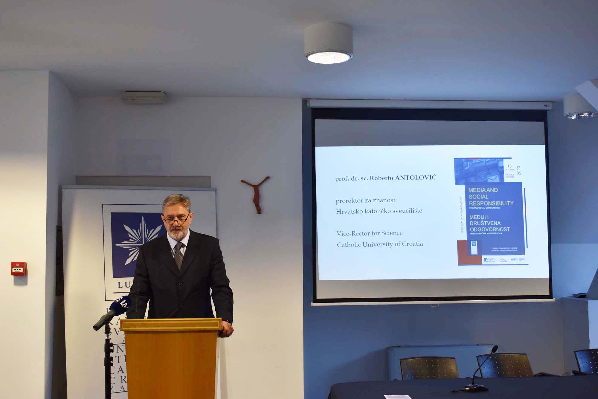 Na početku programa u ime Hrvatskog katoličkog sveučilišta okupljenima se obratio prof. dr. sc. Roberto Antolović, prorektor za znanost HKS-a. Okupljenima je zaželio dobrodošlicu, ugodan boravak i rad na HKS-u te je istaknuo kako je ovakva vrsta znanstvenih skupova važna, pogotovo u međunarodnom okružju jer su teme odgovornosti u medijima, odgovornosti samih medija, rada medija u današnjem okruženju koje se ovoliko brzo mijenja posebno aktualne.