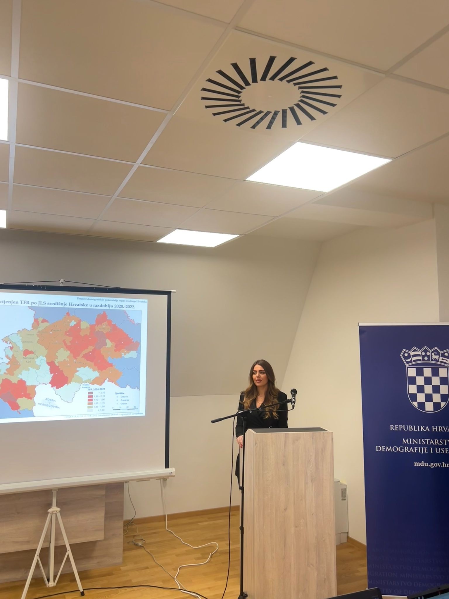 U prvom dijelu dijelu konferencije uvodno je predavanje na temu Aktivnosti i smjernice djelovanja Ministarstva demografije i iseljeništva održao Mladen Barać, državni tajnik Ministarstva demografije i useljeništva. Uslijedilo je predavanje o aktualnoj demografskoj slici koje je održao dr. sc. Tomislav Belić zaključivši kako je demografska revitalizacija putem unutarnjih potencijala teško ostvariva. Dr. sc. Nika Đuho Vulin je govorila o (ne)iskorištenosti demografskih mjera, dok je izv. prof. dr. sc. Petra Palić predstavila potencijale i slabosti te preporuke za daljnje aktivnosti u JLS u regiji središnja Hrvatska.