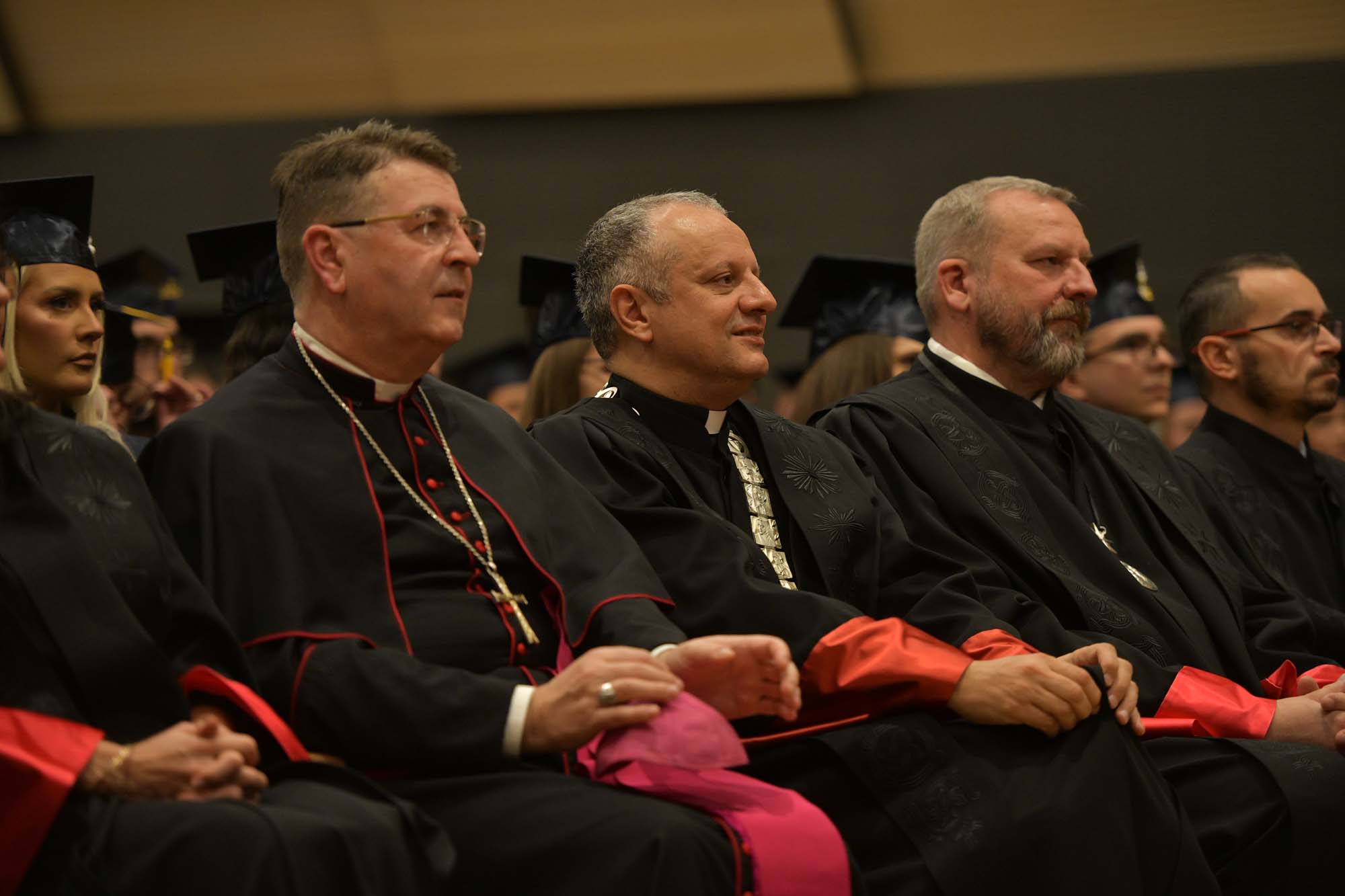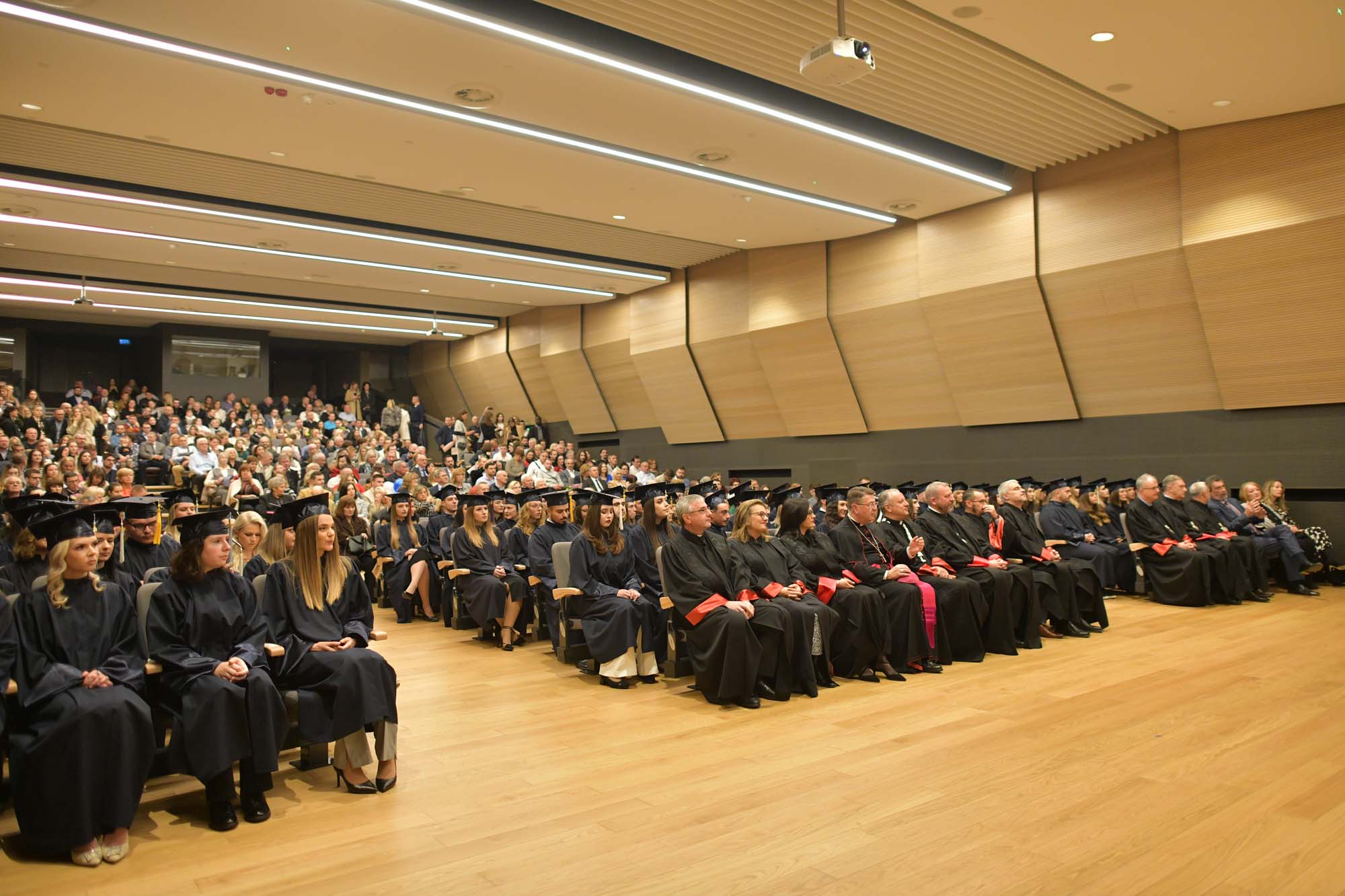 U ime Velikog kancelara kardinala Josipa Bozanića promovente je pozdravio mons Ivan Šaško koji je govorio o važnosti dokumenta koji magistre i magistri primaju na svečanoj dodjeli diploma. „U dokumentu koji primate zgusnuti su važni dijelovi vaših života, privlačnosti i oduševljenja, nadanja, odluka i razmišljanja, prošloga i sadašnjega, postajući novim polazištem za vrijeme pred vama. No, taj je list nositelj i užih i širih zajednica koje su prisutne i u ovoj dvorani. Na njemu trepere ljubavi vaših roditelja, vaših obitelji, prijatelja, podupiratelja, raznih suputnika koji vas vole, koji vam žele dobro, koji vam se raduju. …Sve životne sastavnice danas su u veličini malenosti. Ovdje je i svjetlo i pogled, i zvuk i pokret, i miris i okus, i svečano ruho i ljepota duha. Onako kako priliči slavlju. Veličine je teško ponijeti sa sobom, a sitnice – one su tako ponizno snažne da uvijek stanu u neki džep, u neki pretinac, 'file', u neku brazdu, poput sjemena, spremne rasti. Da, pokazivat će vam poteškoće, lomiti nadu, gurati vas u beznađe, želeći vas puno puta izgurati iz svega što je upisano na diplomi, udaljiti vas: od obitelji, od bližnjih, od prijatelja, od Crkve, od domovine, od jezika i naroda, od sjećanja i planiranja… Posegnite u neko malo spremište duše u kojemu ćete pronaći i današnji dan i u njemu naizgled – sitnice. I diploma, najčešće služi da bismo nešto pokazali ili dokazali drugima. Nekada ju pogledajte da biste vidjeli lijepu istinu o sebi i bližnjima“- kazao je mons. Šaško u svom govoru.
