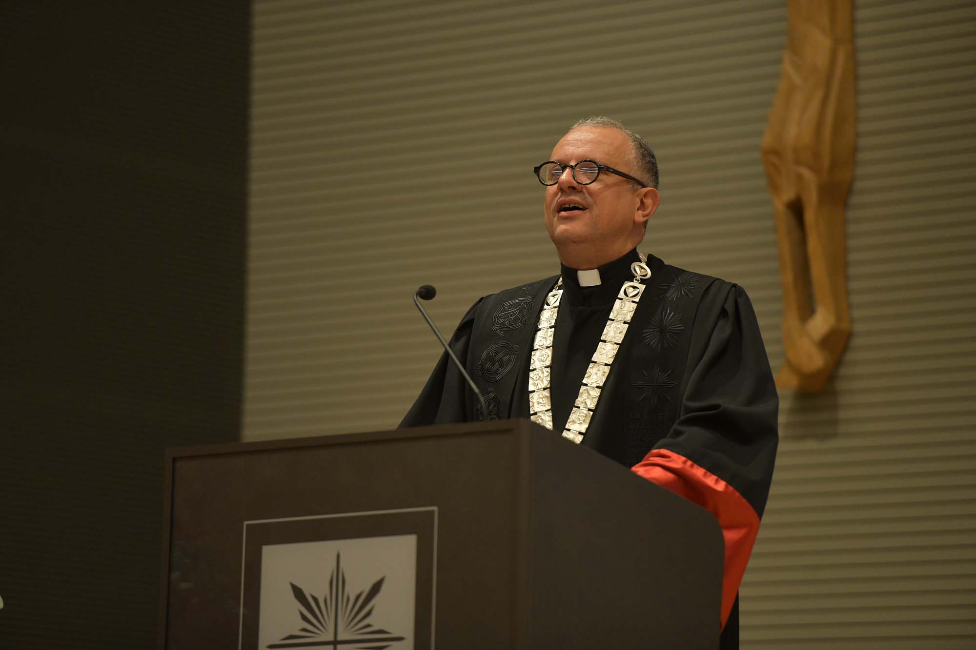 Na logu našega Sveučilišta, ispod osmokrake zvijezde nalazi se natpis „LUX VERA“, stoga, za kraj, svima vama mogu zaželjeti više svjetla u svakodnevnom životu. Drage kolegice i kolege, dragi roditelji, dragi profesori i dragi prijatelji, neka u Vašim srcima zauvijek tinja plamen Svjetla Istine. Svjetla upaljenoga prvom Riječju koja je postala tijelom i prebivala među nama. Svjetla koje svijetli u tami i koje tama ne obuzima. Neka nas sve prati to Svjetlo – Lux vera!"