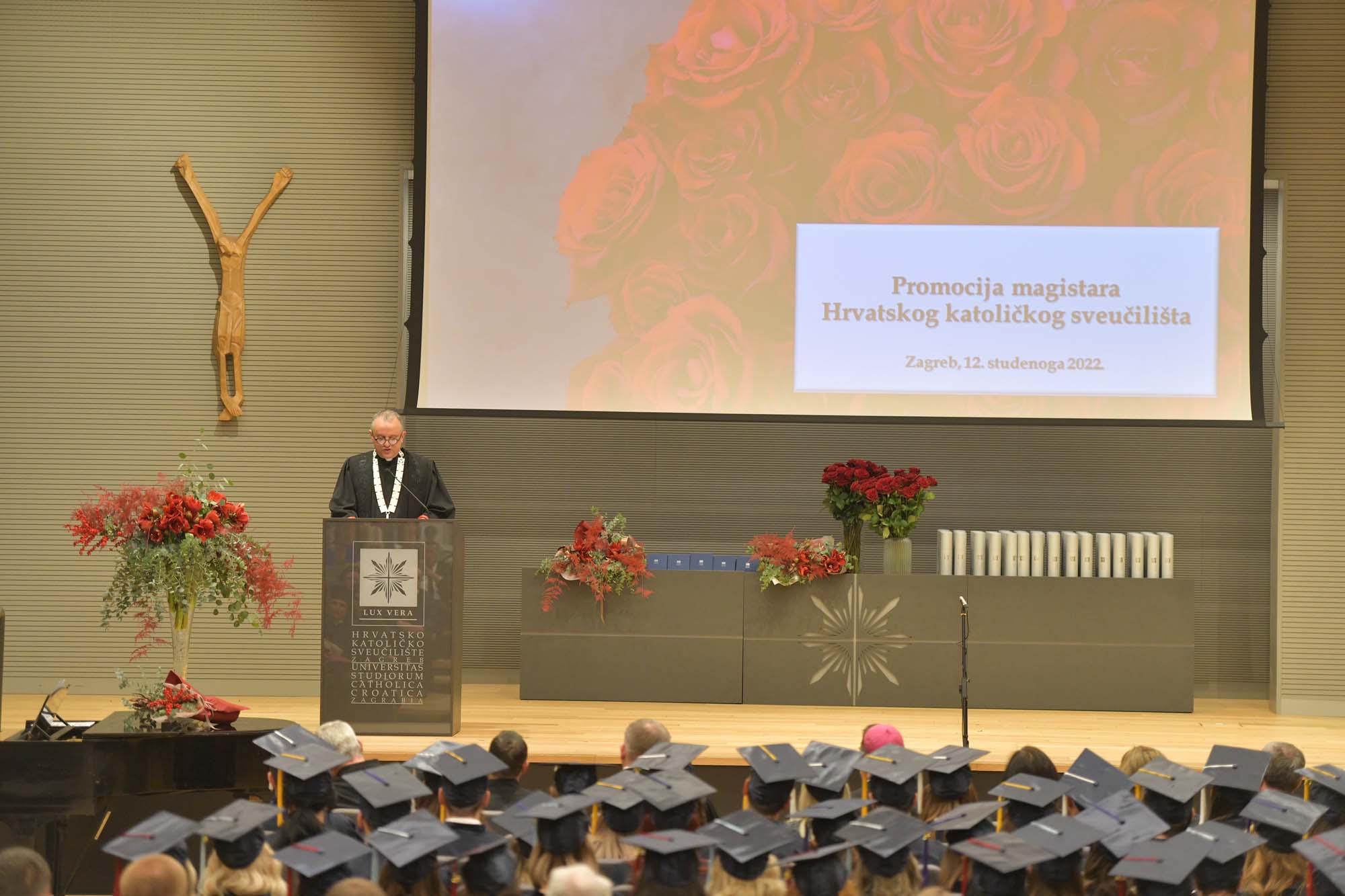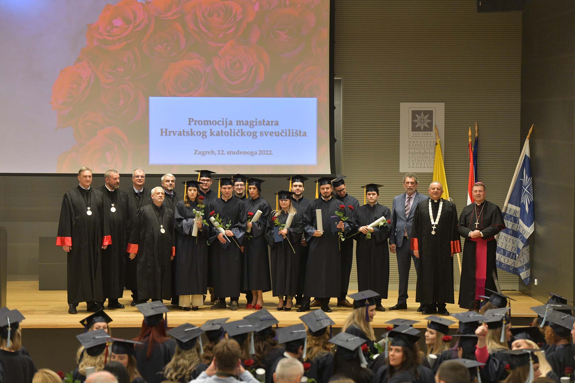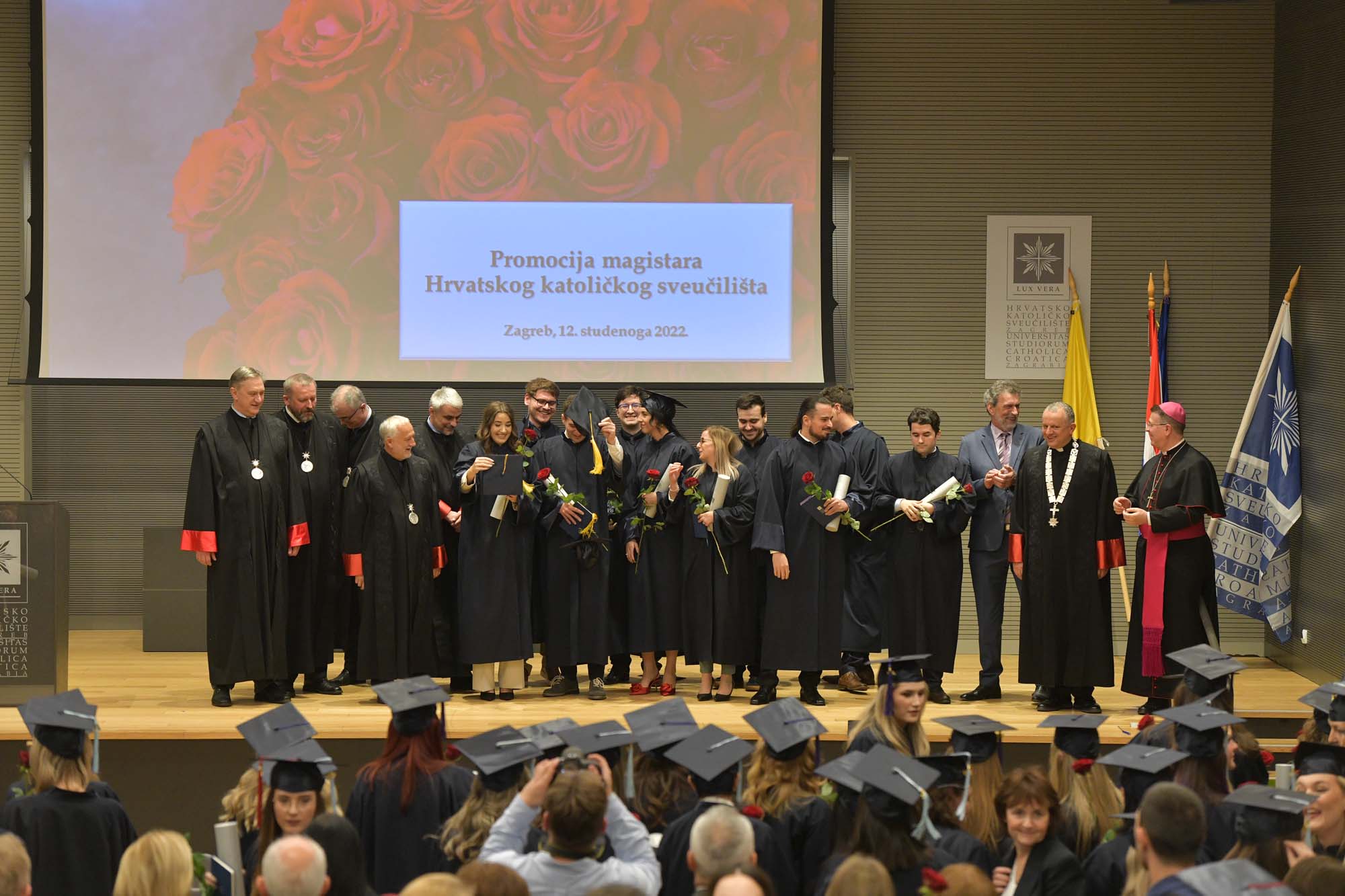 U subotu, 12. studenoga 2022. u Velikoj dvorani Hrvatskog katoličkog sveučilišta održana je svečana promocija 142 magistara Hrvatskog katoličkog sveučilišta koji dolaze s Odjela za povijest, Odjela za psihologiju, Odjela za sociologiju, Odjela za sestrinstvo i Odjela za komunikologiju.