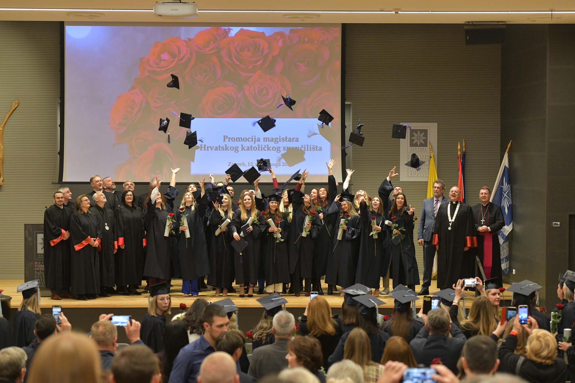 Svečanoj promociji prisustvovali su uz magistre i njihove obitelji rektor Hrvatskog katoličkog sveučilišta prof. dr. sc. Željko Tanjić, prorektor za nastavu prof. dr. sc. Roko Mišetić, prorektor za organizaciju i poslovanje prof. dr. sc. Gordan Črpić, prorektor za znanost prof. dr. sc. Roberto Antolović i prorektor za međunarodnu suradnju prof. dr. sc. Hrvoje Štefančić, te sveučilišni kapelan vlč. Branimir Jagodić. Slavljenike su podržali i njihovi pročelnici izv. prof. dr. sc. Mario Kevo, pročelnik Odjela za povijest, izv. prof. dr. sc. Ljiljana Pačić Turk, pročelnica Odjela za psihologiju, izv. prof. dr. sc. Mario Bara, pročelnik Odjela za sociologiju, izv. prof. dr. sc. Marta Čivljak, pročelnica Odjela za sestrinstvo i prof. dr. sc. Jerko Valković, pročelnik Odjela za komunikologiju. Svečanoj promociji u ime Velikog kancelara Hrvatskog katoličkog sveučilišta kardinala Josipa Bozanića prisustvovao je pomoćni biskup zagrebački mons. Ivan Šaško, prvi rektor Hrvatskog katoličkog sveučilišta.