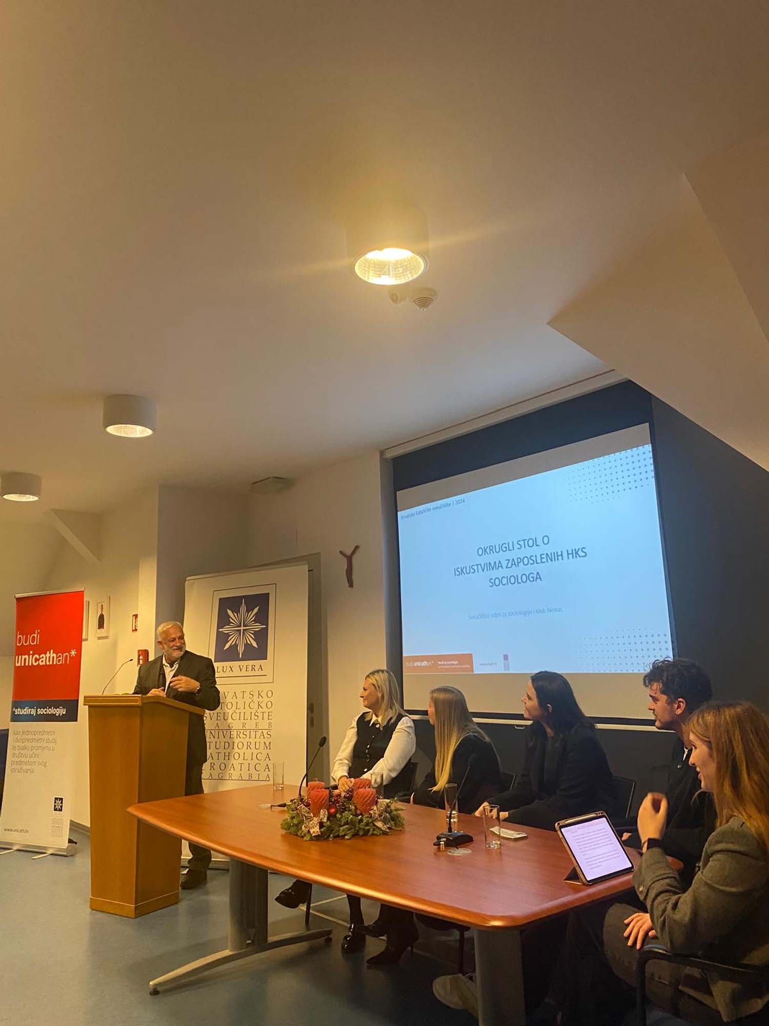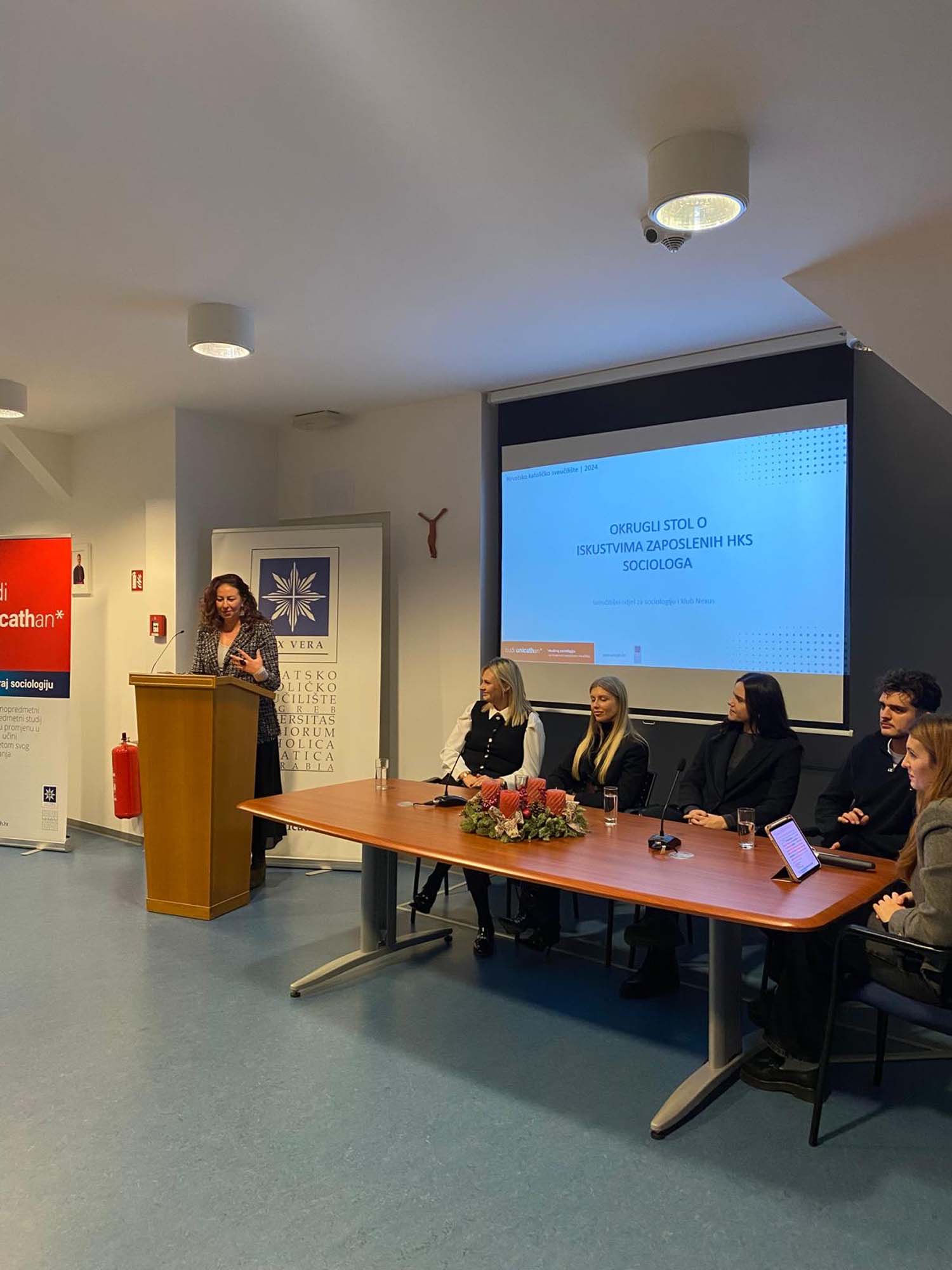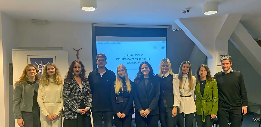 U ponedjeljak 9. prosinca 2024. u dvorani „Bl. Alojzije kard. Stepinac“ održan je okrugli stol o iskustvima zaposlenih sociologa s Hrvatskog katoličkog sveučilišta u organizaciji Sveučilišnog odjela za sociologiju i kluba studenata sociologije Nexus.
