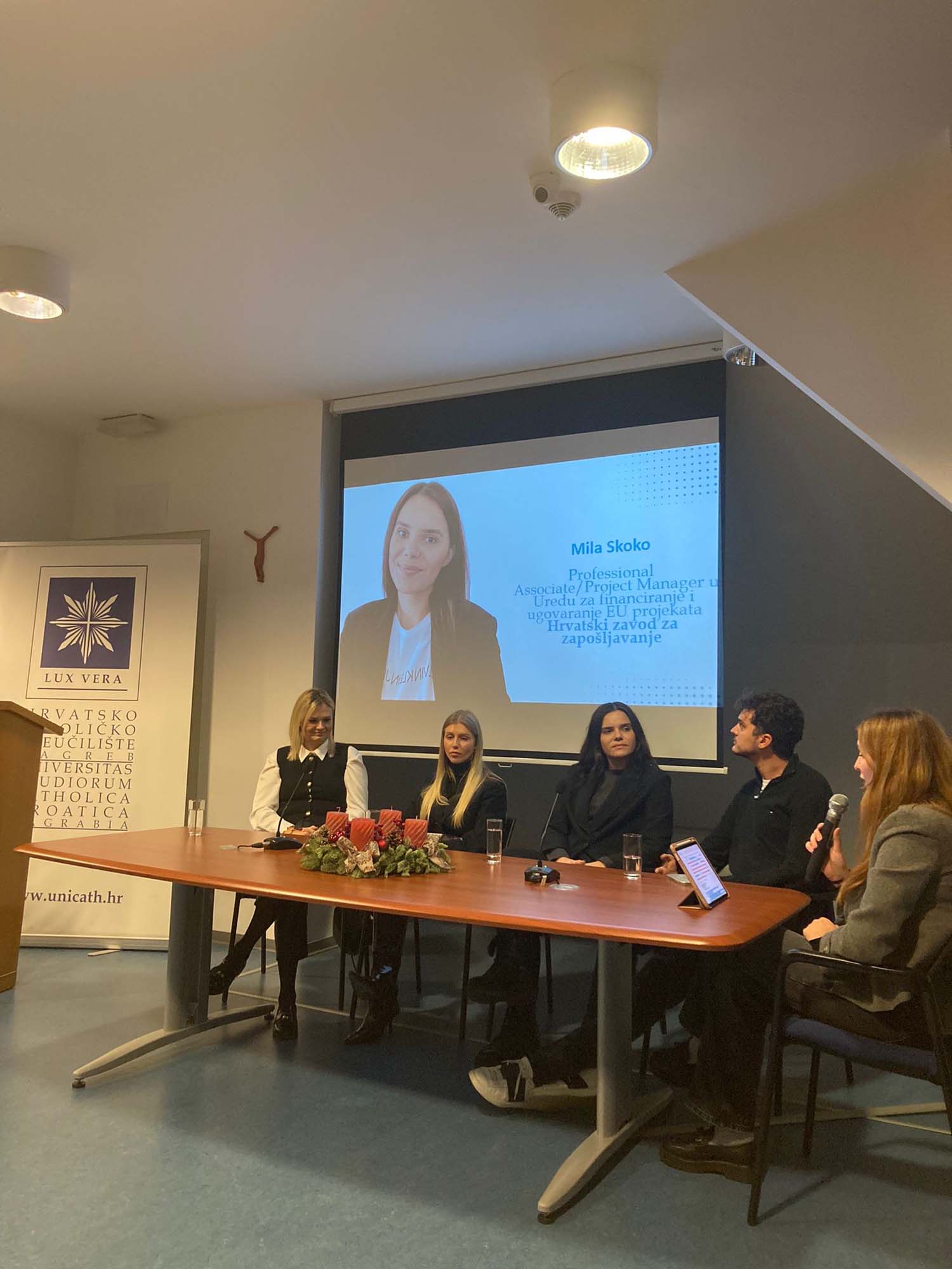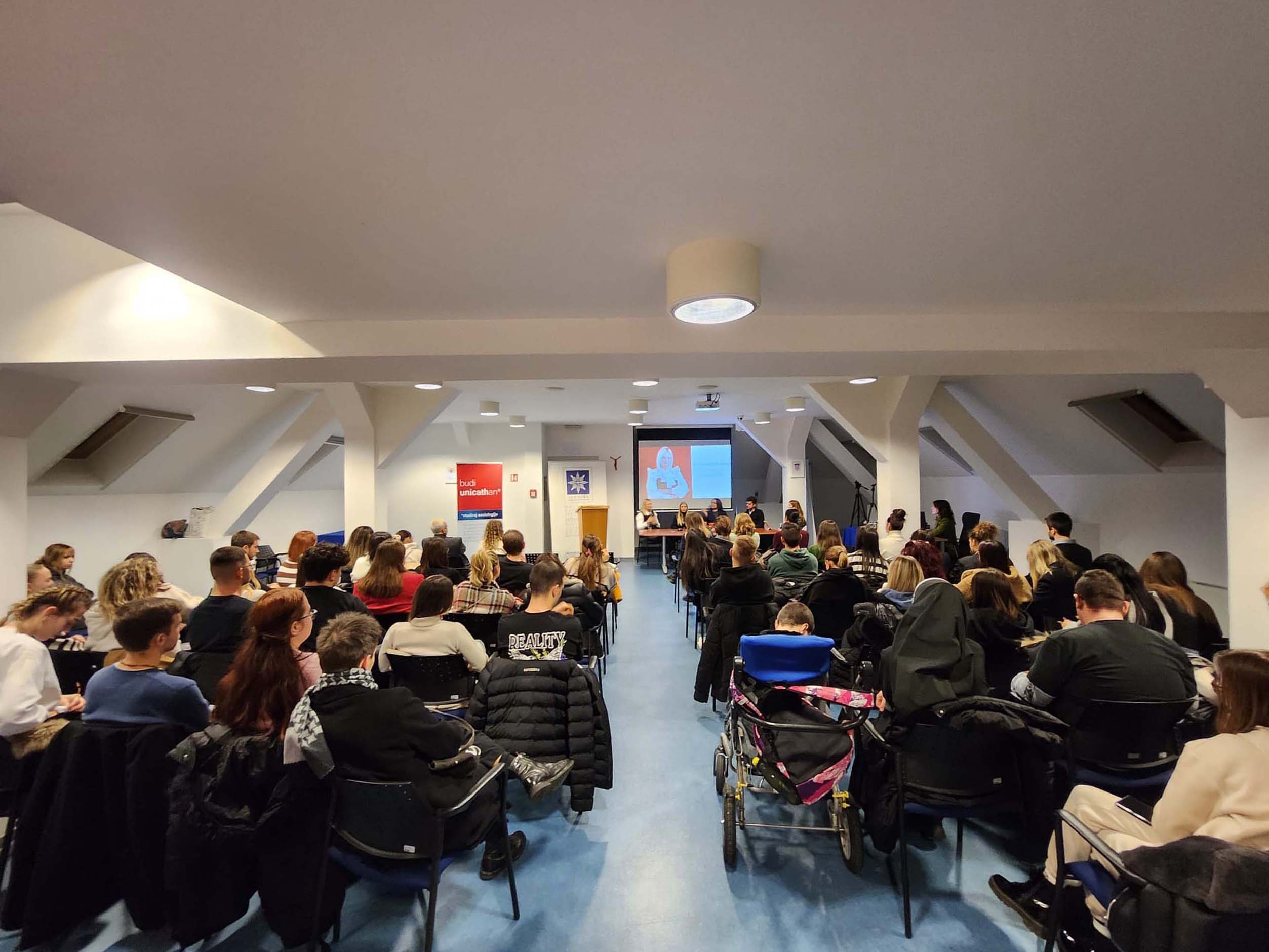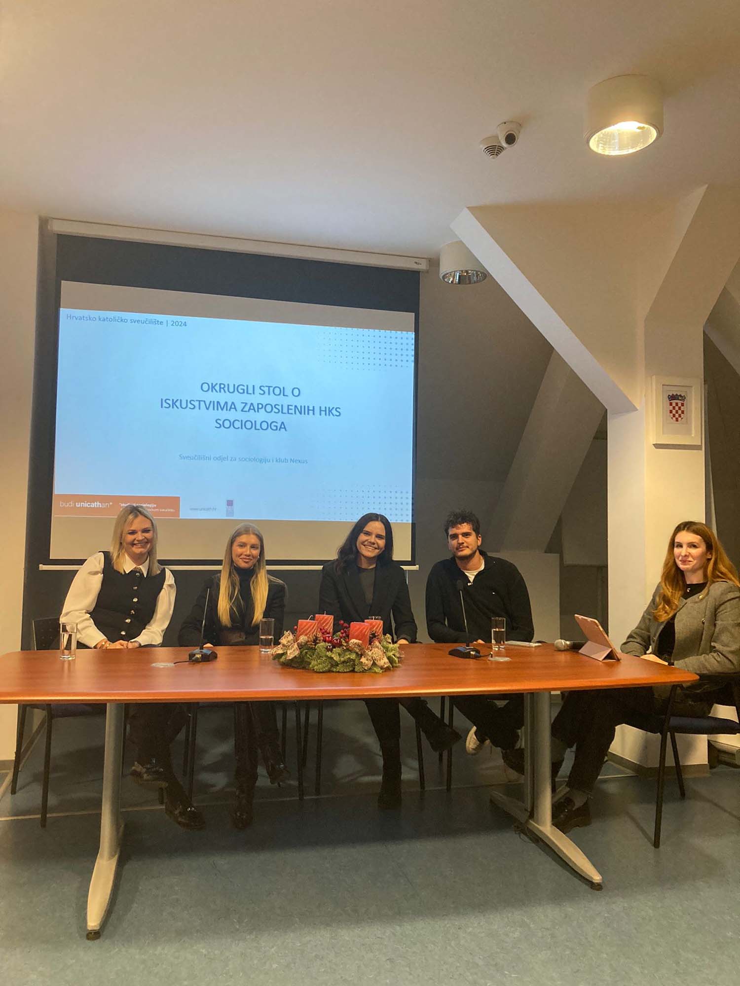 U ponedjeljak 9. prosinca 2024. u dvorani „Bl. Alojzije kard. Stepinac“ održan je okrugli stol o iskustvima zaposlenih sociologa s Hrvatskog katoličkog sveučilišta u organizaciji Sveučilišnog odjela za sociologiju i kluba studenata sociologije Nexus.
