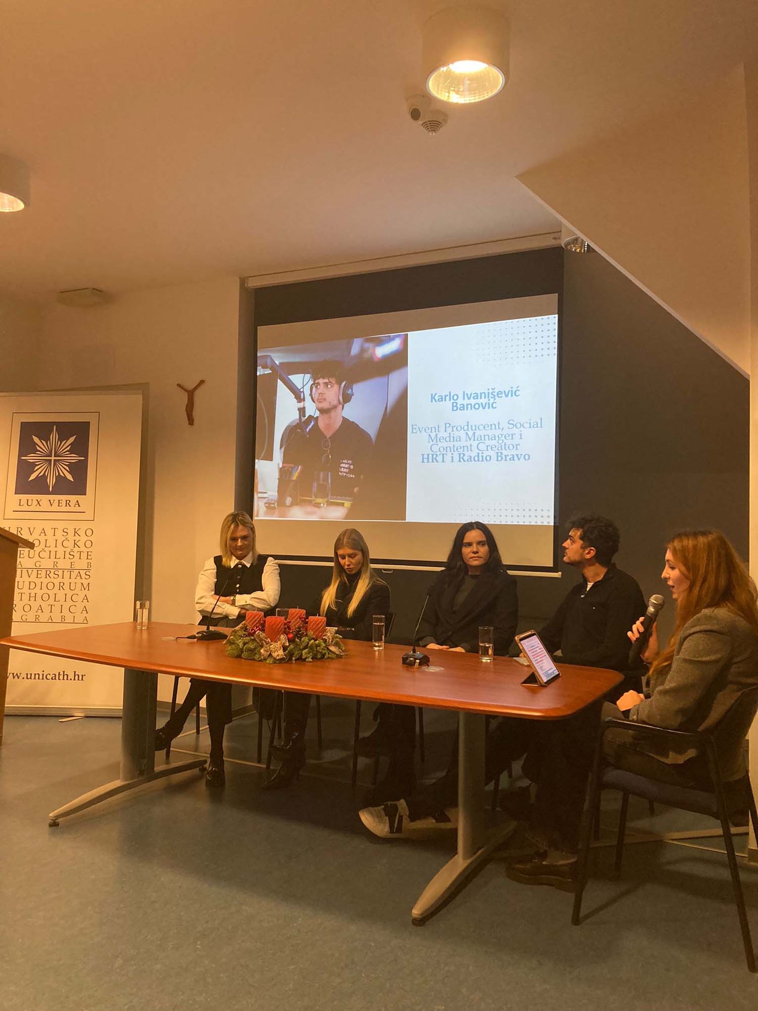 Nakon riječi dobrodošlice, svoju je riječ uputio Pero Josip Maslać, predsjednik Studentskog zbora i suvoditelj Nexusa. Sudionici okruglog stola bili su Bruna Božinović Komar (Coca-Cola HBC), Dolores Ptičar (Dm), Mila Skoko (HZZ) i Karlo Ivanišević Banović (HRT i Radio Bravo). Sudionici su iznijeli svoja iskustva i preporuke prilikom zapošljavanja, osvrnuli se na radno okruženje i na iskustvo studiranja na HKS-u te su osobito pohvalili strukturu studija kroz model 70/30 koji ih je osposobio za kontinuirani rad, vremensku organizaciju, kao i vrijednost timskog rada koju su prakticirali kroz seminarske zadatke.
