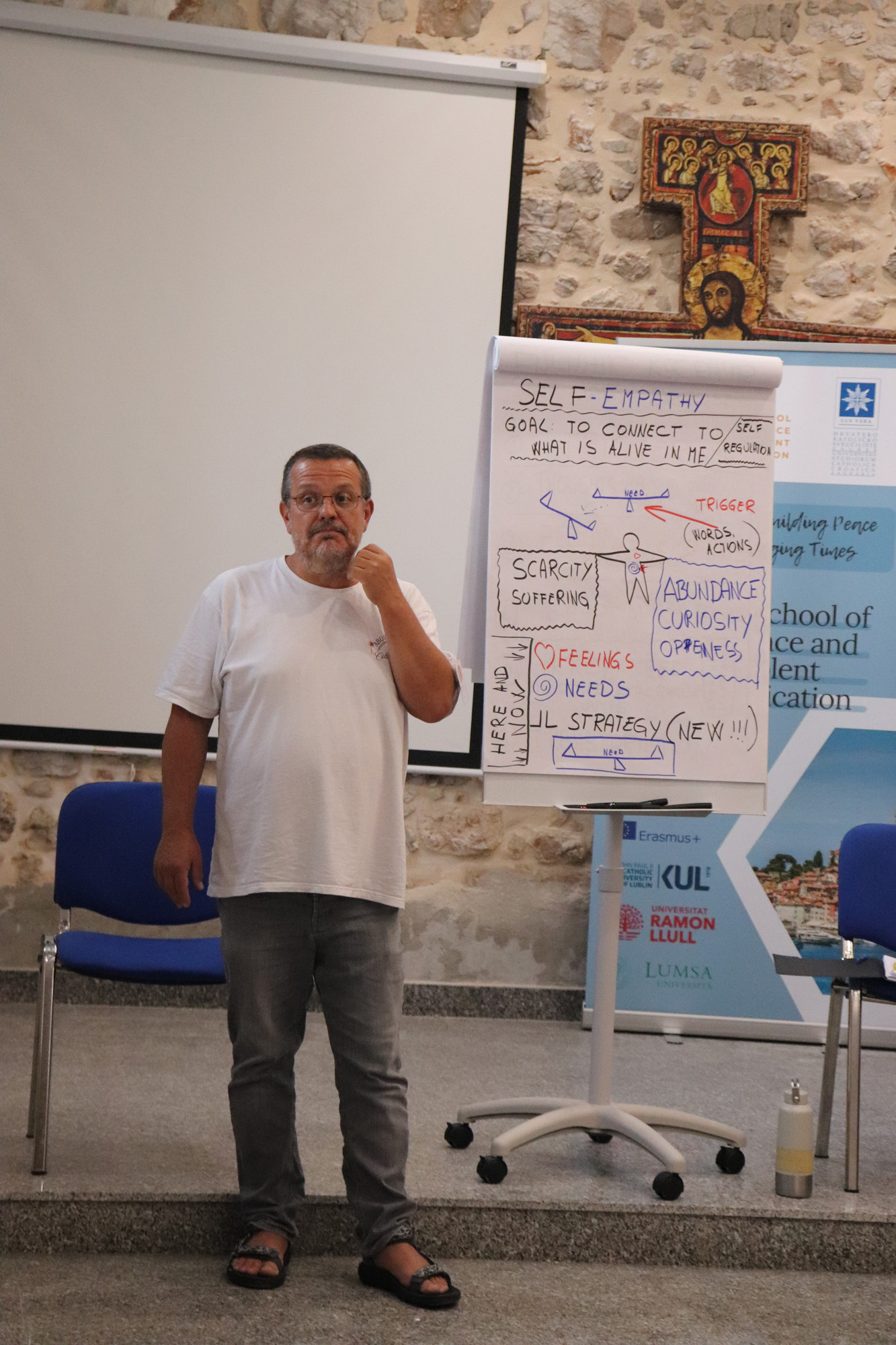 Prvoga dana Ljetne škole, u ponedjeljak 8. rujna, radionicu o temi „Nonviolent Communication and Marshall B. Rosenberg“ održale su izvanredna profesorica Irena Sever Globan i viša asistentica Leali Osmančević sa Sveučilišnog odjela za komunikologiju. U nastavku tjedna, radionice održavaju treneri nenasilne komunikacije Dmitriy Kopina, Gordana Stanković i Ingrid Halbritter. Ljetna škola traje do petka 12. rujna, a polaznici će kroz koncept nenasilne komunikacije Marshalla Rosenberga promišljati o temama empatije i empatijskog slušanja, autentičnog izražavanja osjećaja i potreba u komunikaciji te nenasilnog razrješavanja konflikata i medijacije. U sklopu slobodnoga vremena, u suradnji s Turističkom zajednicom grada Rovinja polaznici su imali vođenu turističku turu po Rovinju kako bi se upoznali s povijesnim, vjerskim i kulturnim specifičnostima Rovinja.