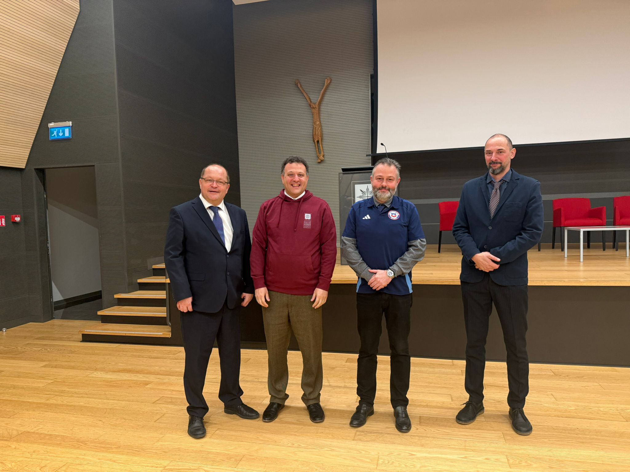 Dekan Pravnog fakulteta HKS-a izv. prof. dr. sc. Kristian Turkalj predstavio je rad i razvoj Pravnog fakulteta, naglasivši sudjelovanje u St. Catherine Circle, međunarodnoj platformi za suradnju katoličkih pravnih fakulteta koju organizira Sveučilište Notre Dame.