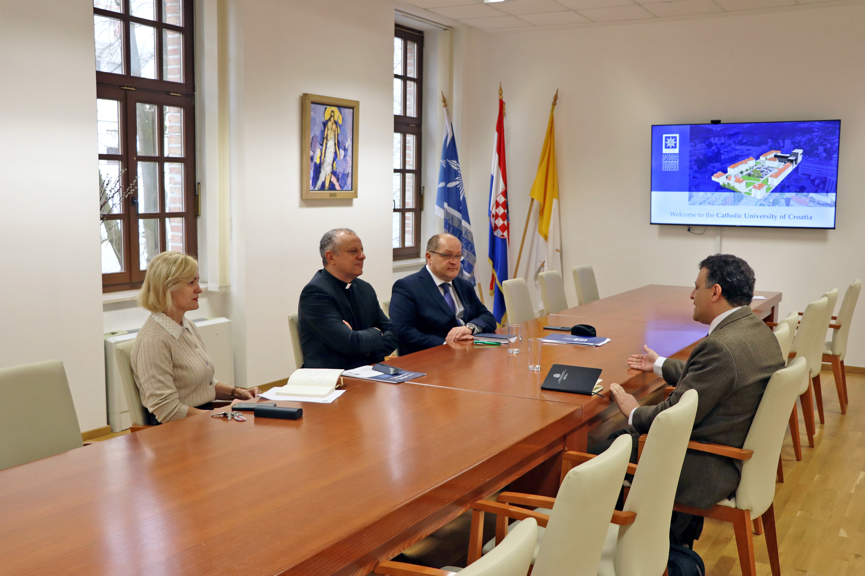 Tijekom sastanka razgovaralo se o mogućnostima uspostave suradnje između dvaju sveučilišta, s posebnim naglaskom na jačanje međunarodne akademske suradnje u području prava. Rektor Tanjić predstavio je dosadašnje aktivnosti Hrvatskog katoličkog sveučilišta te istaknuo kako će HKS u svibnju 2026. biti domaćin sastanka Glavne skupštine FUCE-a. Prorektorica za međunarodnu suradnju prof. dr. sc. Jasna Ćurković Nimac detaljnije je predstavila HKS, kao i strateško usmjerenje prema internacionalizaciji, s posebnim osvrtom na aktivnosti i programe u području međunarodne suradnje.