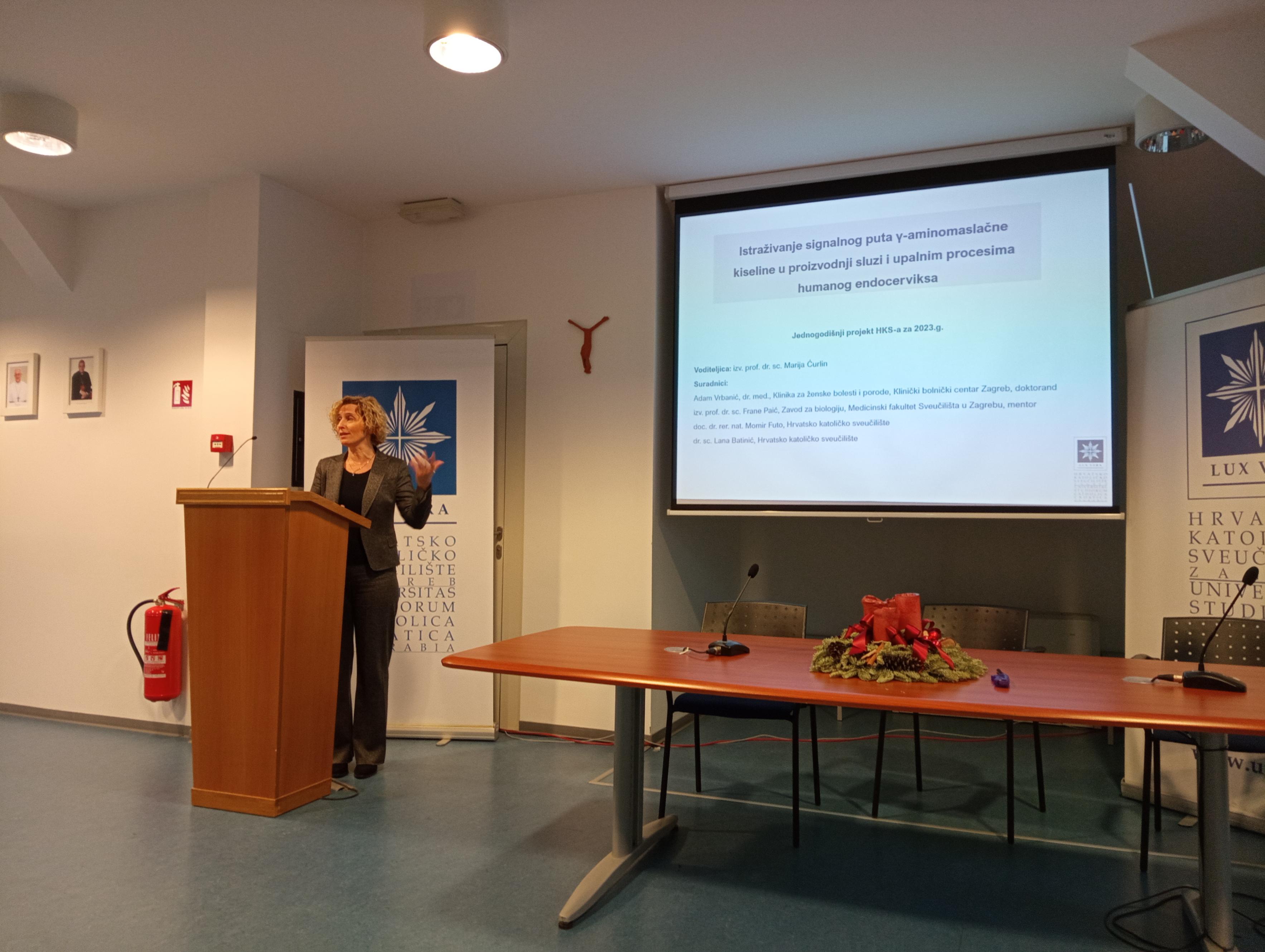 Izv. prof. dr. sc. Marija Ćurlin predstavila je projekt „Istraživanje signalnog puta γ-aminomaslačne kiseline u proizvodnji sluzi i upalnim procesima humanog endocerviksa“, doc. dr. sc. Valentina Janković Barbarić „Toma Kovačević - Katalog zagrebačkih biskupa i kanonika“, izv. prof. dr. sc. Ivana Vrselja projekt „Sociopsihološke odrednice i načini ojačanja percepcije rizika zbog klimatskih promjena“ te dr. sc. Vanesa Varga projekt „Sreća nije u stvarima: uloga medija, roditelja i vršnjaka u oblikovanju materijalizma kod djece“.
