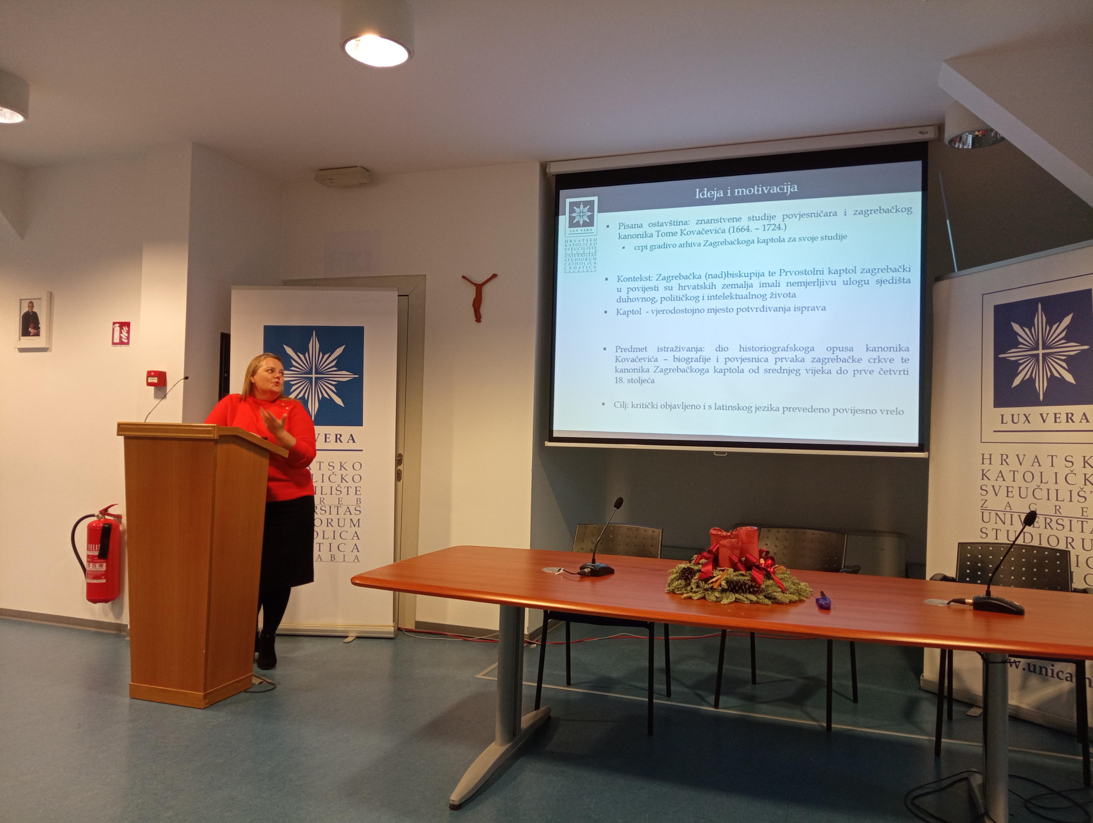 Uslijedilo je predstavljanje projekata prema Natječaju za realizaciju jednogodišnjih znanstvenih projekata Hrvatskog katoličkog sveučilišta za 2023. godinu.