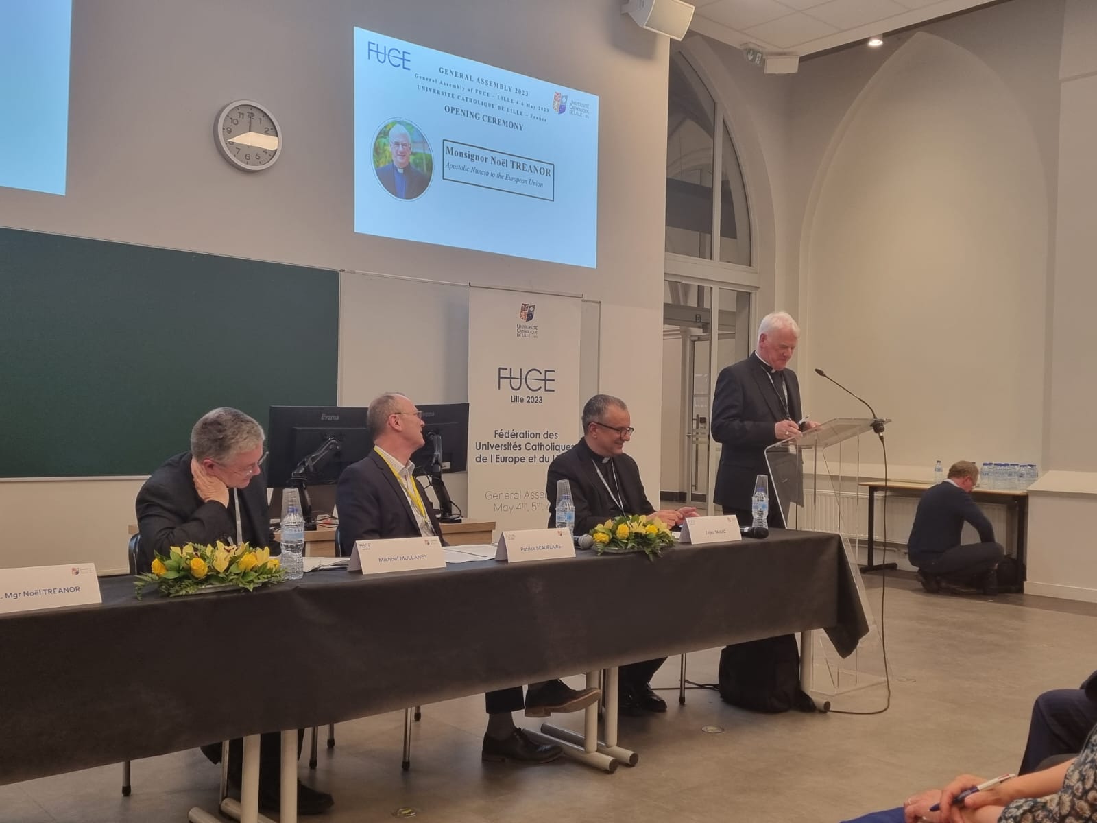Generalna skupština Europske federacije katoličkih sveučilišta započela je obraćanjem predsjednika Europske federacije katoličkih sveučilišta prof. dr. sc. Michaela Mullaneyja, rektora Papinskog sveučilišta svetog Patrika u Maynoothu u Irskoj, potom obraćanjem rektora Katoličkog sveučilišta u Lilleu prof. dr. sc. Patricka Scauflairea i Otmara Karasa, zastupnika u Europskom parlamentu i prvog potpredsjednika Europskog parlamenta. Pozvano predavanje „Europska katolička sveučilišta i Europska unija – izazovi i perspektive“ održali su apostolski nunciju u Europskoj uniji irski nadbiskup mons. Noel Treanor i rektor Hrvatskog katoličkog sveučilišta prof. dr. sc. Željko Tanjić.