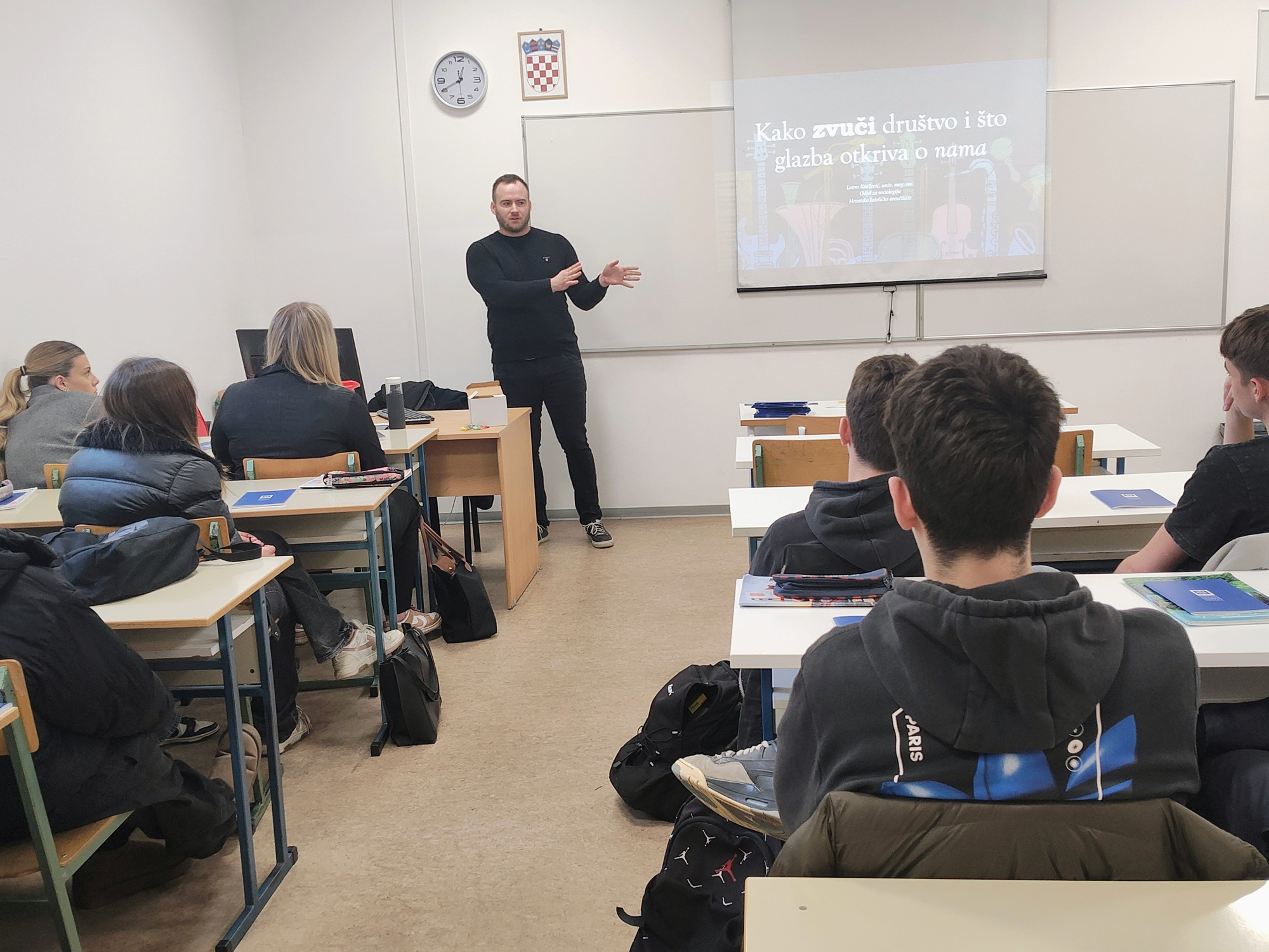 Središnji dio susreta bilo je tematsko izlaganje asistenta Lovre Kneževića o sociologiji glazbe. Kao neizostavan dio svakodnevice mladih, glazba predstavlja njima blizak, ali i sociološki relevantan fenomen koji pomaže u razumijevanju suvremenog društva. Kroz analizu aktualne Billboardove top-ljestvice u Hrvatskoj učenicima su izložene osnovne društvene funkcije glazbe te uloge različitih aktera, od autora do publike, u oblikovanju glazbenih i društvenih trendova.