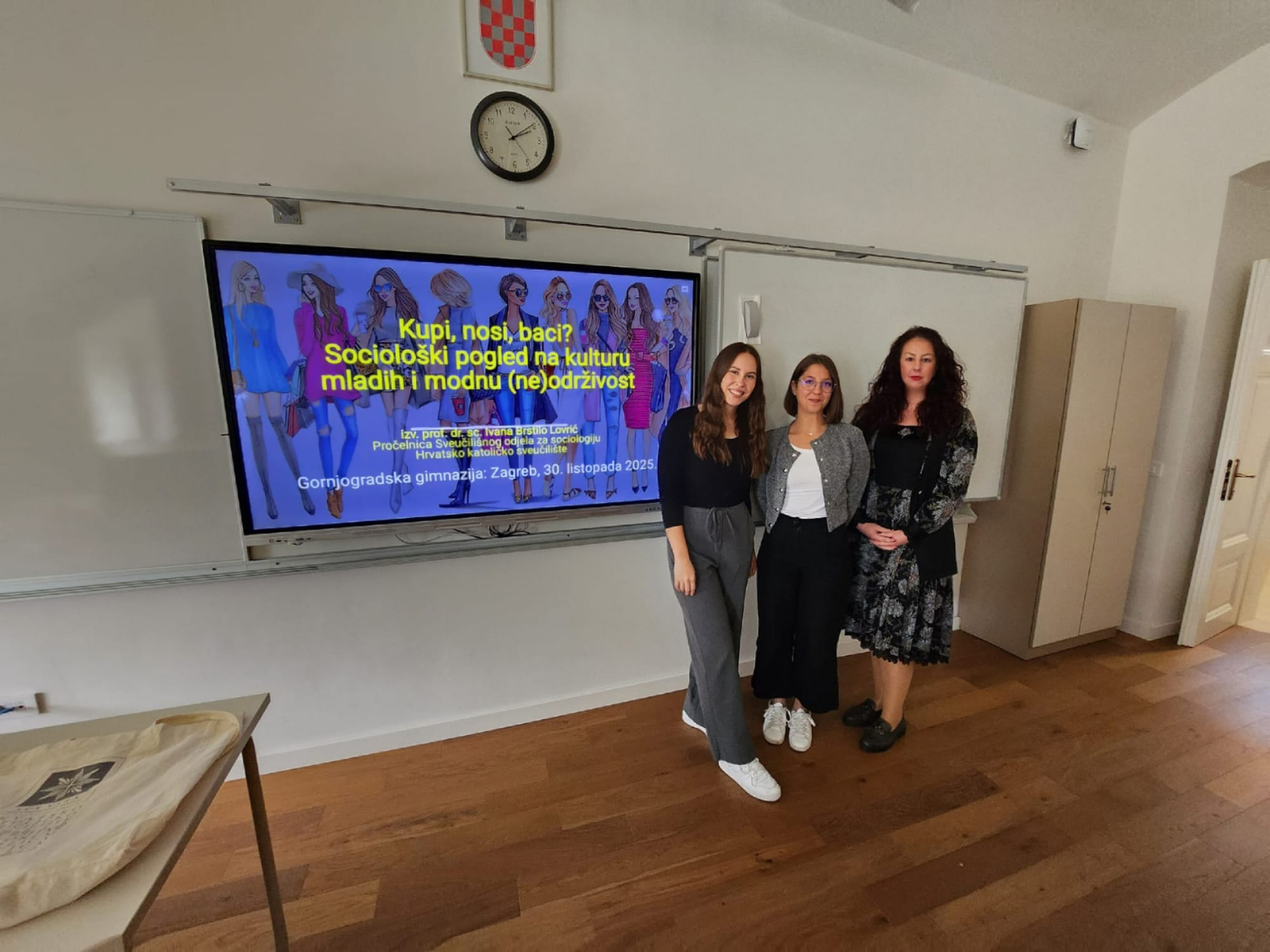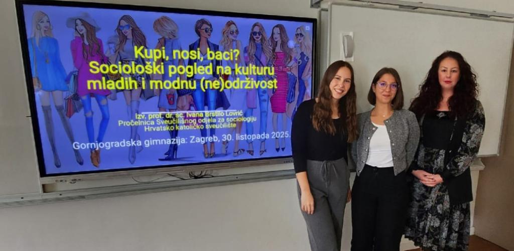 Pročelnica Sveučilišnog odjela za sociologiju Hrvatskog katoličkog sveučilišta, izv. prof. dr. sc. Ivana Brstilo Lovrić i studentica sveučilišnog diplomskog studija Sociologija (nastavnički), Darija Glavašević, posjetile su 30. listopada 2025. Gornjogradsku gimnaziju u Zagrebu.