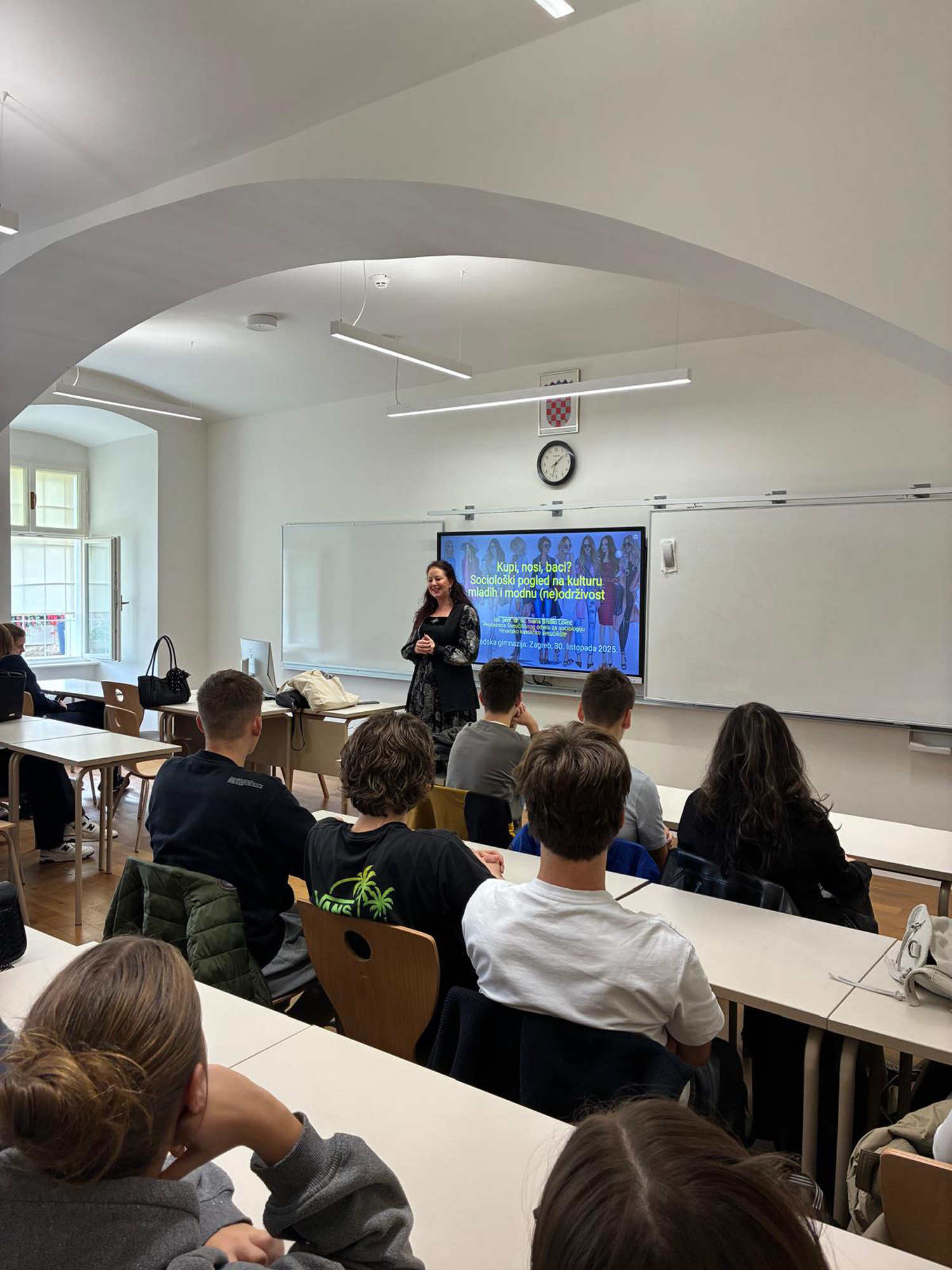 Učenici su se aktivno se uključili u raspravu o temama potrošnje, identiteta, rabljene ili second-hand odjeće, suvremenih modnih brandova i trendova. Gostovanje se održalo na sata sociologije koji vodi naša bivša studentica univ. mag. soc. Martina Čoko, profesorica sociologije, politike i gospodarstva te etike.