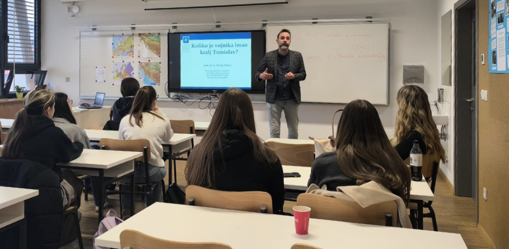 Na poziv profesorice povijesti Ive Lekić, magistre povijesti i arheologije, prof. dr. sc. Hrvoje Kekez sa Sveučilišnog odjela za povijest Hrvatskoga katoličkog sveučilišta održao je u srijedu, 11. veljače 2026., tematsko predavanje pod naslovom „Koliko je vojnika imao kralj Tomislav?“ za učenike izborne nastave povijesti drugih razreda XII. gimnazije u Zagrebu.