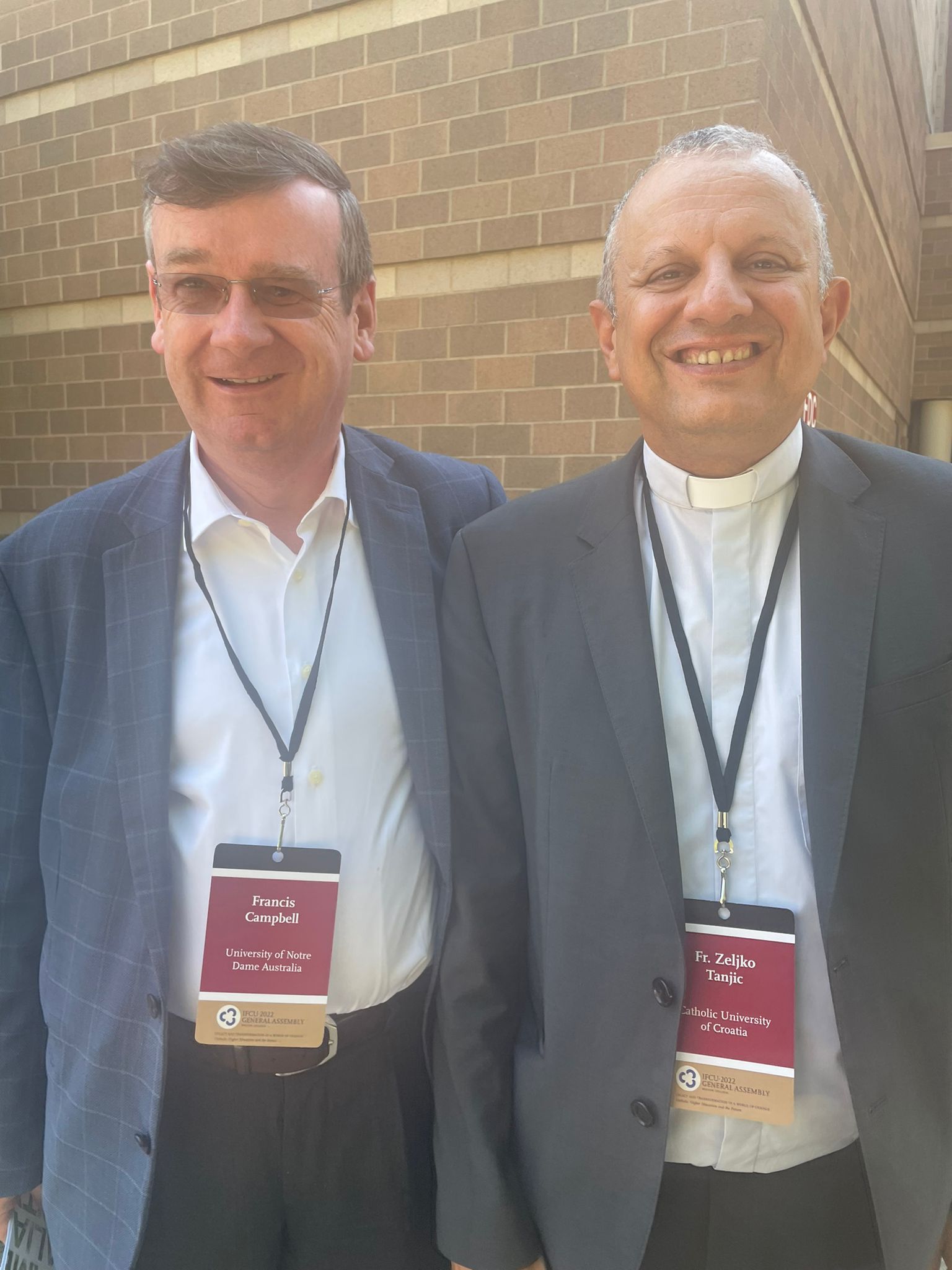 Podsjetimo na Boston Collegeu, katoličkom sveučilištu u Bostonu u Sjedinjenim Američkim Državama, od 30. srpnja do 3. kolovoza 2022. održana je 27. generalna skupština Međunarodne federacije katoličkih sveučilišta na kojoj sudjeluje više od 200 sudionika iz više od 50 zemalja iz cijelog svijeta. Tema ovogodišnje generalne skupštine bila „Nasljeđe i transformacija u svijetu promjena: visoko obrazovanje na katoličkim sveučilištima i budućnost“. U ime Hrvatskog katoličkog sveučilišta na generalnoj skupštini sudjelovali su rektor prof. dr. sc. Željko Tanjić i prorektor za međunarodnu suradnju prof. dr. sc. Hrvoje Štefančić.