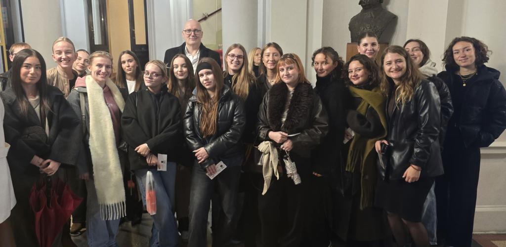 U ponedjeljak, 17. studenoga 2025., studenti prijediplomskoga studija komunikologije na kolegiju Criticism and Modern Journalism Genres pod vodstvom doc. dr. sc. Zlatka Vidačkovića posjetili su generalnu probu baleta Orašar u Hrvatskome narodnom kazalištu u Zagrebu. U sklopu terenske nastave studenti su upoznali proces oblikovanja baletne predstave, promatrali završne umjetničke pripreme te analizirali koreografski rukopis Rudolfa Nurejeva u izvedbenom kontekstu. Stečeni dojmovi i opažanja poslužit će im kao temelj za pisanje stručnih kritika u okviru kolegija.