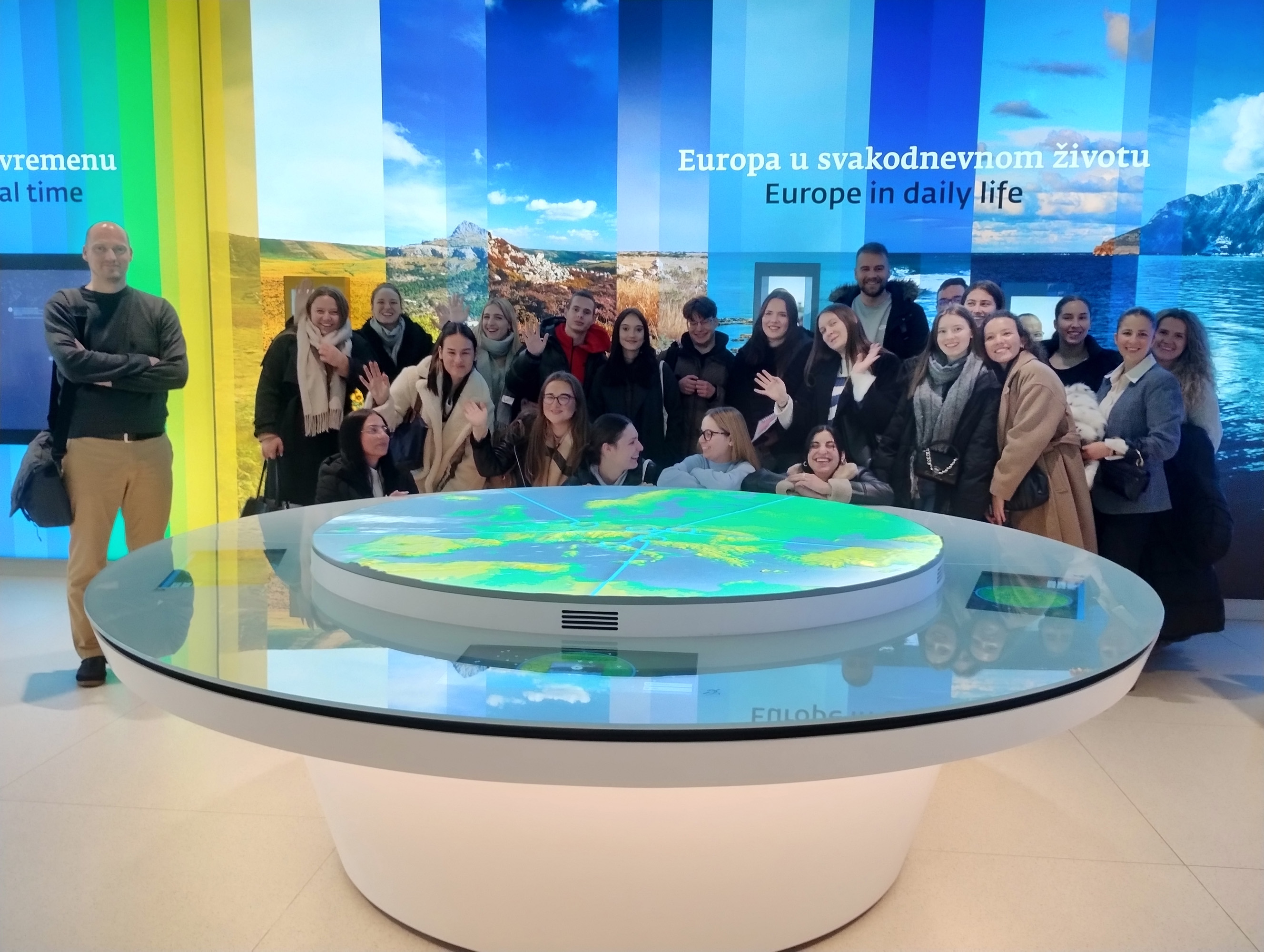 U okviru kolegija Sociologija europskih integracija i pod vodstvom doc. dr. sc. Jeronima Dorotića, studenti prijediplomskog studija sociologije posjetili su u petak 21. studenog 2025. multimedijski centar „Doživi Europu“, gdje su sudjelovali u interaktivnoj igri uloga zastupnika u Europskom parlamentu.