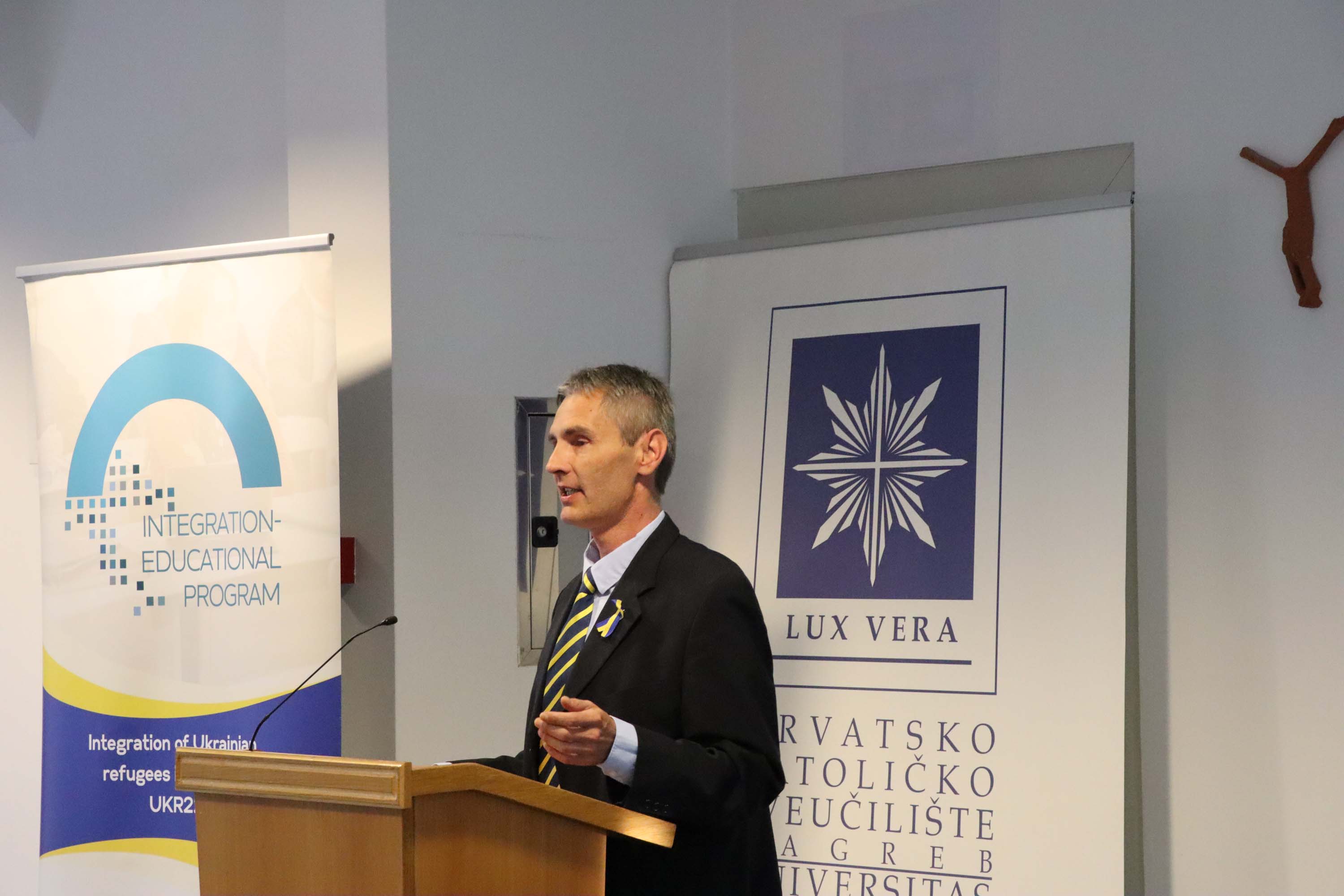 Okupljenima su se obratili rektor Hrvatskog katoličkog sveučilišta prof. dr. sc. Željko Tanjić koji je svim polaznicima čestitao na uspješnom završetku programa te izrazio nadu kako neće nikada prestati učiti te da će, ako se ne vrate u Ukrajinu, u Hrvatskoj pronaći svoj novi dom.