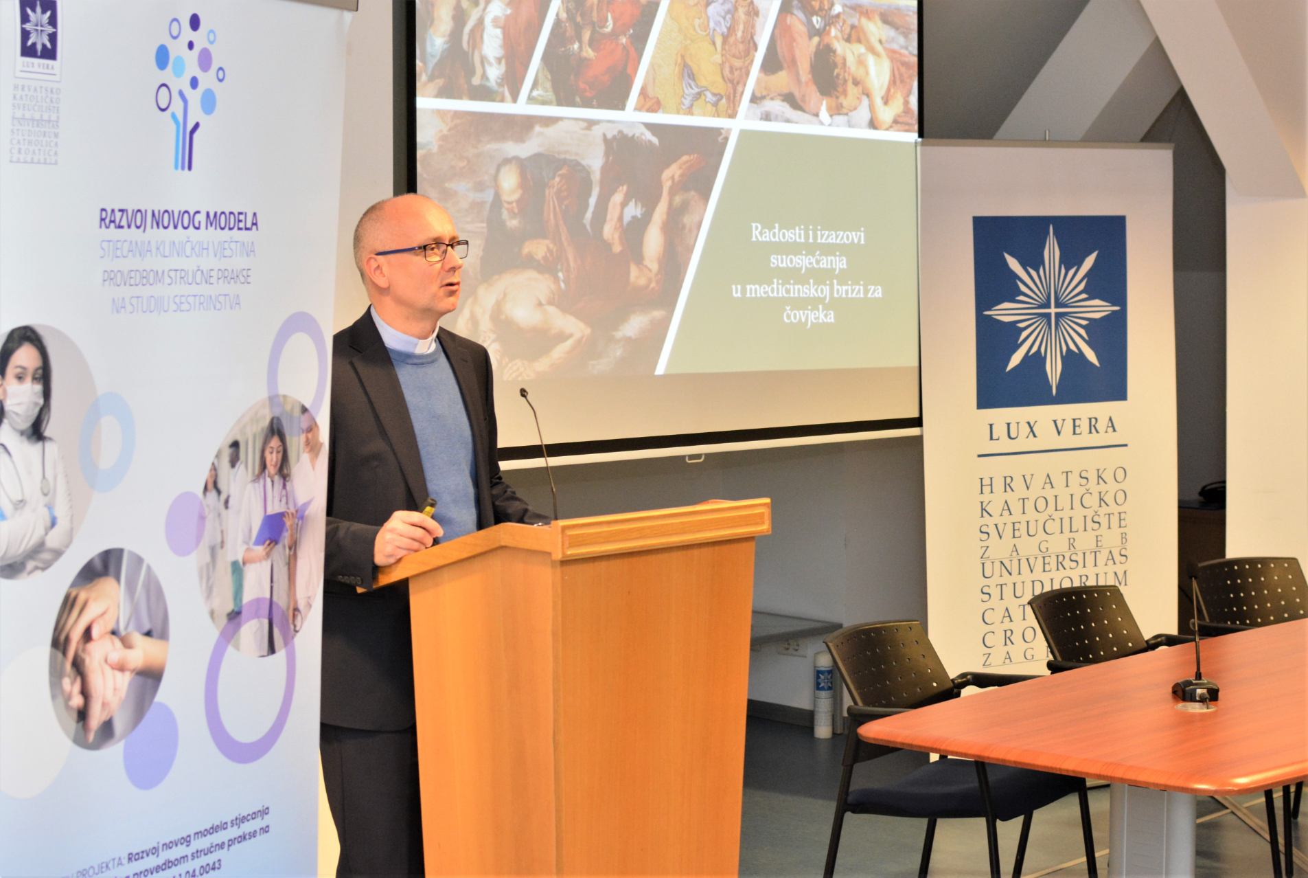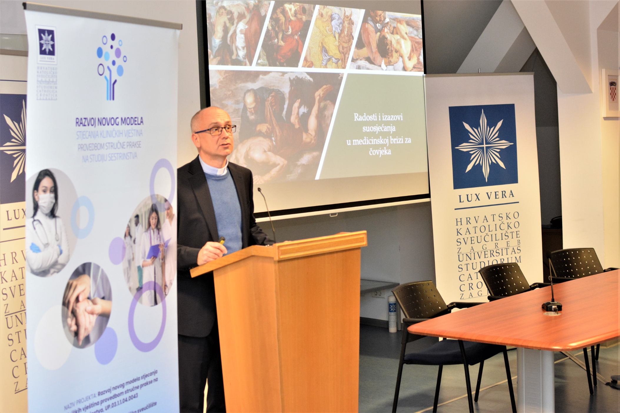 Nakon mise, nazočni su se okupili u dvorani „Blaženi Alojzije kard. Stepinac“ gdje je prigodno predavanje na temu „Radosti i izazovi suosjećanja u medicinskoj skrbi za čovjeka“ održao doc. dr. sc. Josip Bošnjaković s Odjela za psihologiju Hrvatskog katoličkog sveučilišta i Katoličkog bogoslovnog fakulteta u Đakovu. U svom izlaganju doc. Bošnjaković naglasio je važnost iskazivanja suosjećanja zdravstvenih djelatnika u svakodnevnom radu s bolesnicima čime se iskazuje poštovanje prema bolesnicima te pozitivno utječe na njihov osjećaj prihvaćenosti i razvijanje povjerenja u zdravstvene djelatnike.
