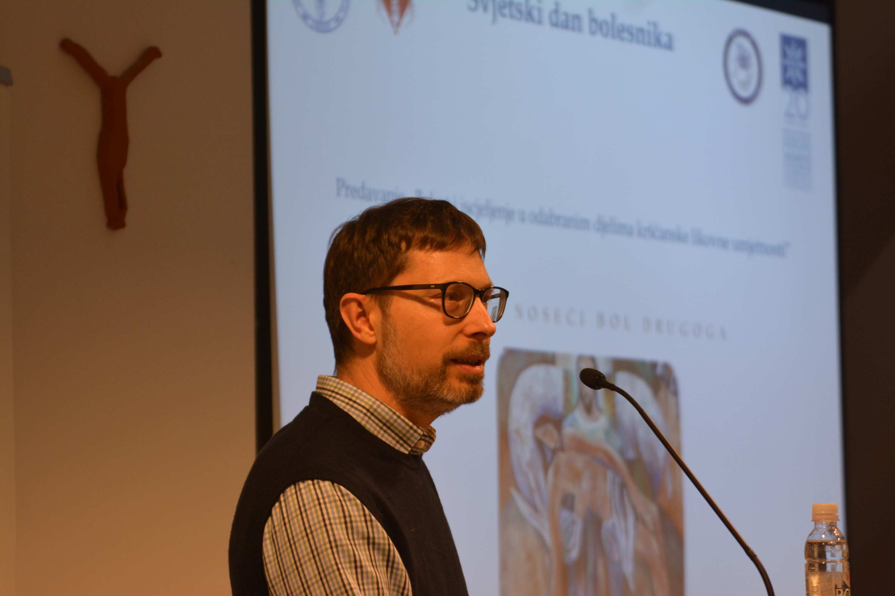 Uslijedilo je multimedijsko predavanje doc. dr. sc. Darija Sambunjaka, dr. med., člana HKLD-a i bivšeg nastavnika na Sveučilišnom odjelu za sestrinstvo Hrvatskog katoličkog sveučilišta, pod naslovom „Bolest i iscjeljenje u odabranim djelima kršćanske likovne umjetnosti“.